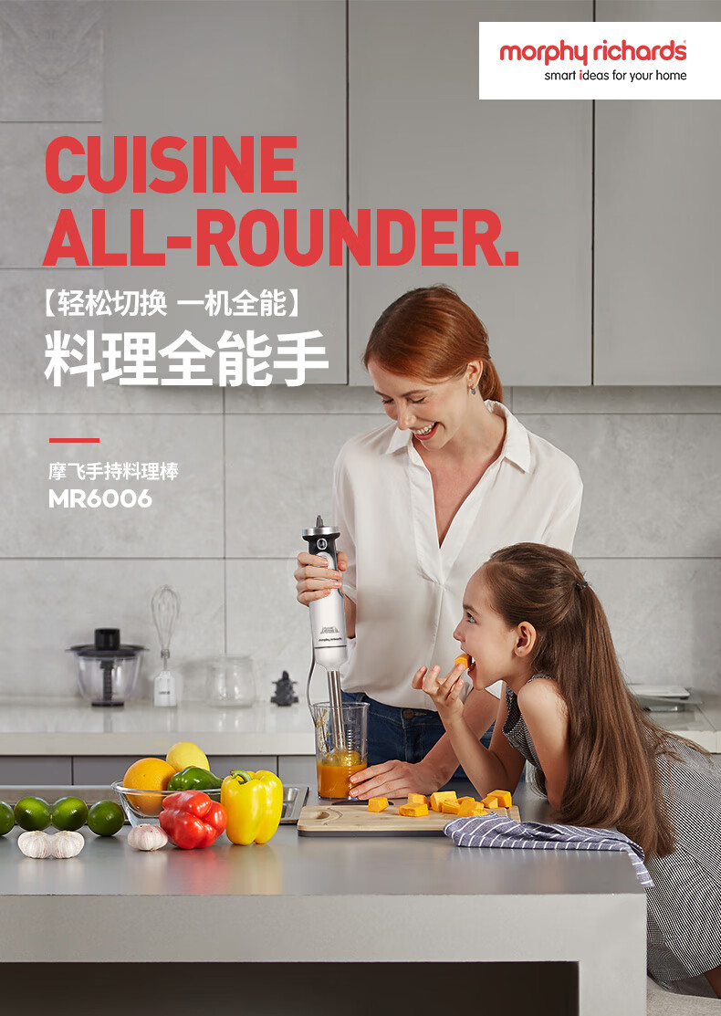 摩飞电器(Morphyrichards)绞肉机 家用多功能料理棒 婴儿辅食机 分体可拆 多配件搭配 佐料机 MR6006 白色