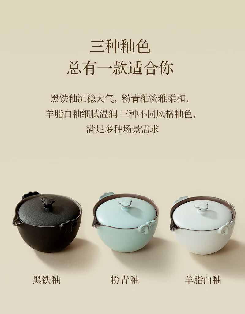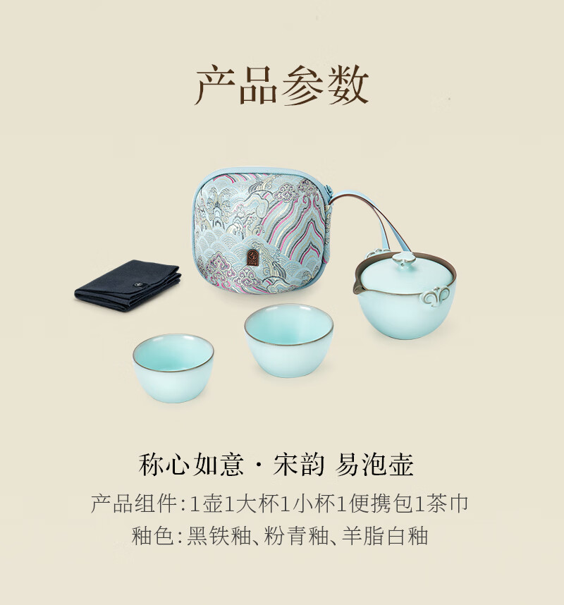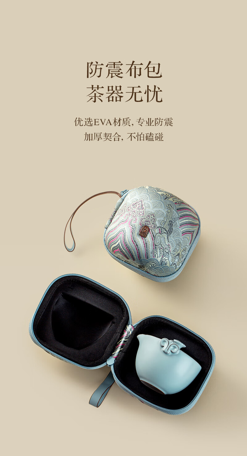 万仟堂(Edenus) 旅行茶具套装便携包 快客杯 陶瓷功夫茶具 带便携包 称心如意 A 羊脂白(升级版)