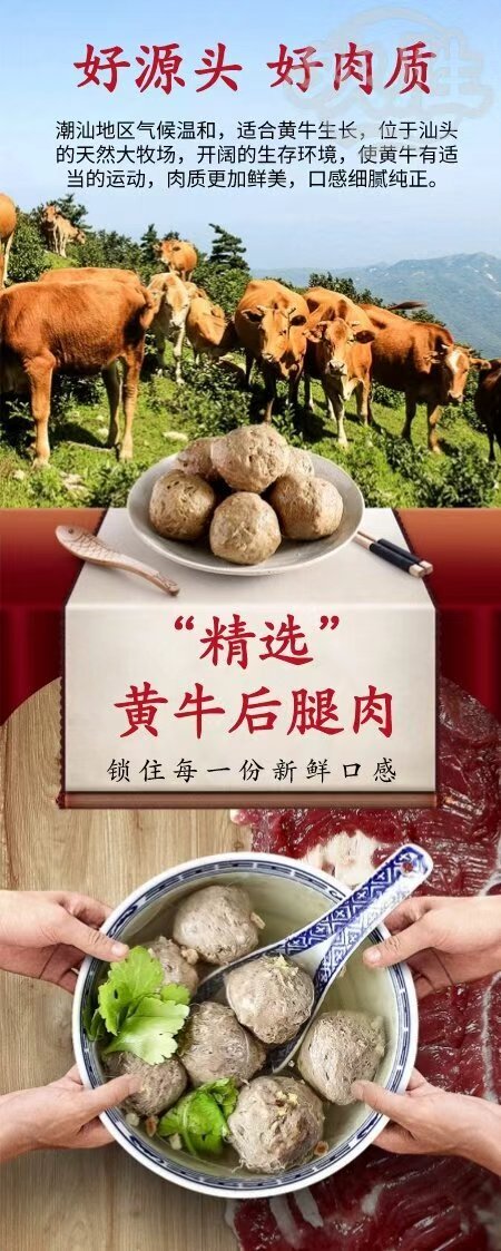欢胜【一口很汕頭】90%牛肉丸/牛筋丸新鲜制作正宗潮汕风味