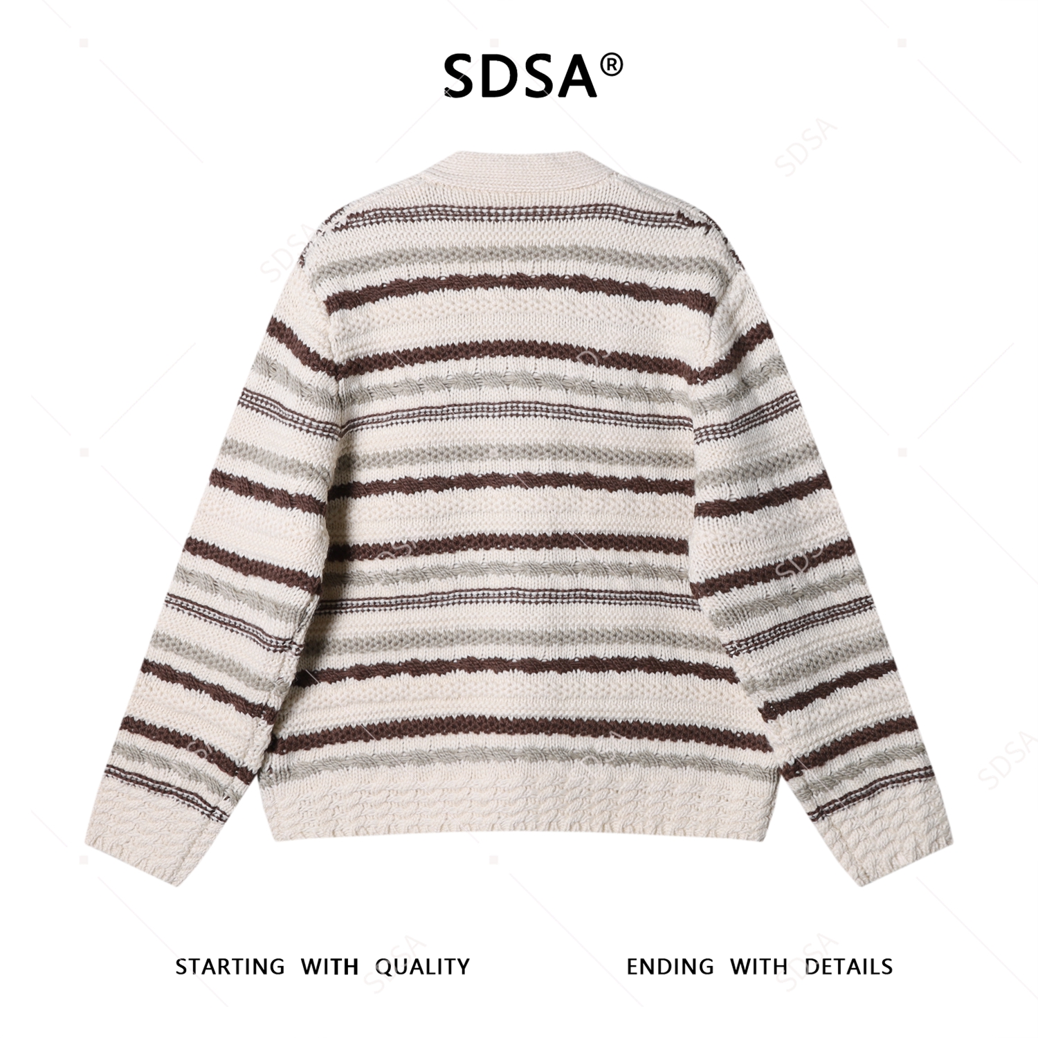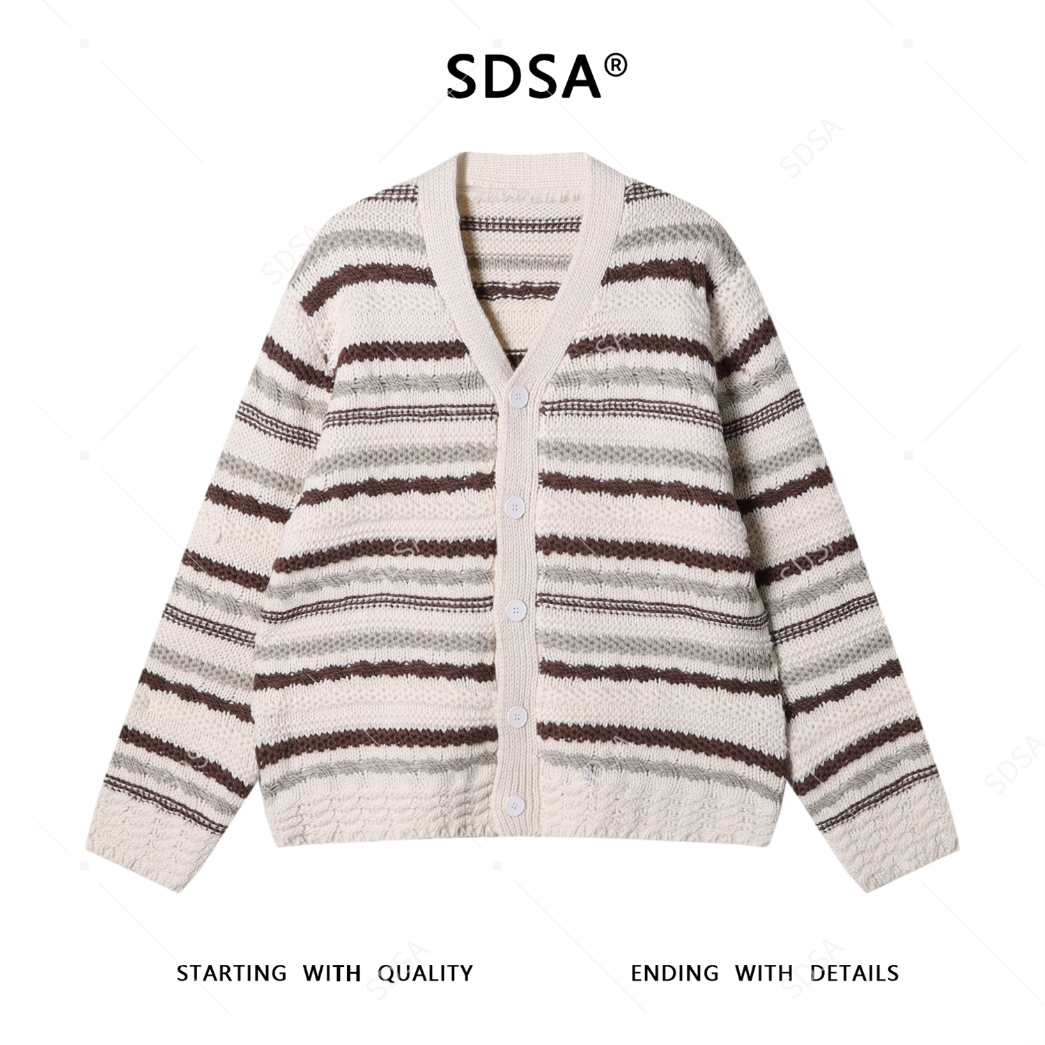 72598SDSA男士秋冬新款痞帅男装潮牌撞色条纹针织衫纽扣开衫V领毛衣潮