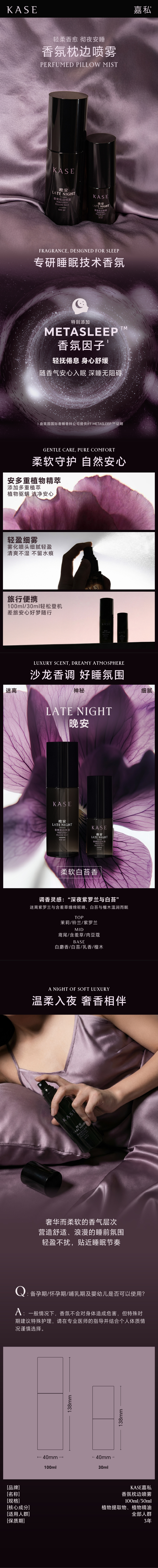 KASE嘉私晚安香氛枕头睡眠喷雾放松心情驱螨入睡仪式感随身便携装