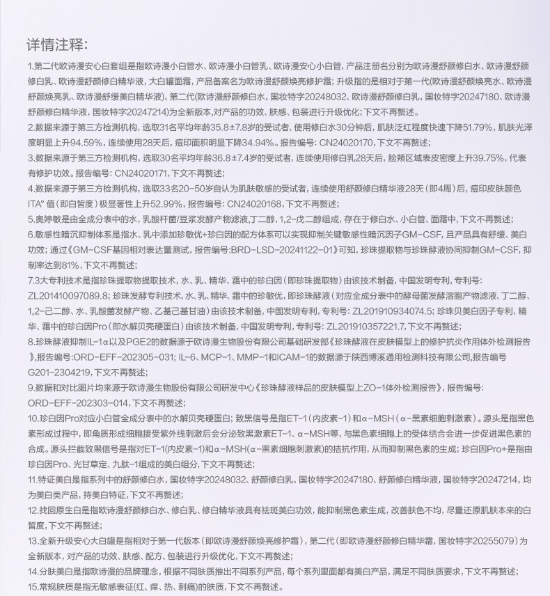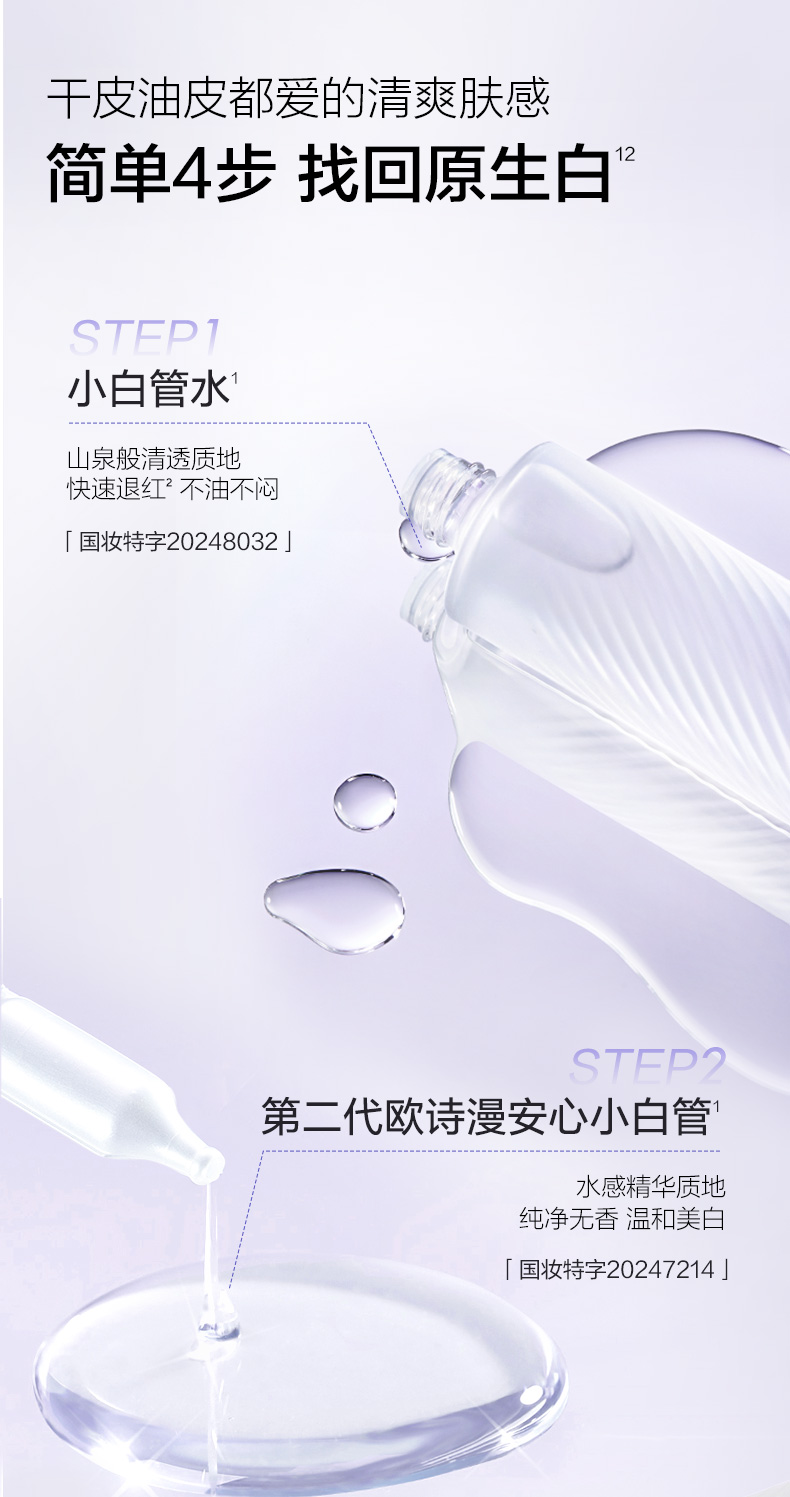 【敏肌专研舒缓美白水乳到手18件】欧诗漫舒颜修白水120ml+舒颜修白乳100ml+20ml舒颜修白水*3+20ml舒颜修白乳*3+清润舒缓面膜5片*1盒+2.0安心小白管5支
