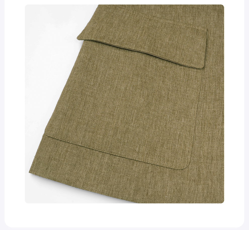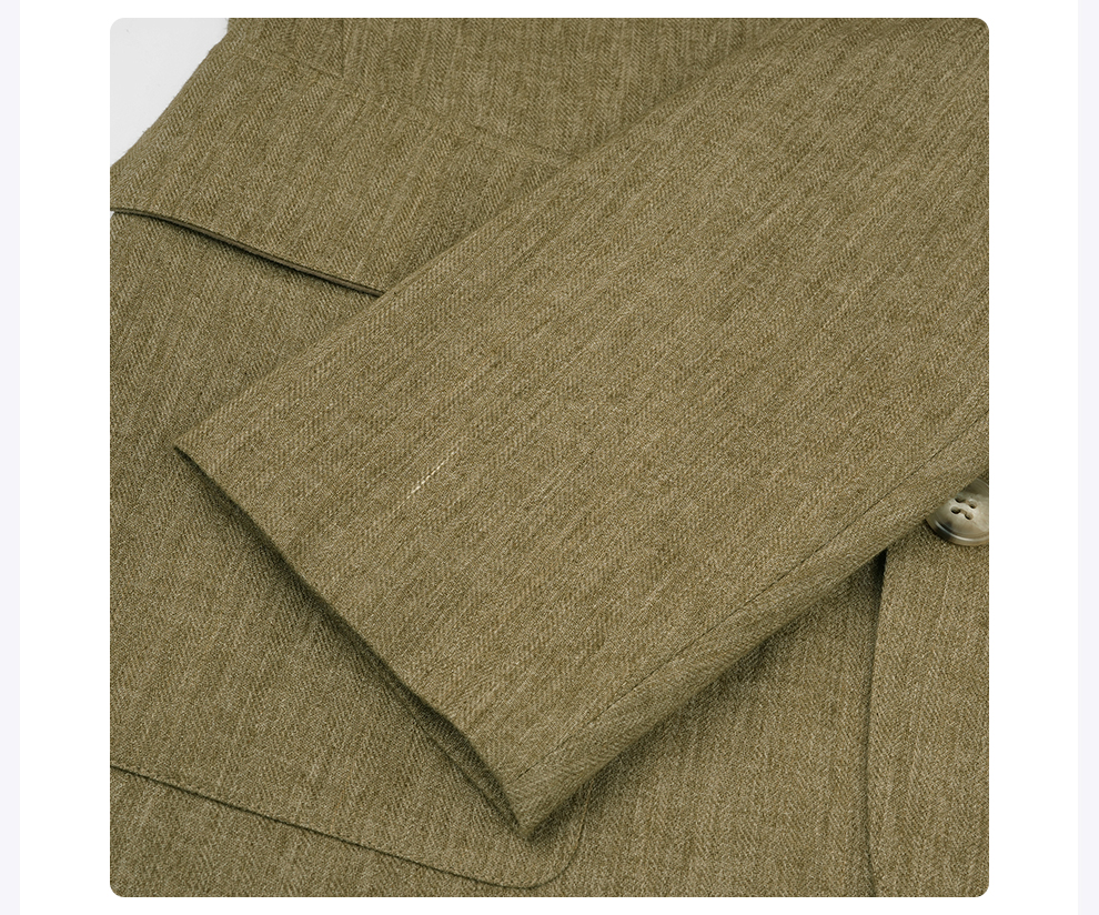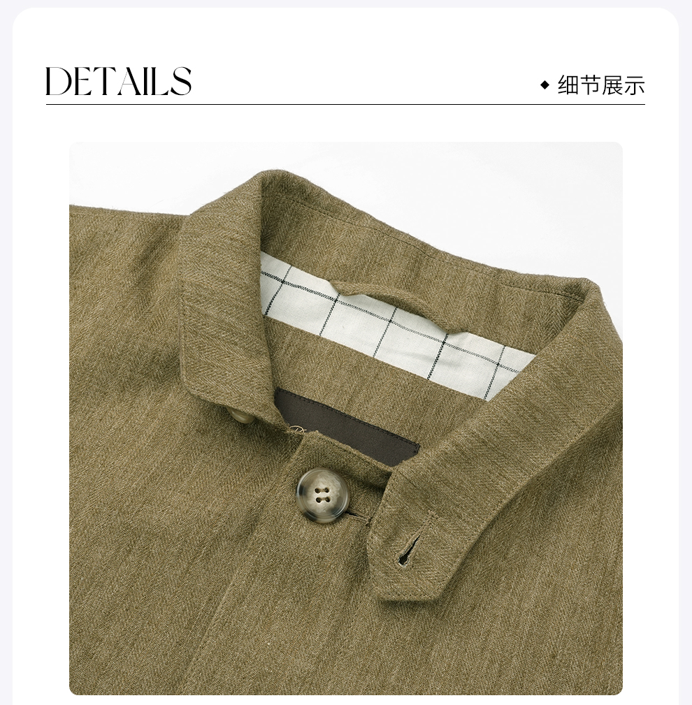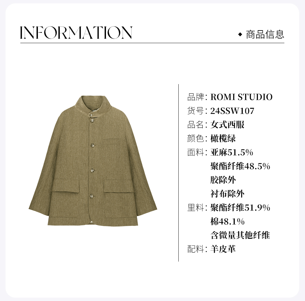 ROMI STUDIO“禅意东方”50%麻混纺人字纹肌理拼皮外套24SSW107