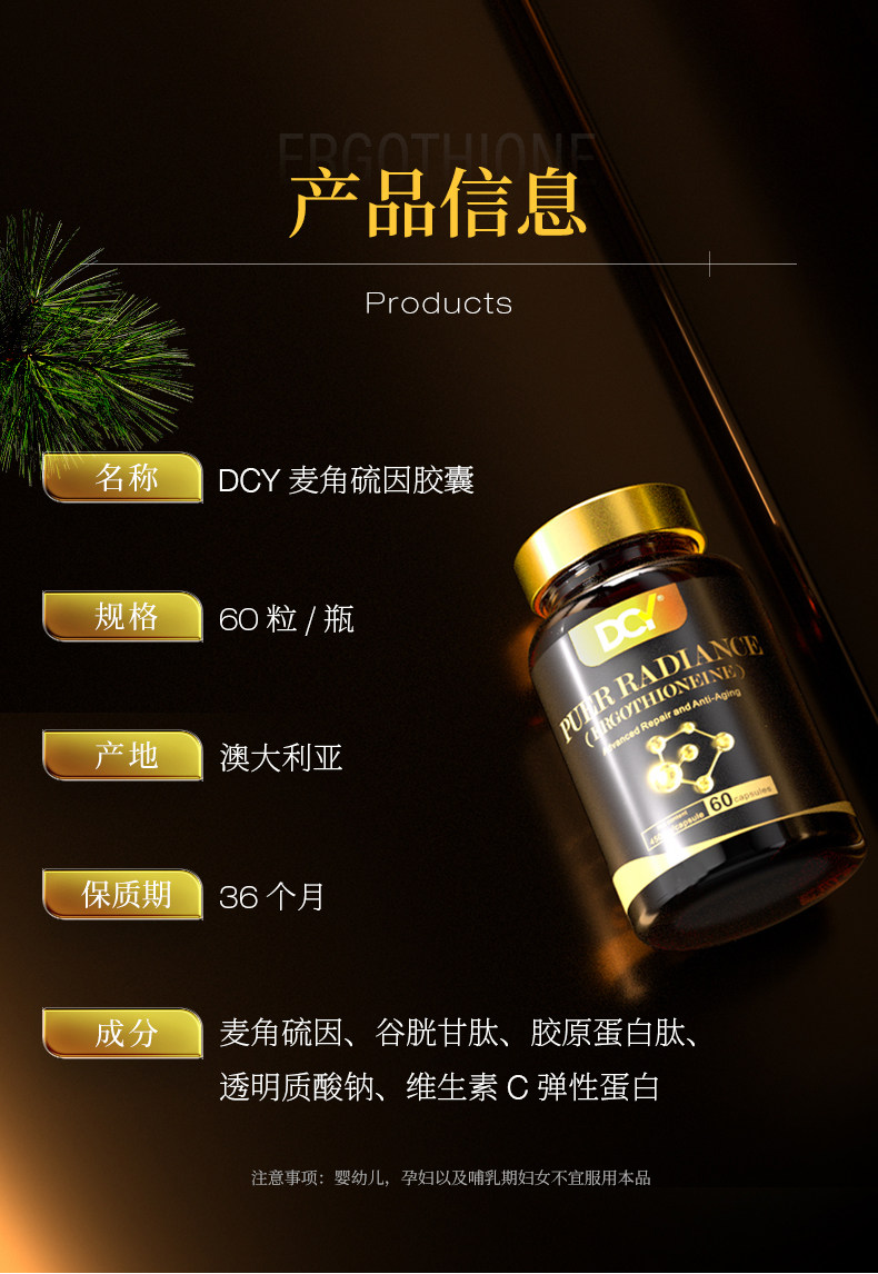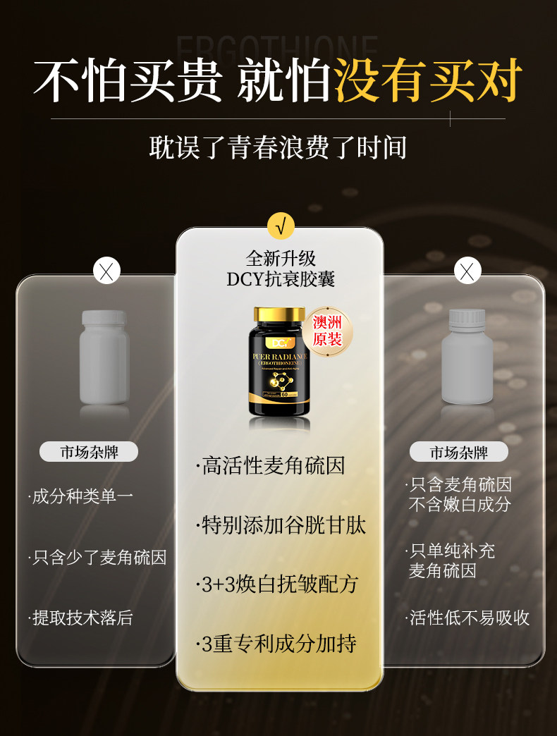 澳洲原装进口DCY高纯麦角硫因内调美容线粒体氧化胶原蛋白egt胶囊