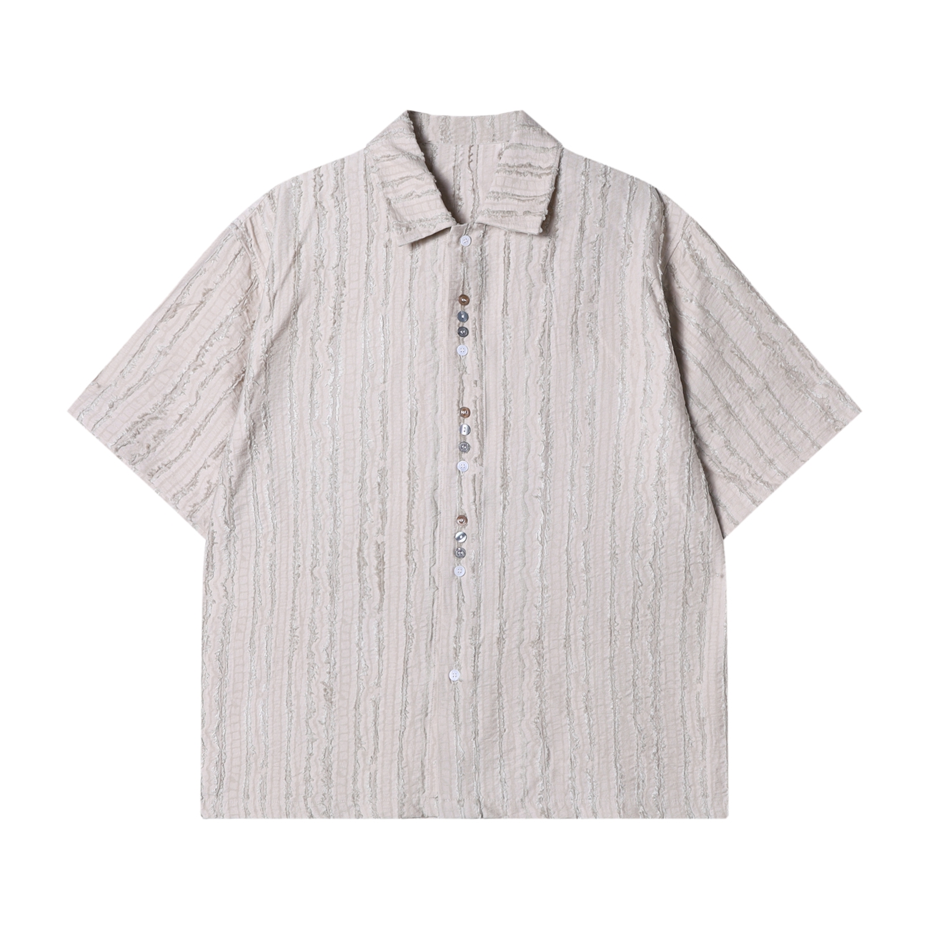 25AS392夏季高级感新款韩版纯色竖纹肌理感短袖衬衫休闲复古时尚上衣