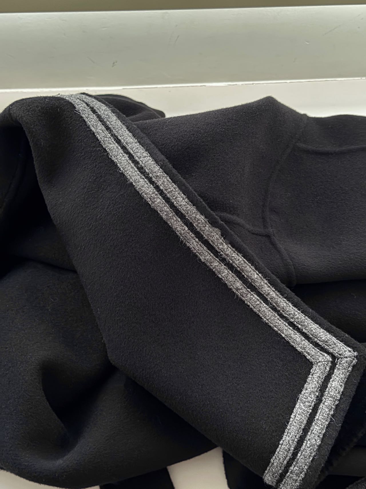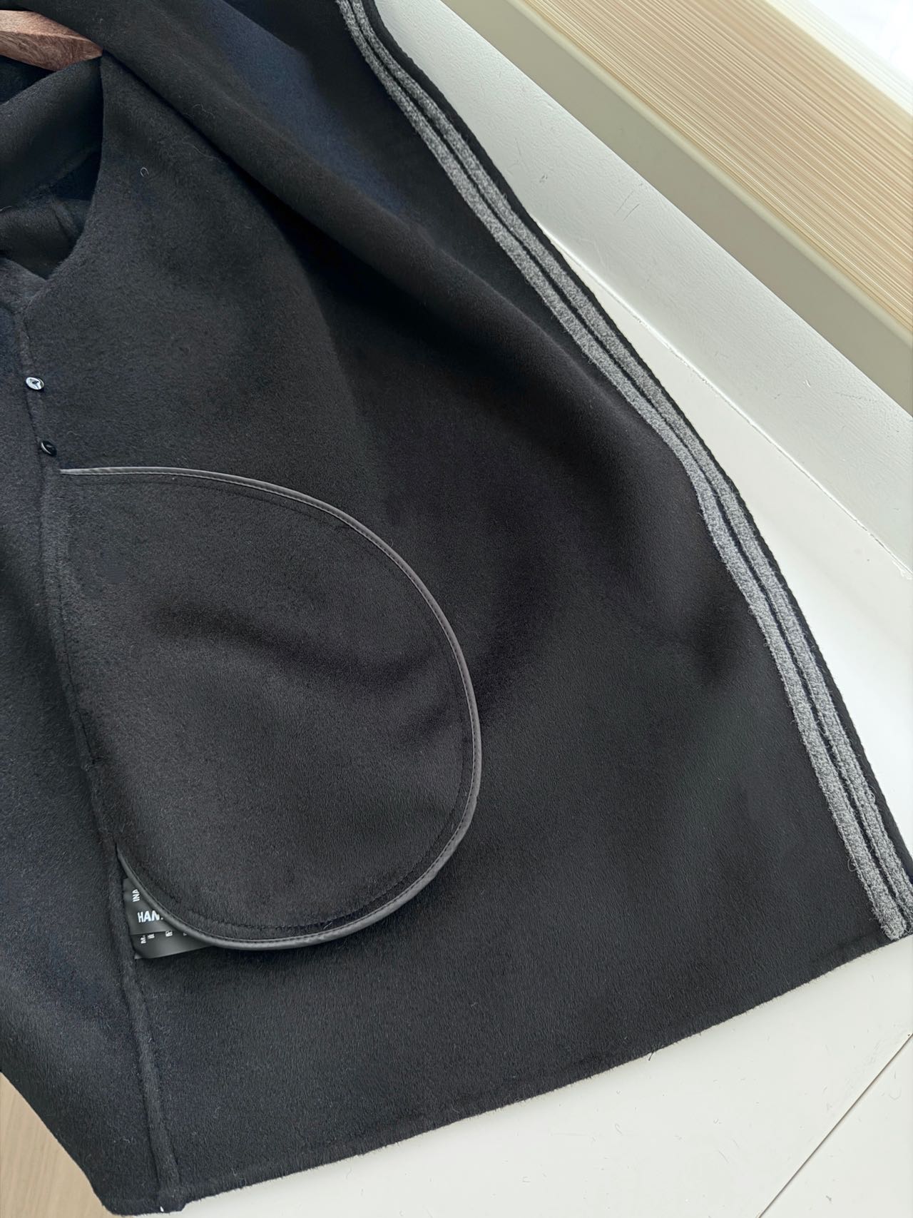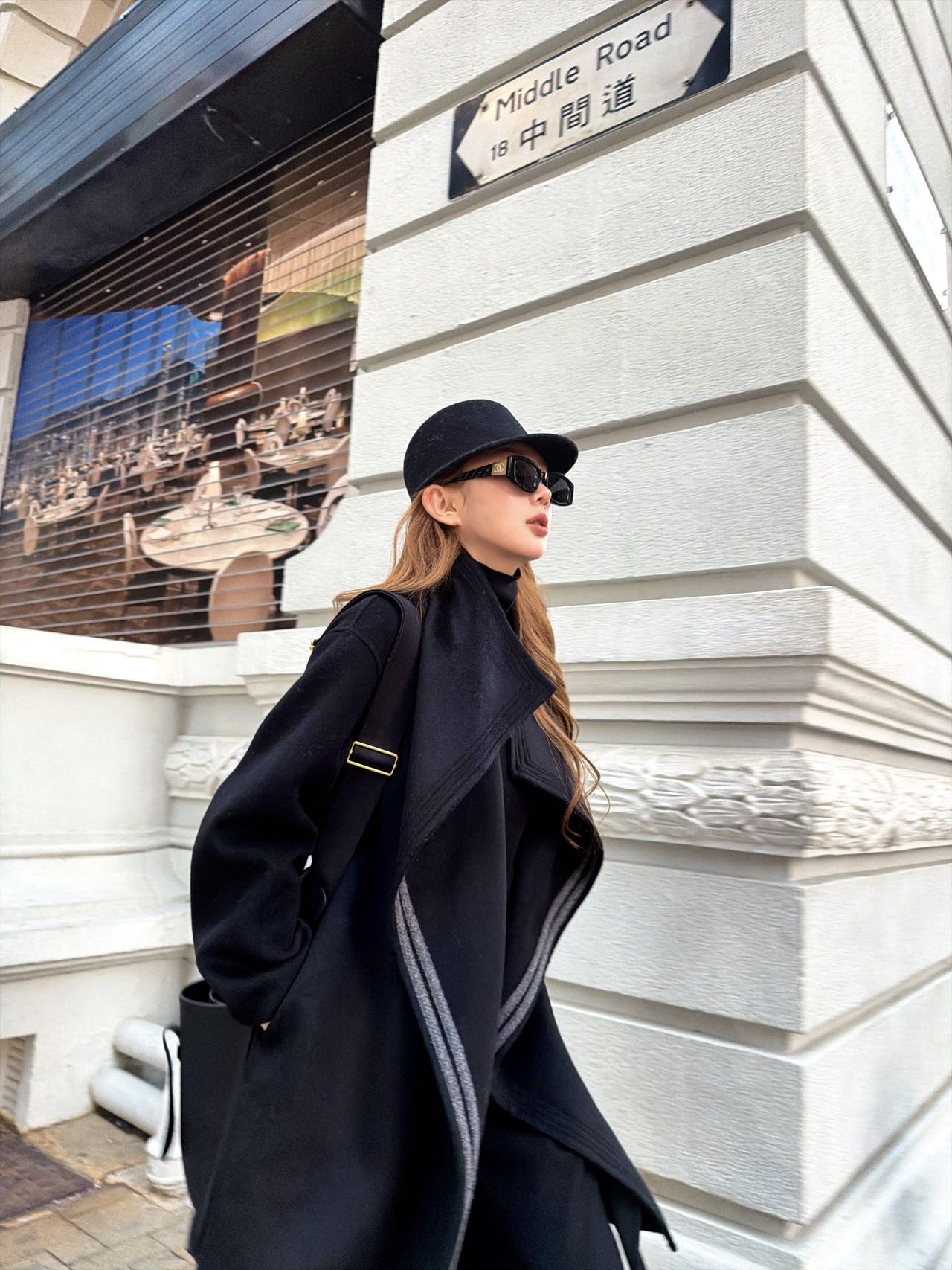 •面料:采用20%双面羊绒80%羊毛混纺。手感软糯、保暖性强,垂坠感好。
