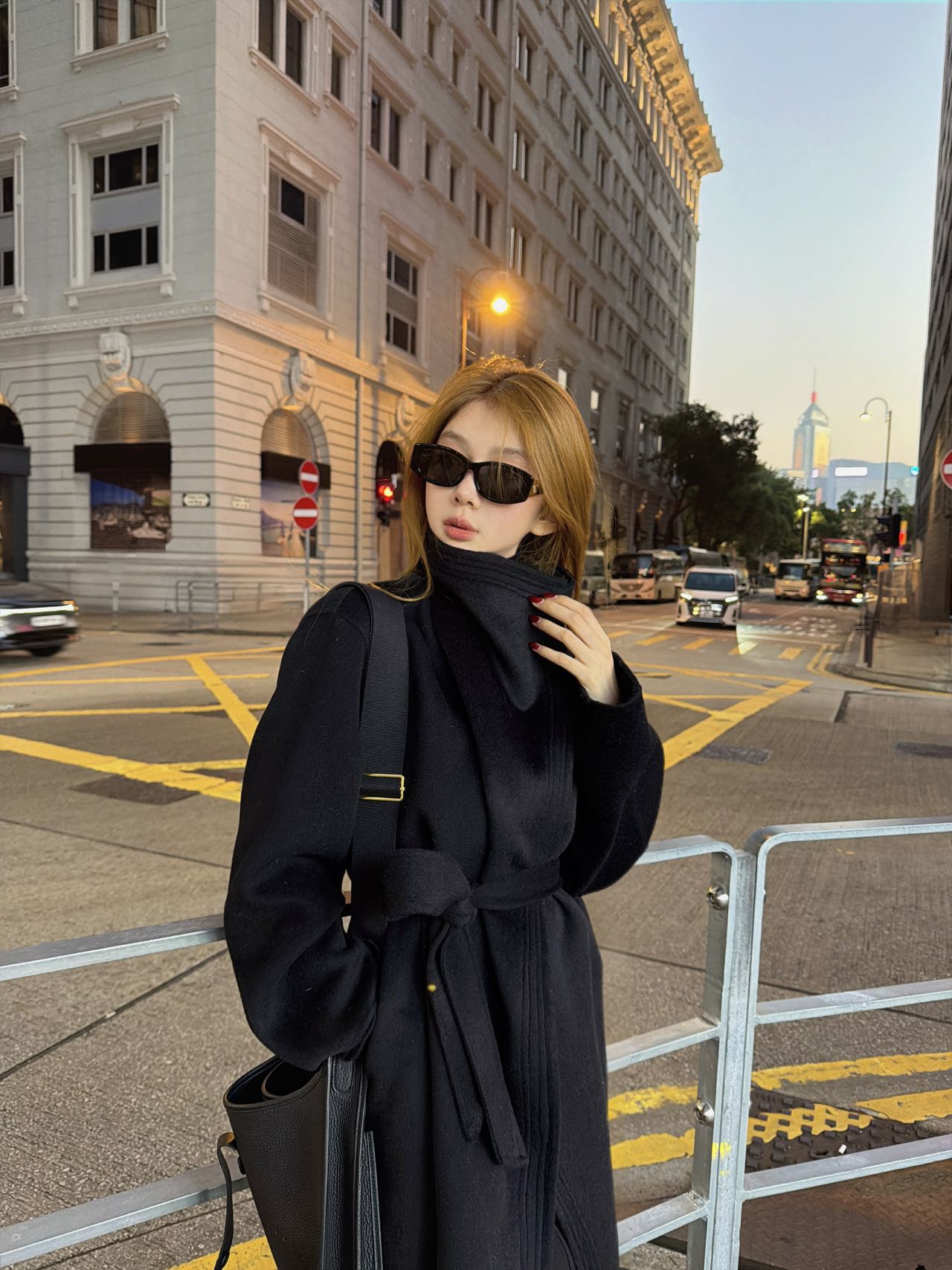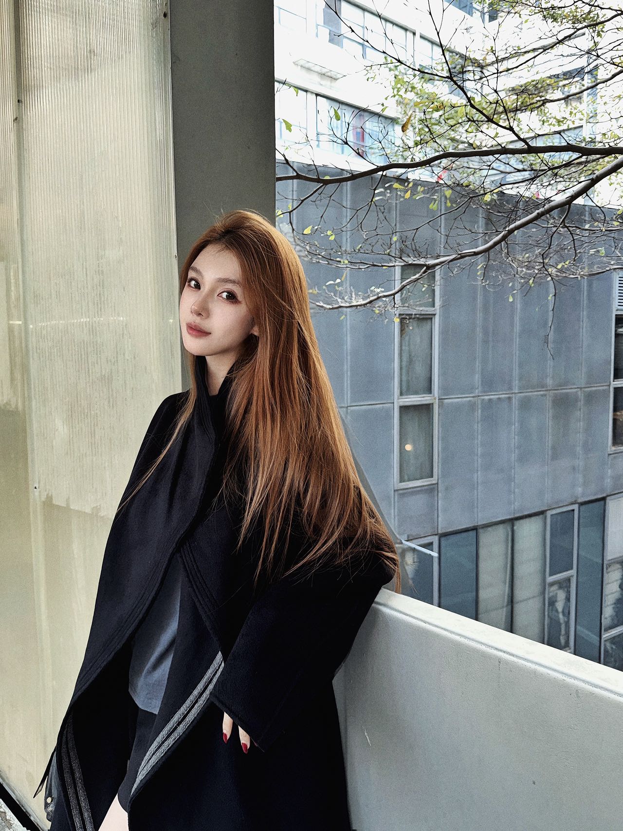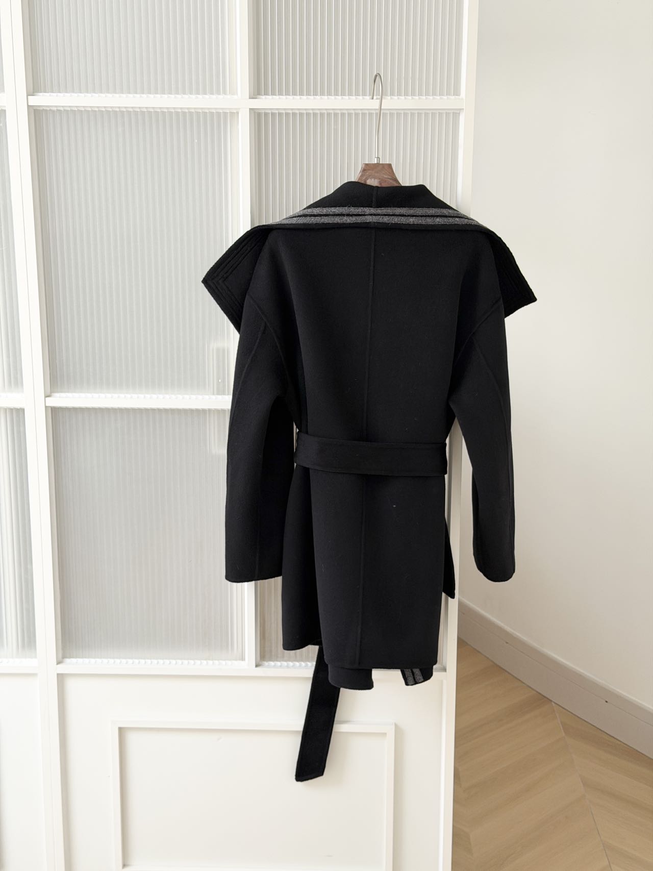 •面料:采用20%双面羊绒80%羊毛混纺。手感软糯、保暖性强,垂坠感好。