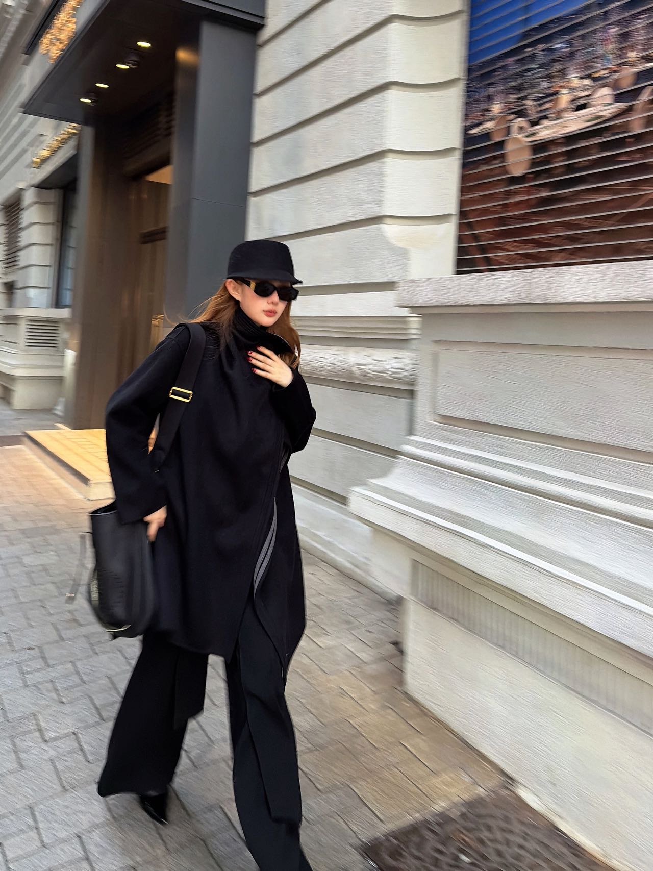 • 日常通勤:内搭高领针织衫+直筒西裤+乐福鞋,简约干练又保暖。