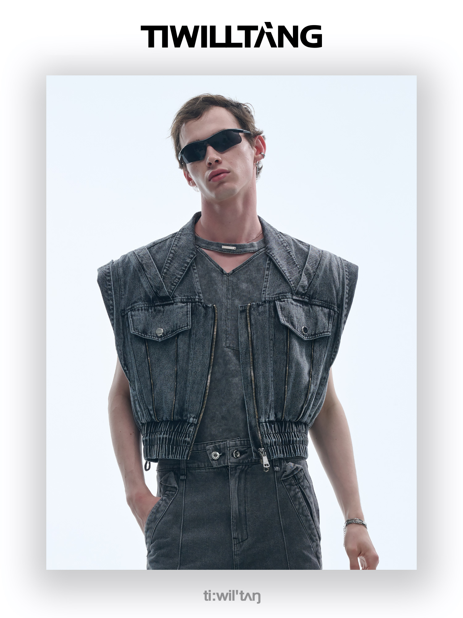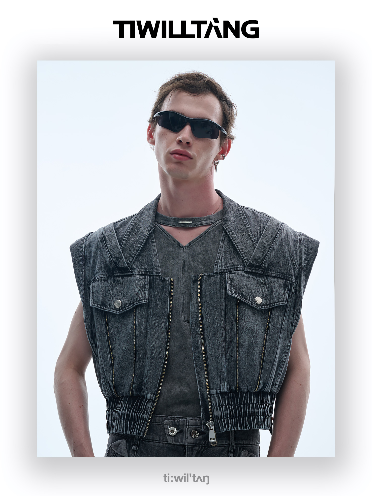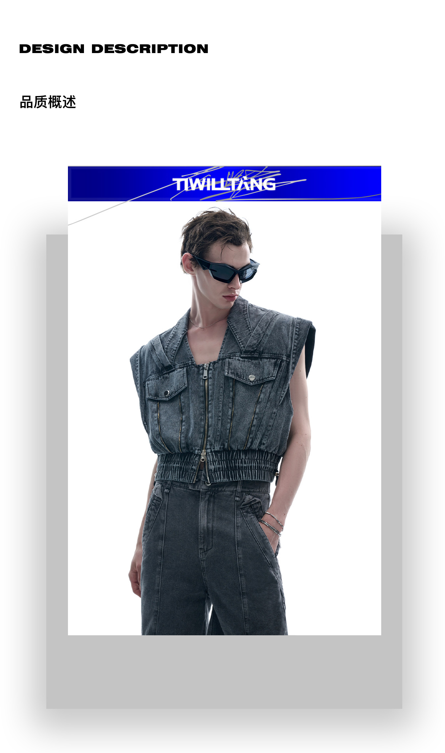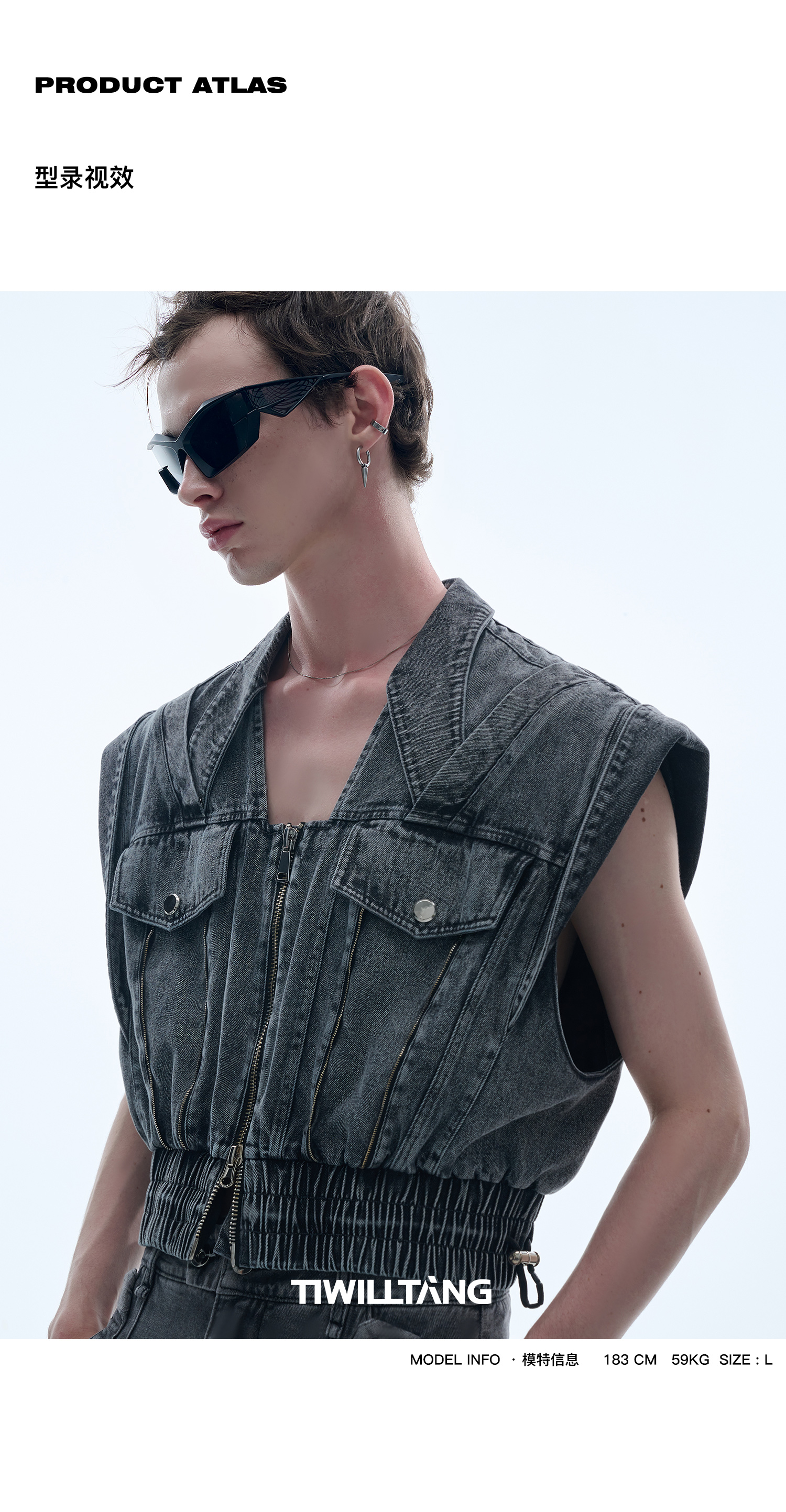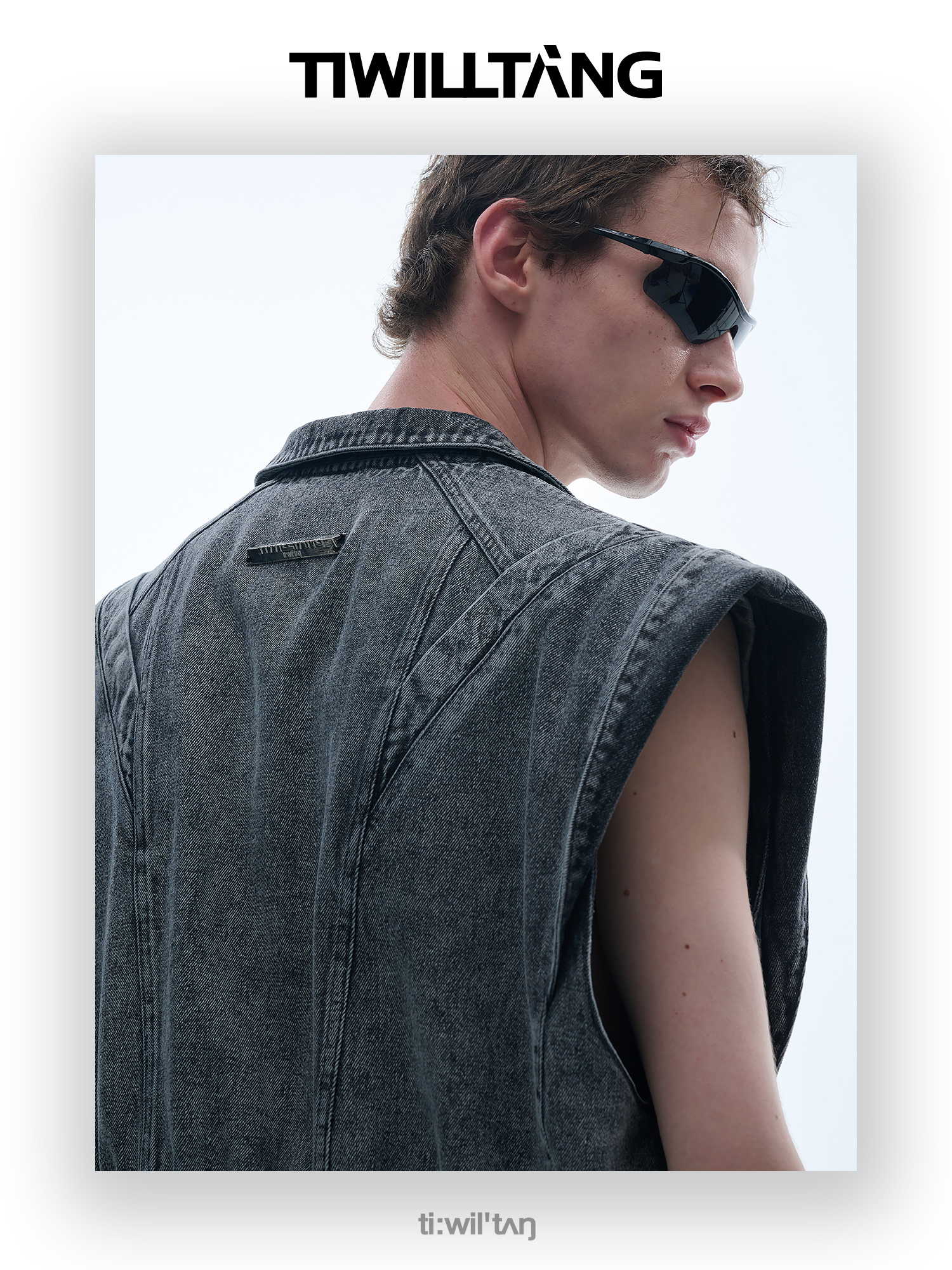 TIWILLTANG 启世录“锑栎”飞翼无袖设计感可调节牛仔坎肩上衣男