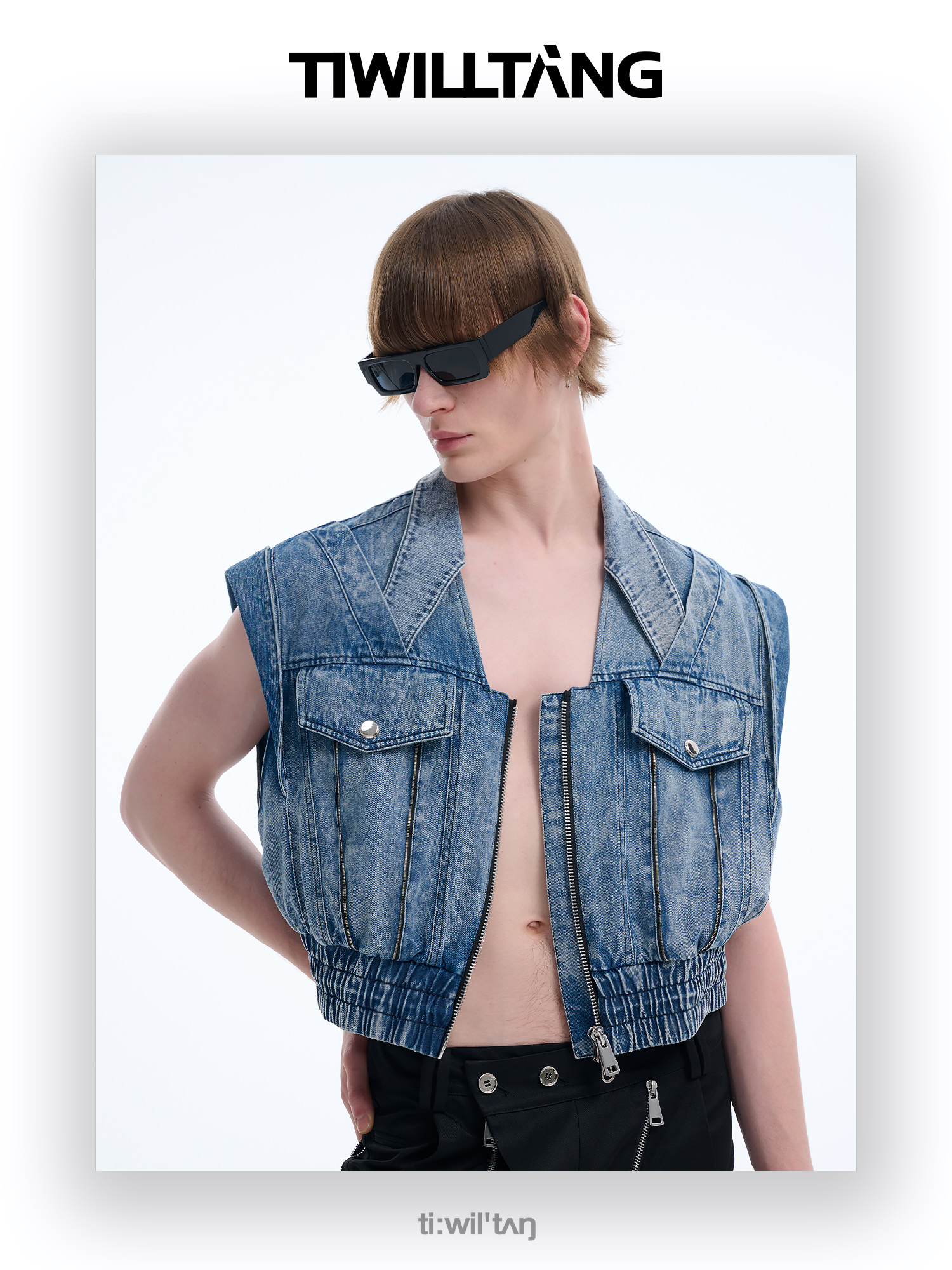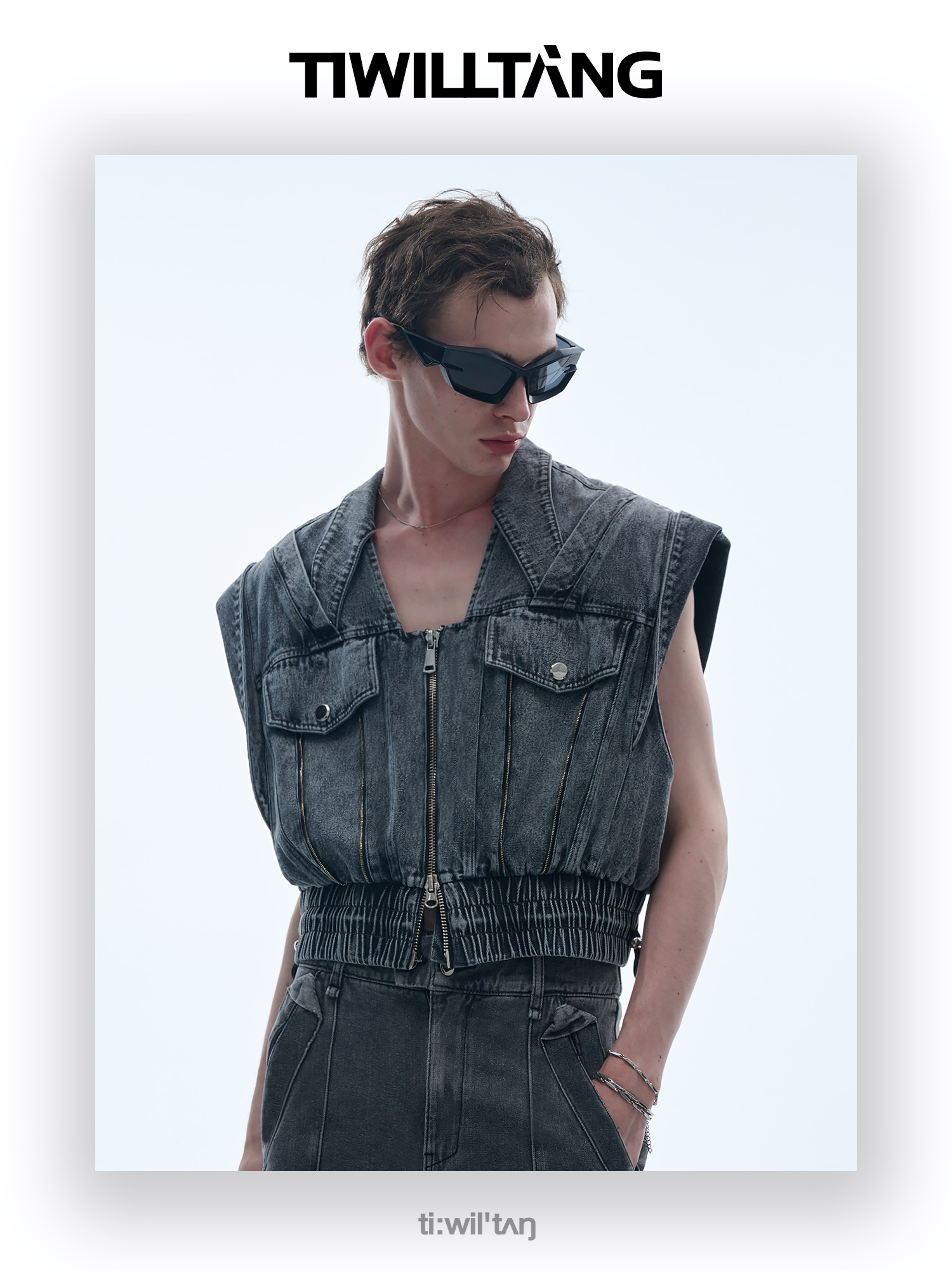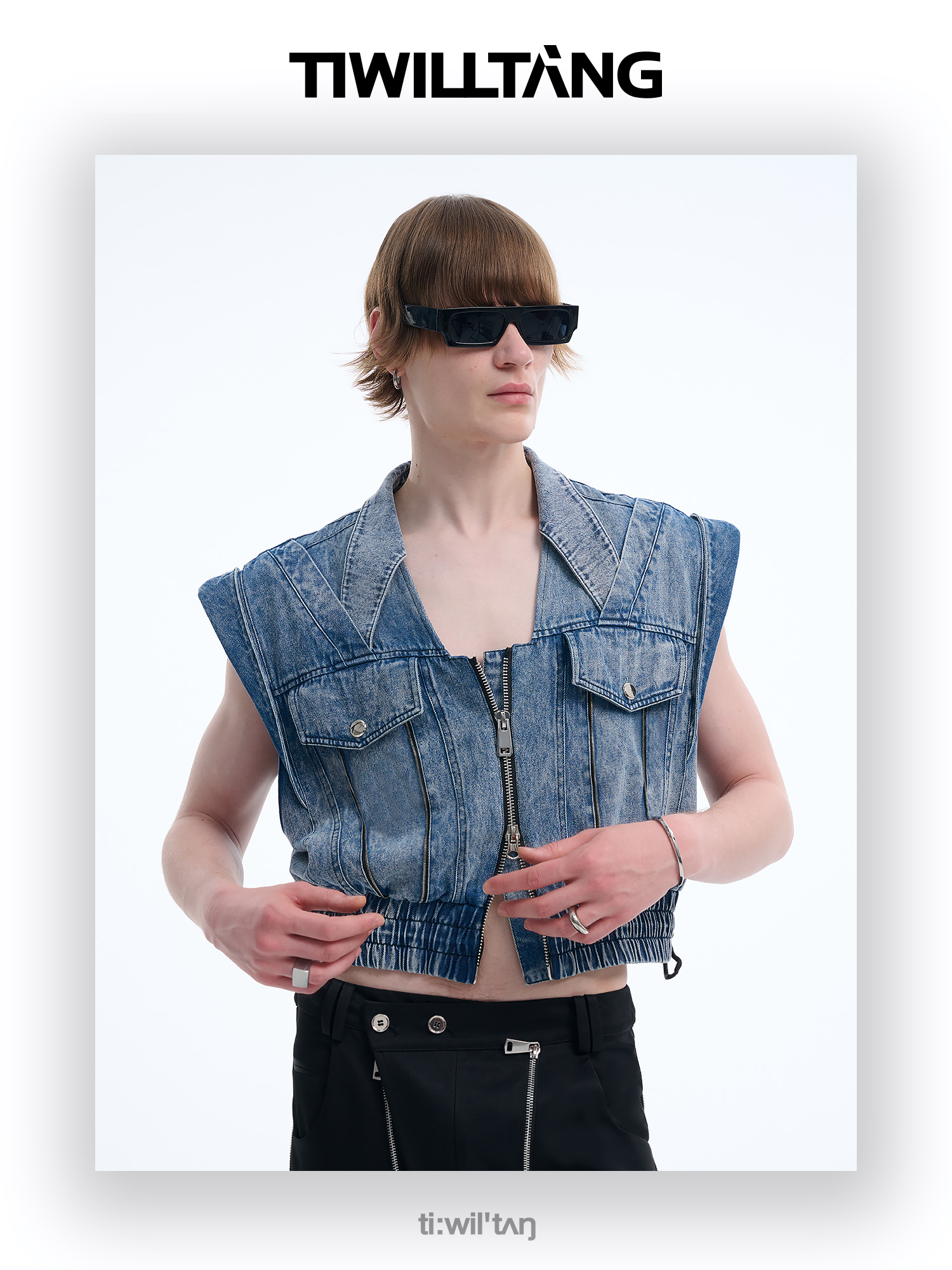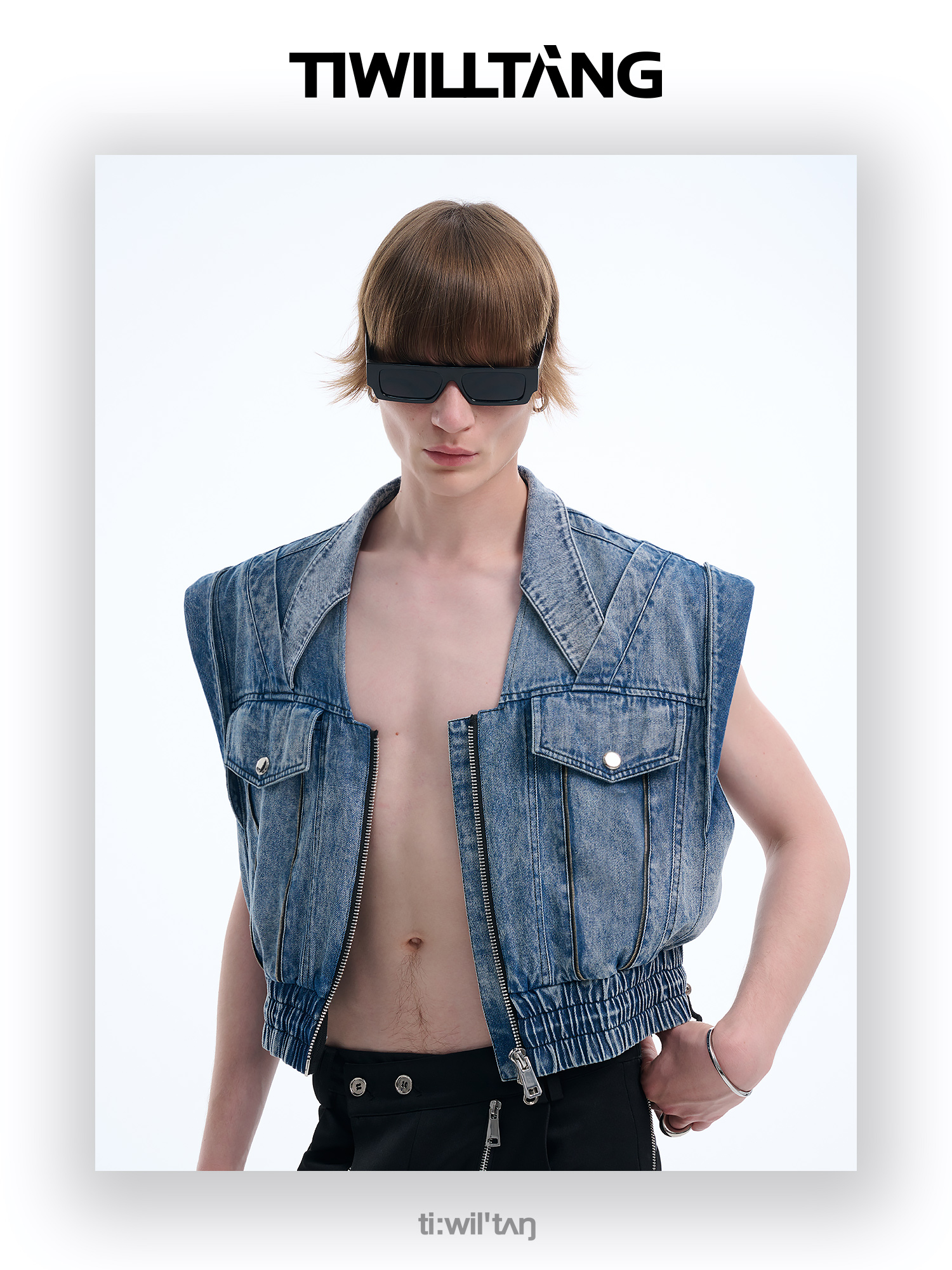 TIWILLTANG 启世录“锑栎”飞翼无袖设计感可调节牛仔坎肩上衣男