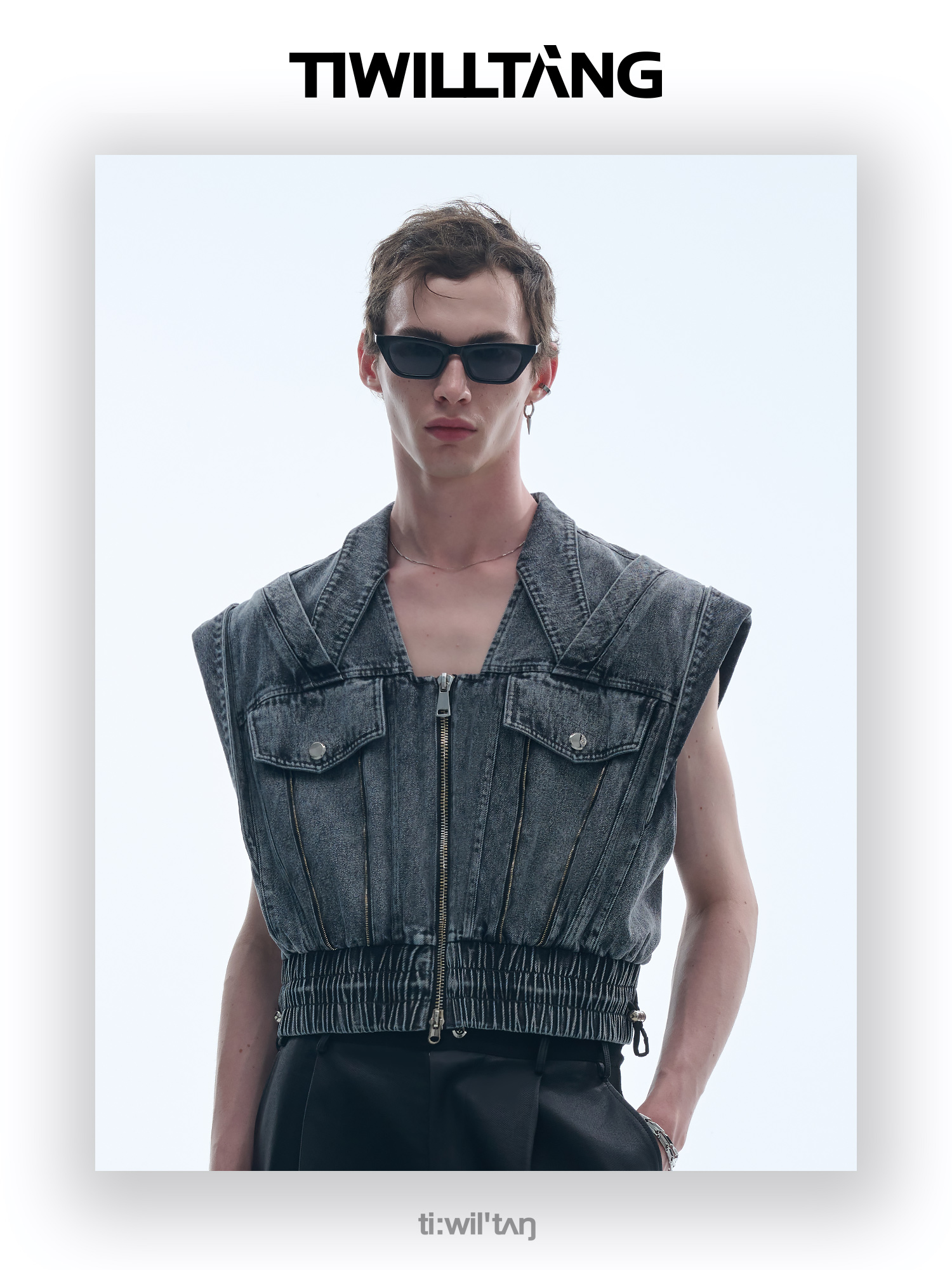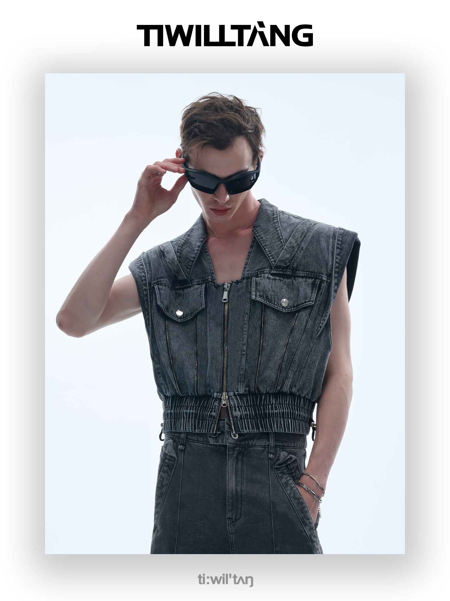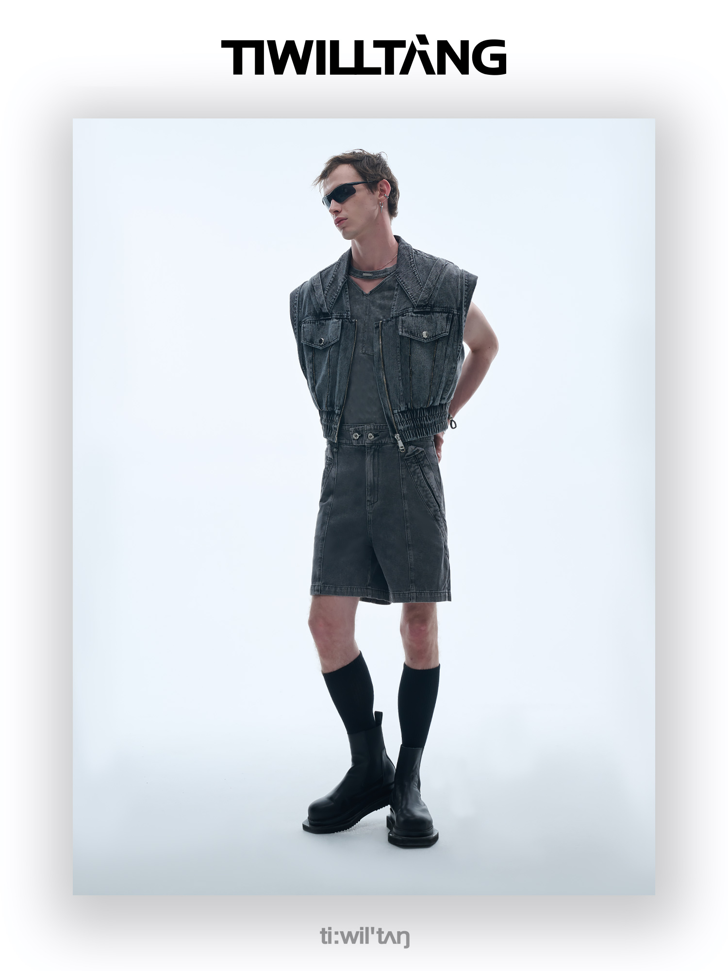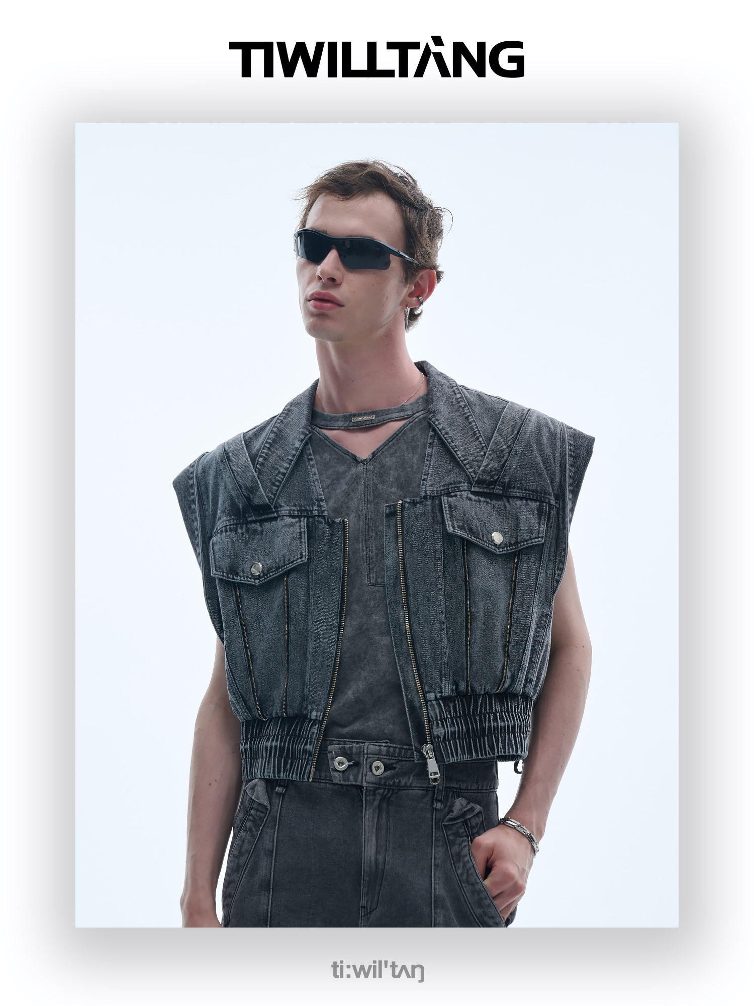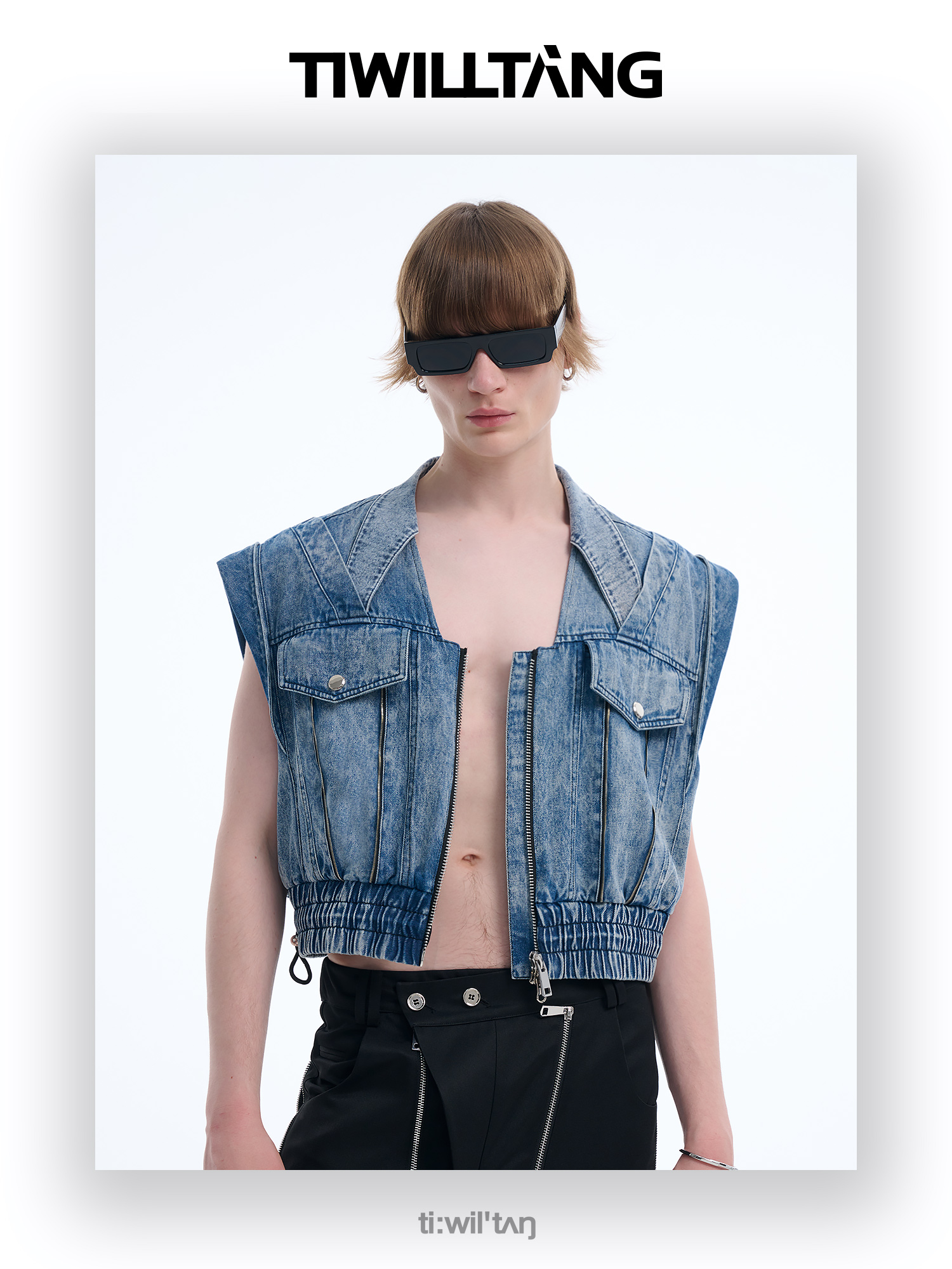 TIWILLTANG 启世录“锑栎”飞翼无袖设计感可调节牛仔坎肩上衣男