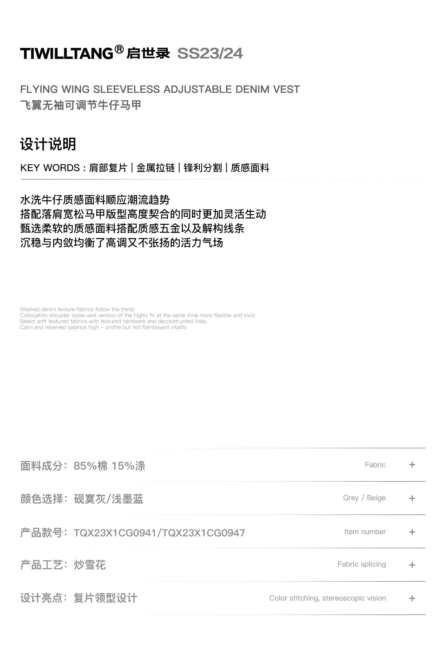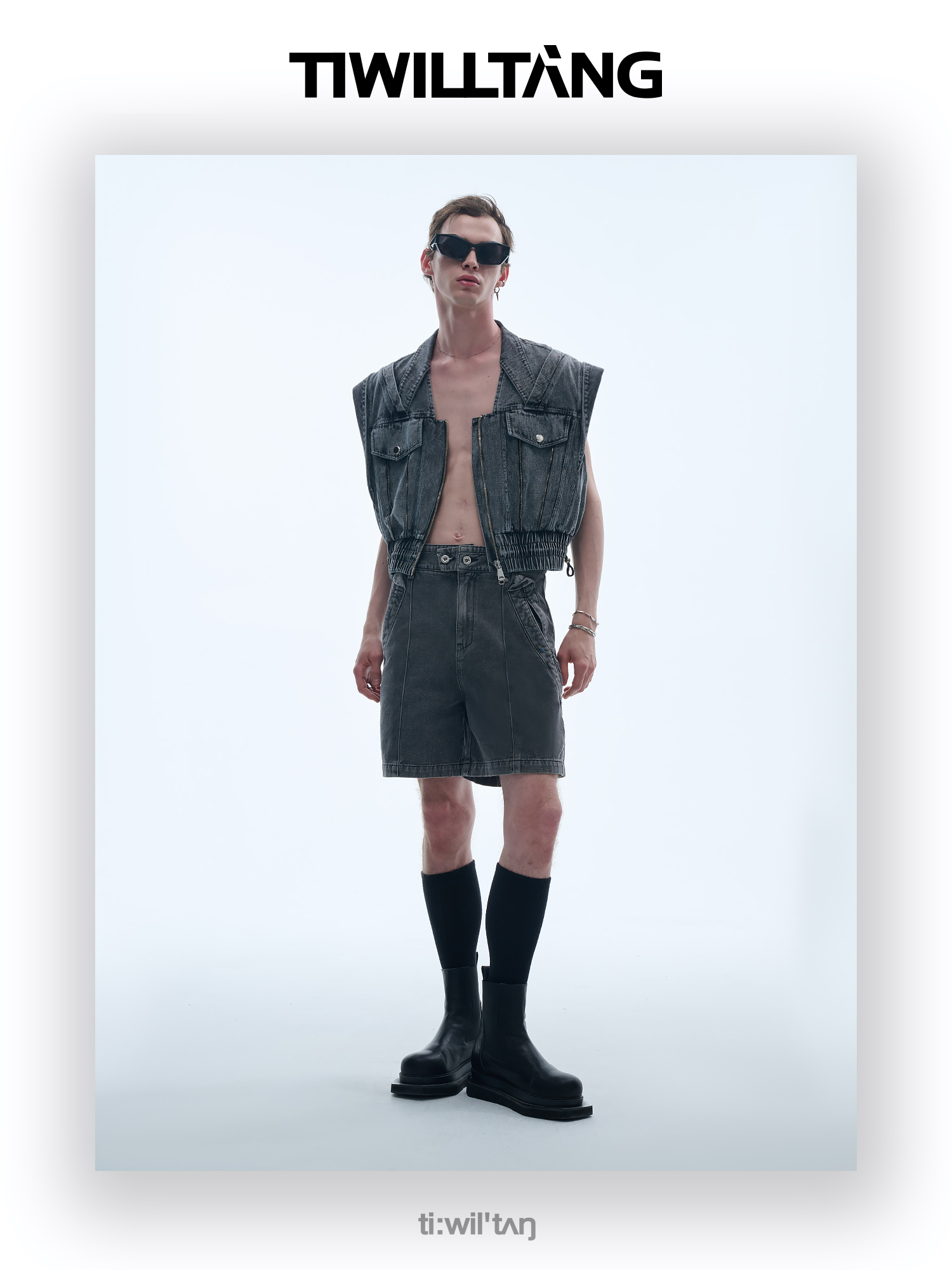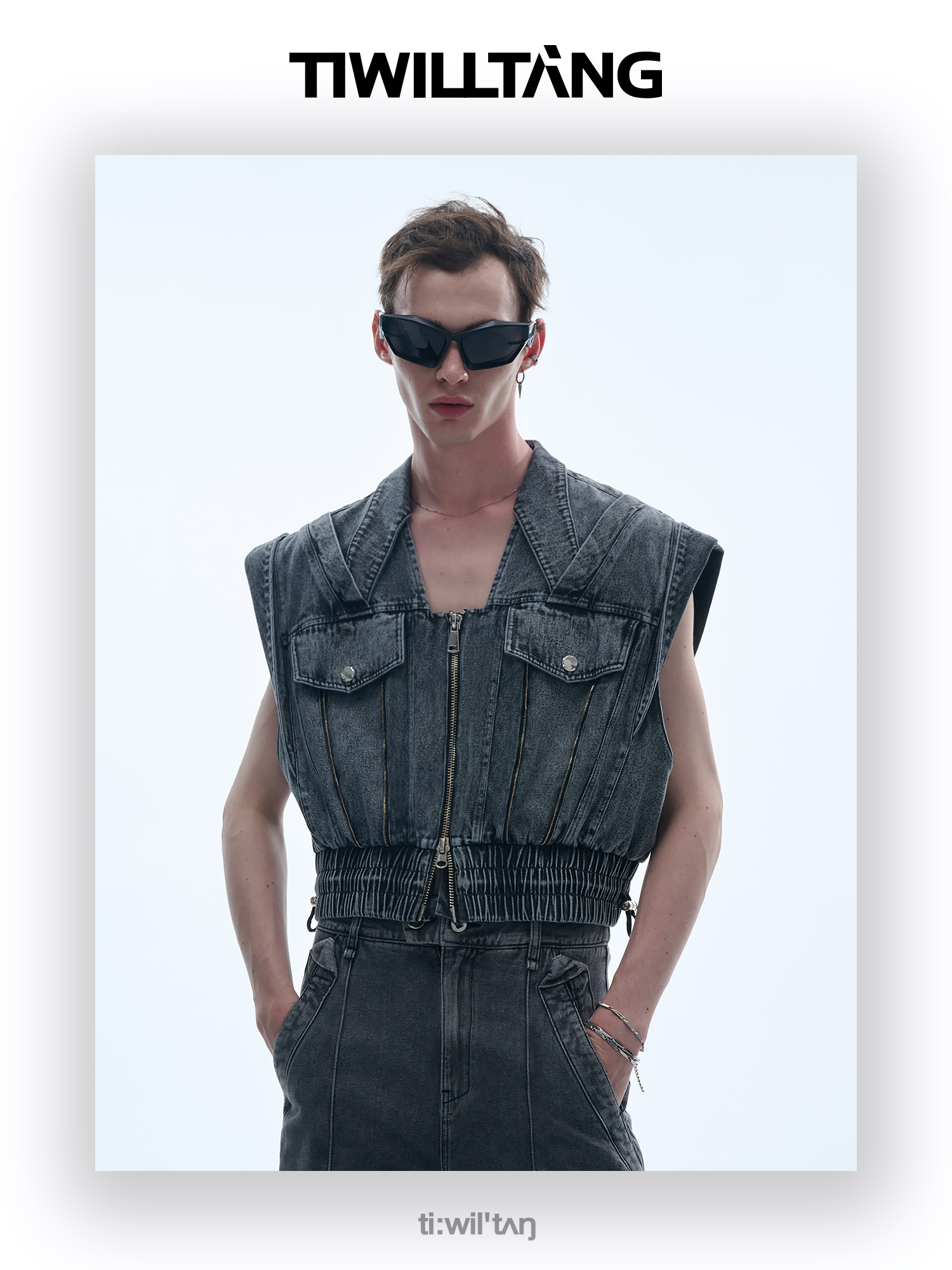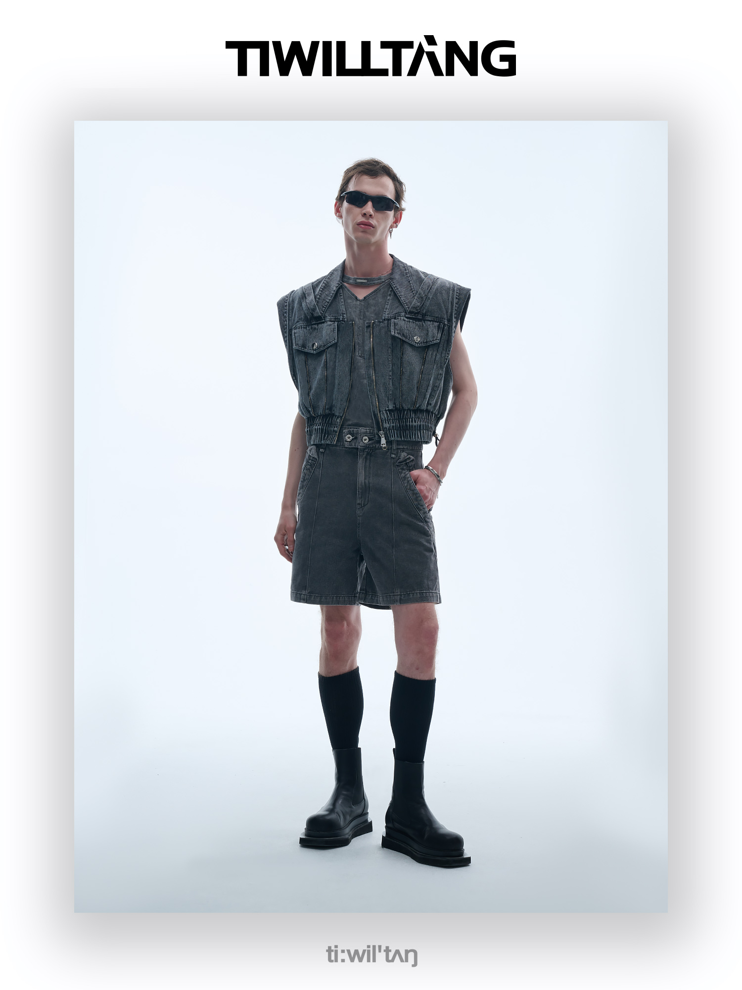 TIWILLTANG 启世录“锑栎”飞翼无袖设计感可调节牛仔坎肩上衣男