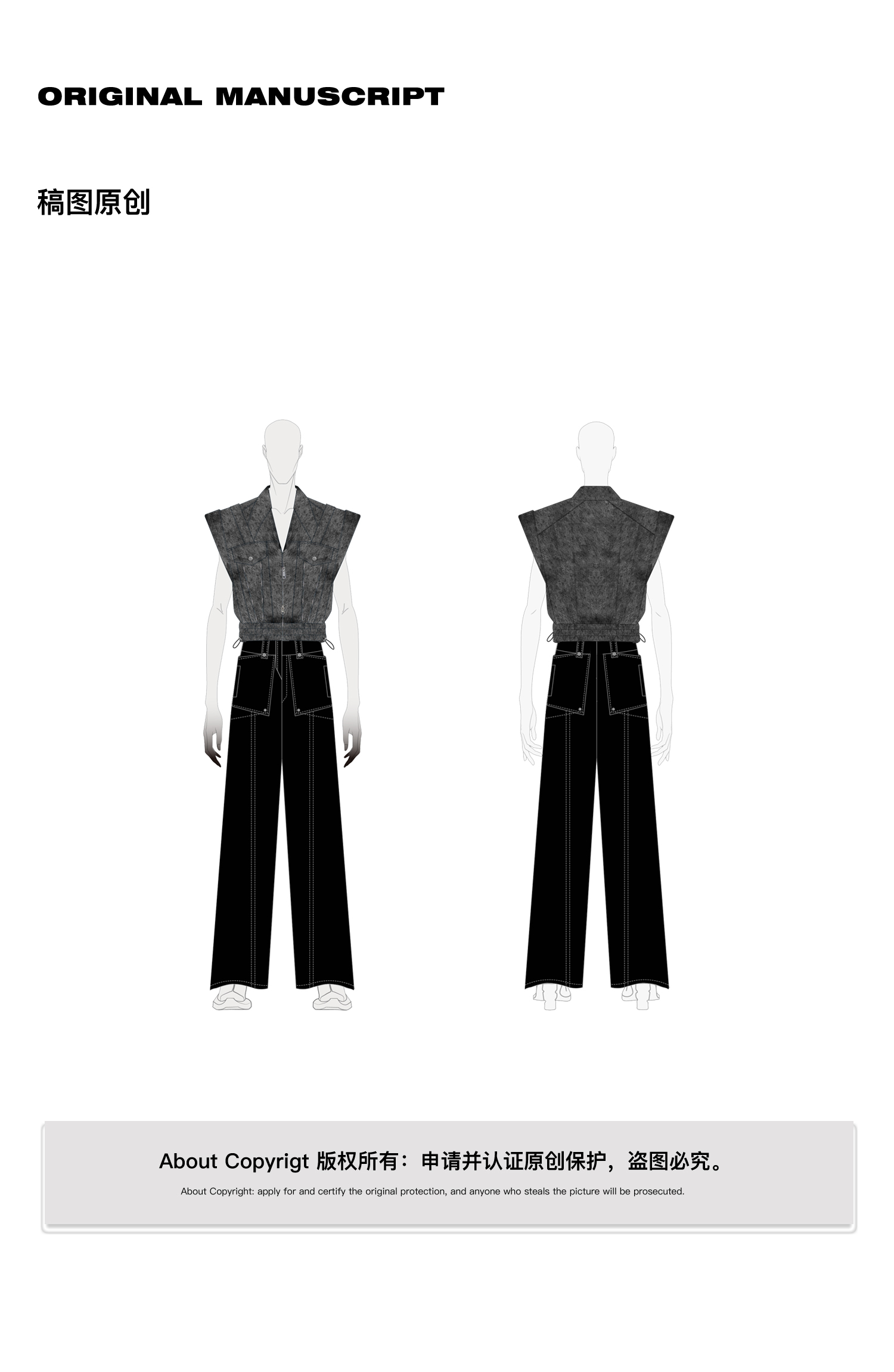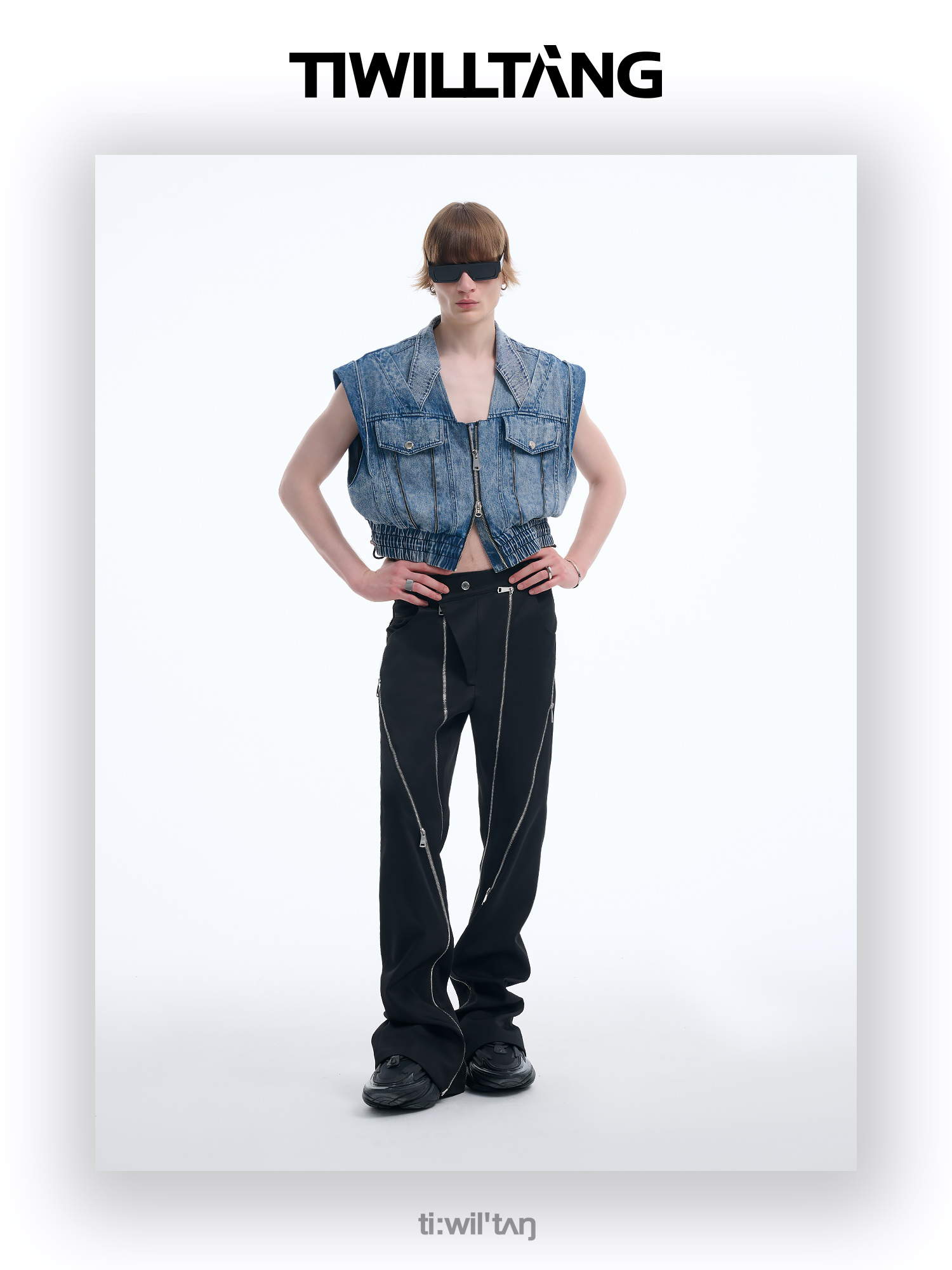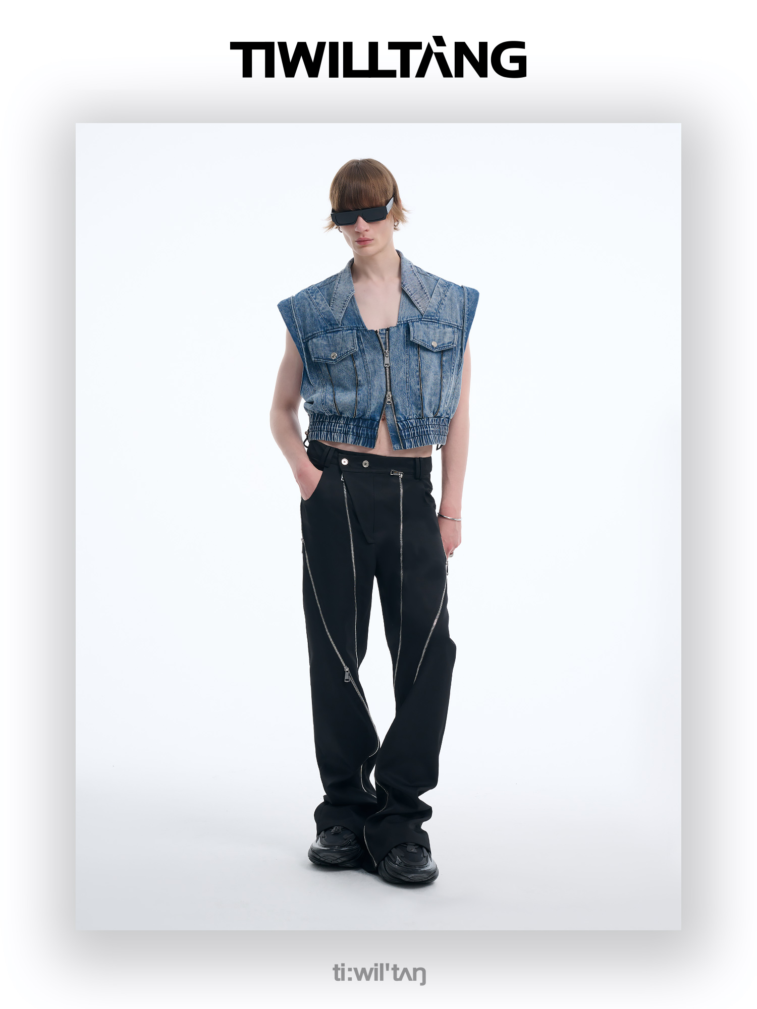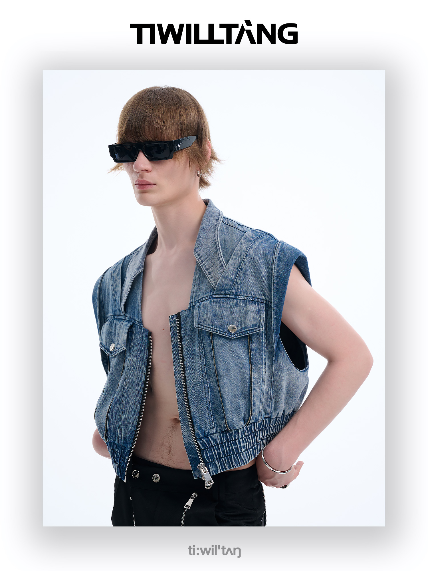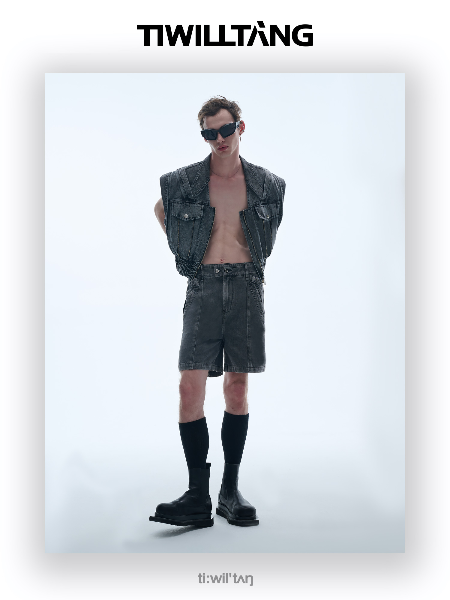 TIWILLTANG 启世录“锑栎”飞翼无袖设计感可调节牛仔坎肩上衣男