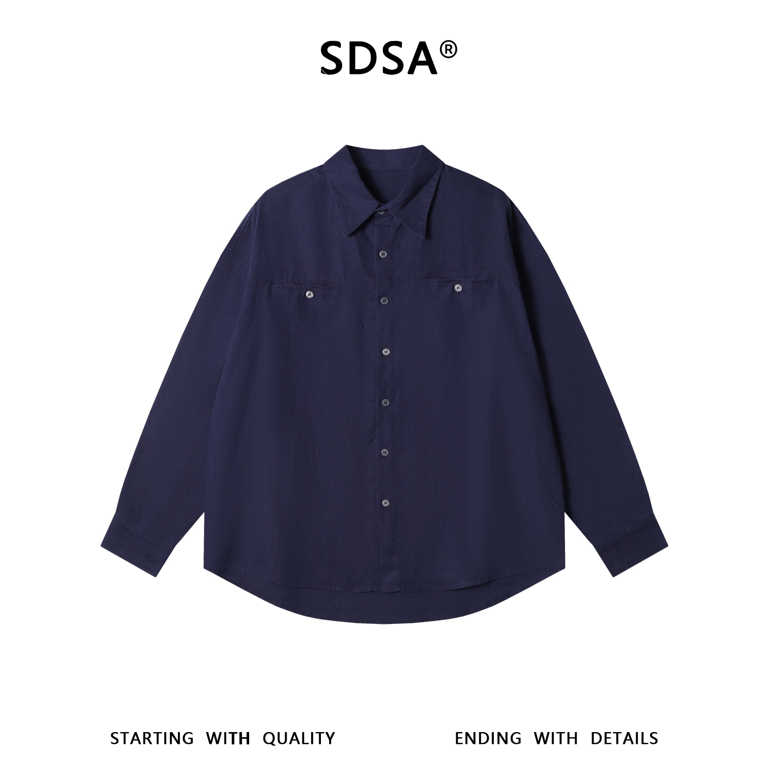 SDSA男装2026新款高贵轻奢时尚纯色纽扣翻领长袖衬衫百搭简约衬衣