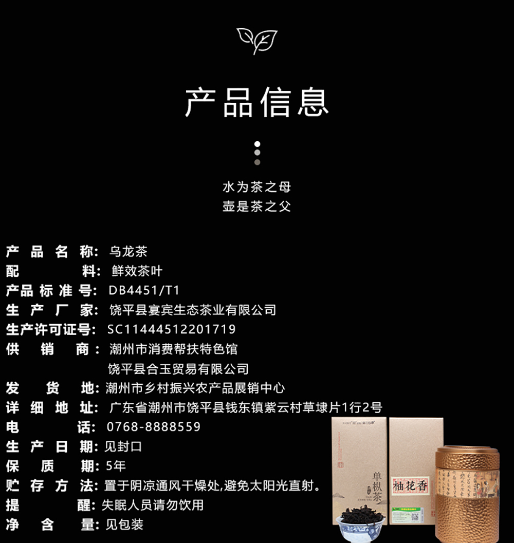 广东潮州紫云仓柚花香单枞茶 125g/罐