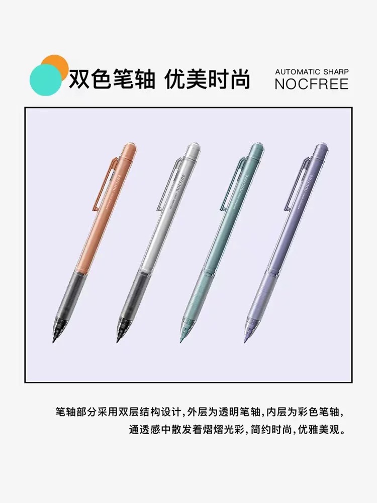 sunstar太阳星NOCFREE免按动进口自动出铅铅笔0.5高颜值学生不断芯防滑书写顺滑