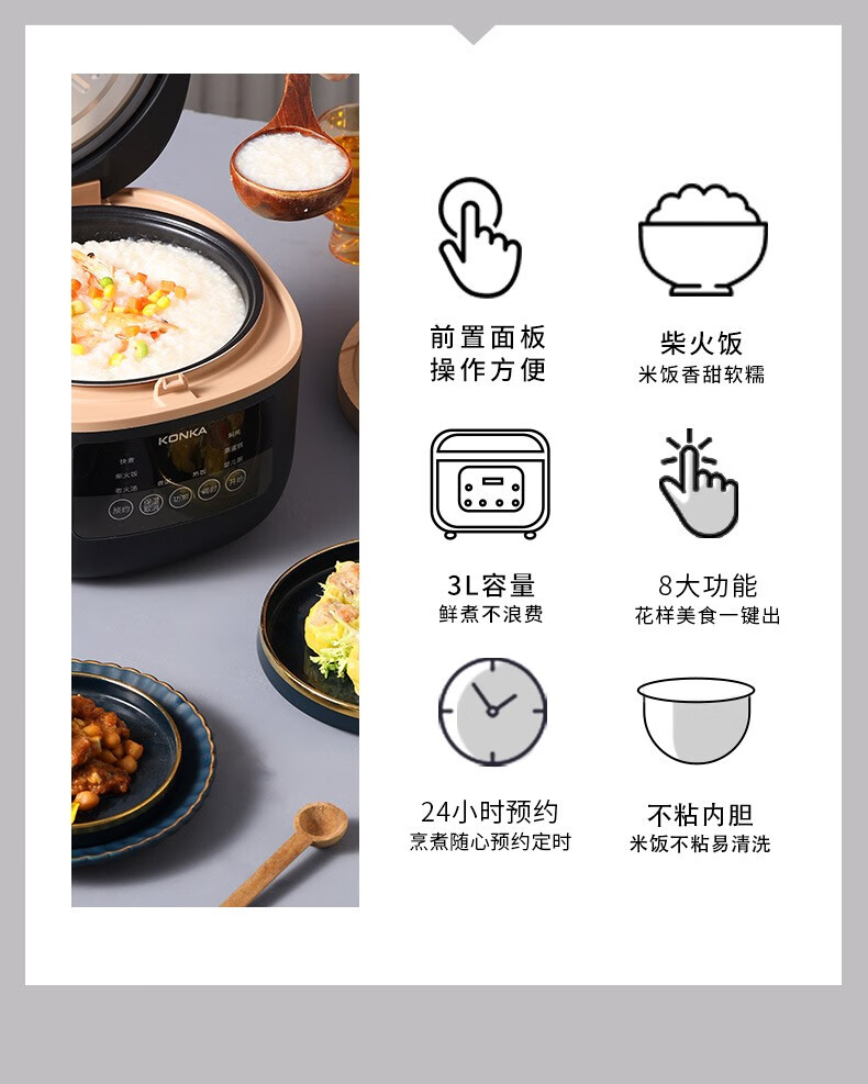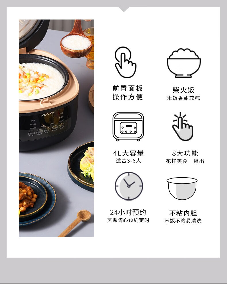 康佳(KONKA)智能电饭煲多功能煲汤煮粥家用2-5人煮粥柴火饭电饭锅 KDFB-4052-M