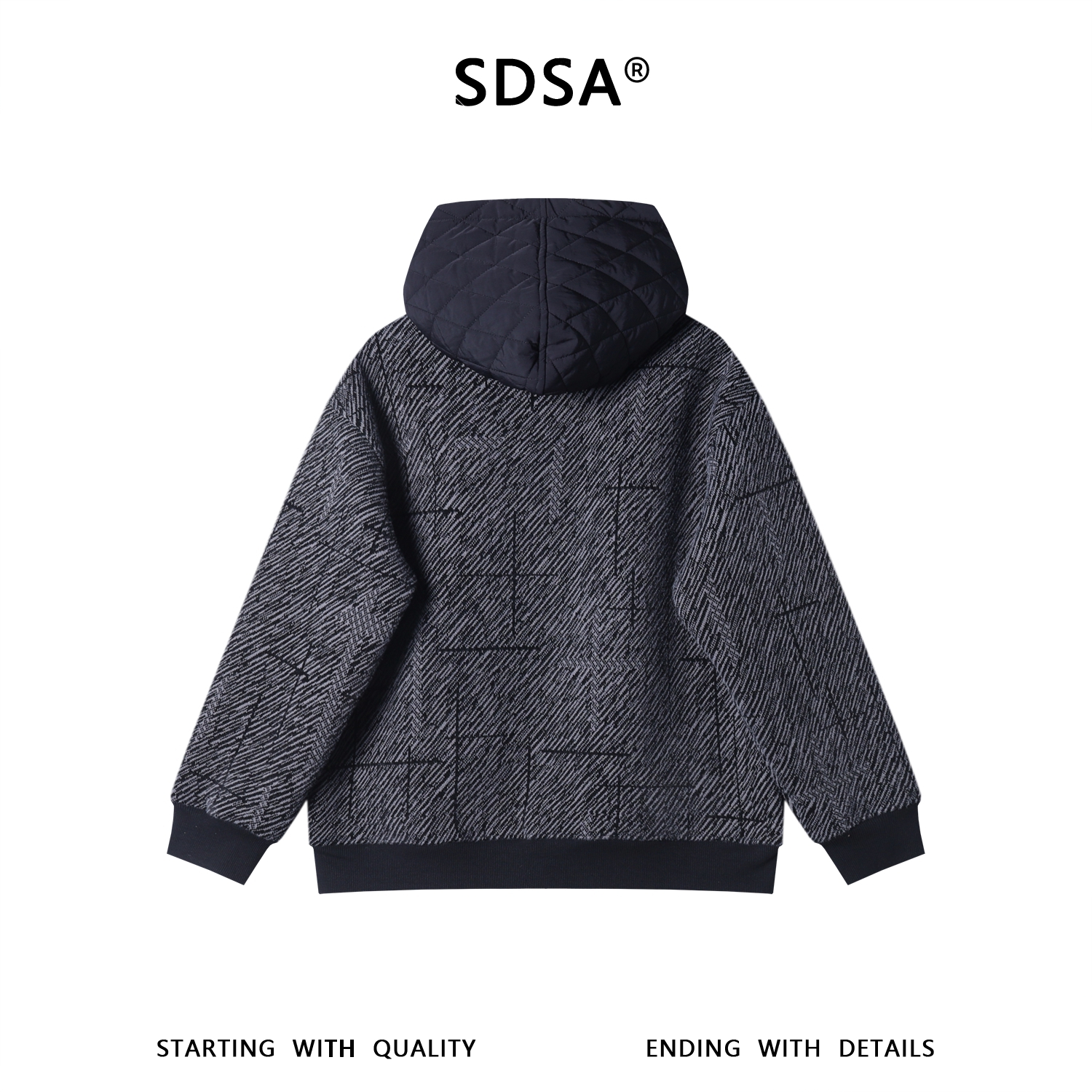 SDSA男士秋冬新款痞帅男装韩版提花线条拼接连帽卫衣百搭宽松上衣