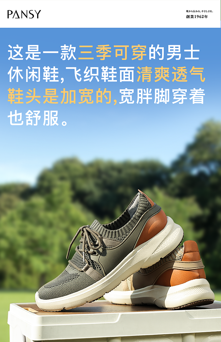Pansy盼喜日本男鞋飞织透气休闲健步鞋轻便舒适百搭一脚蹬夏款HDN1085