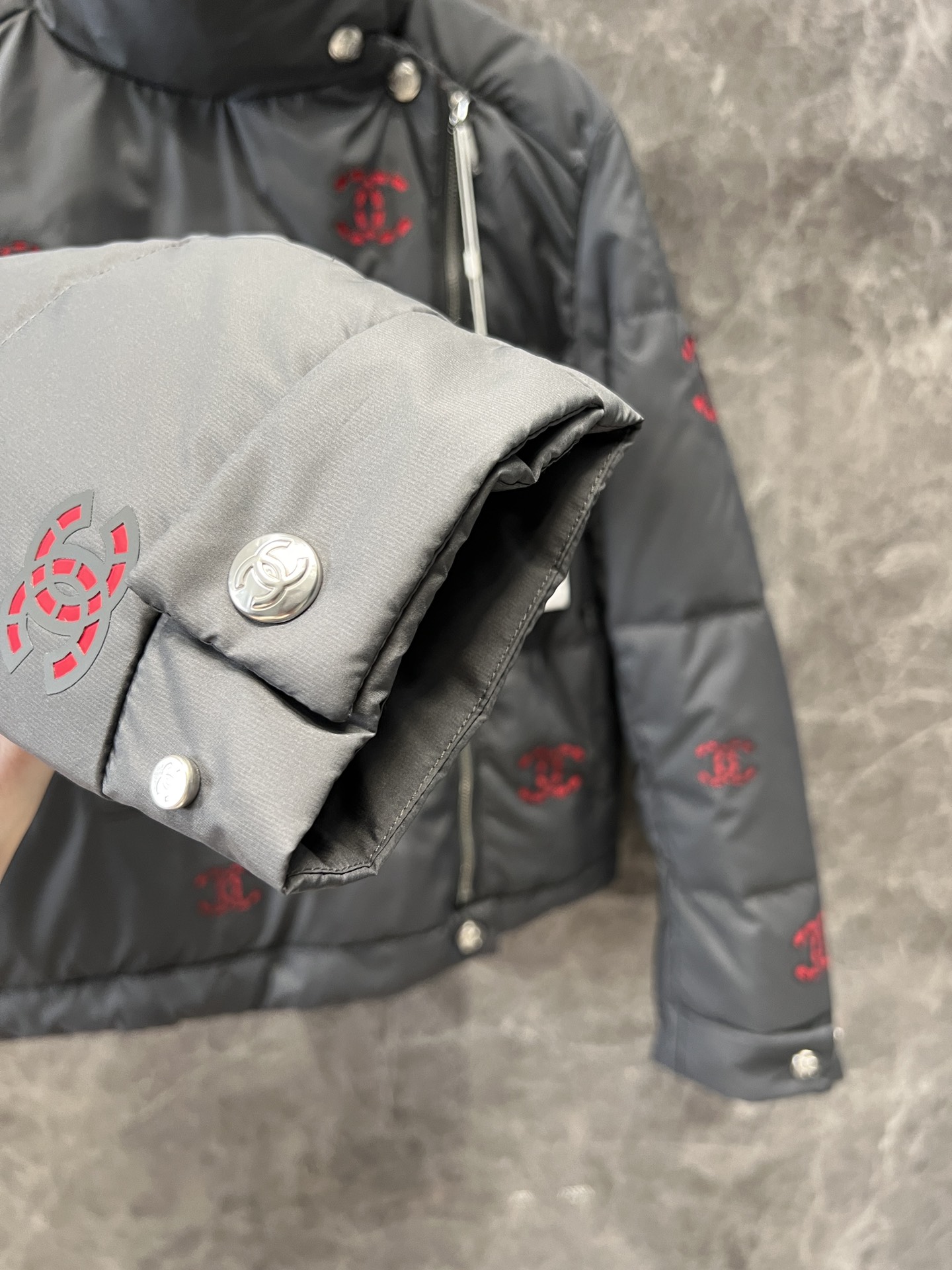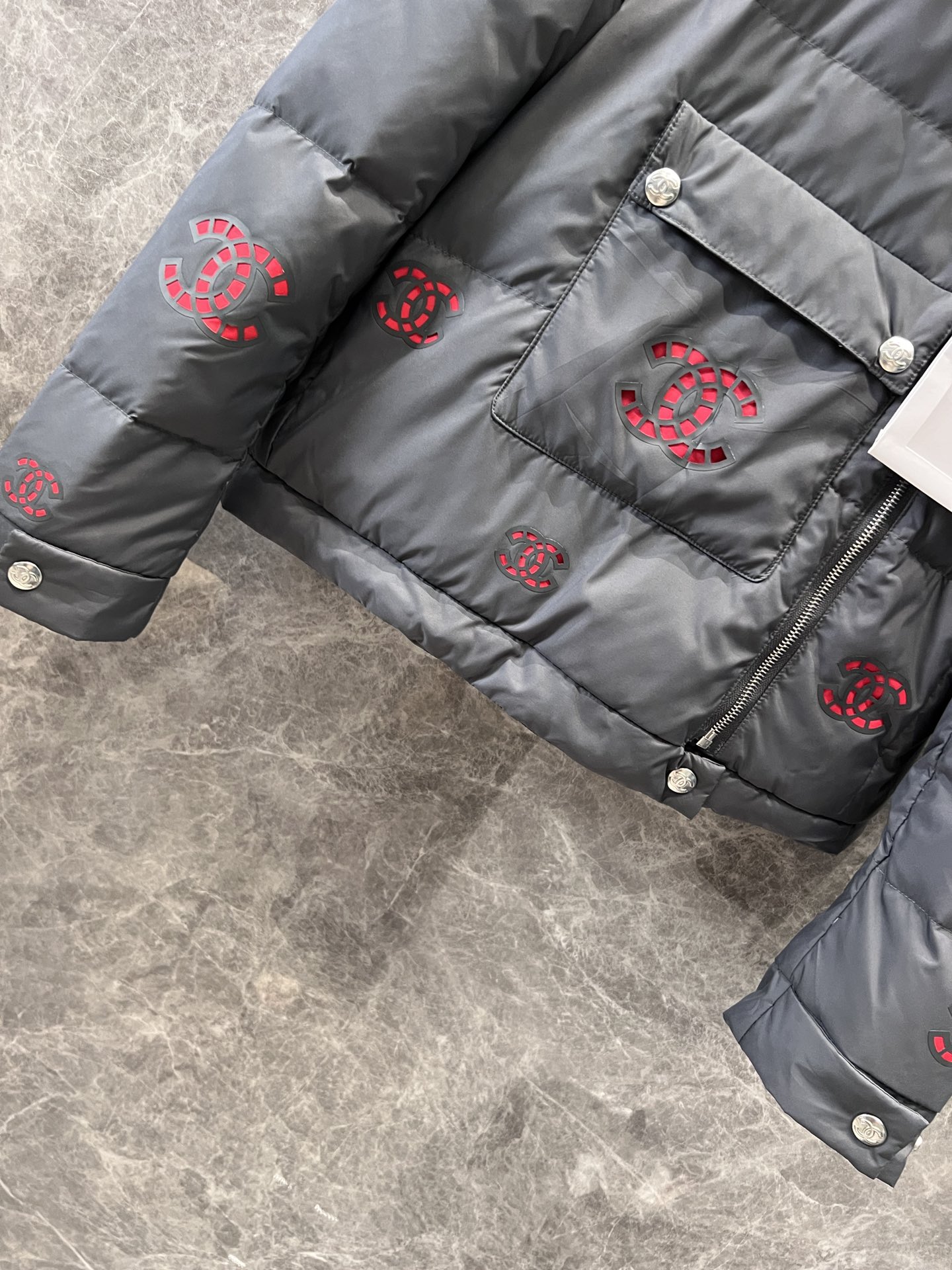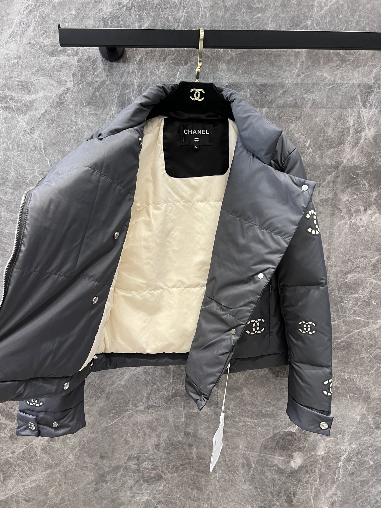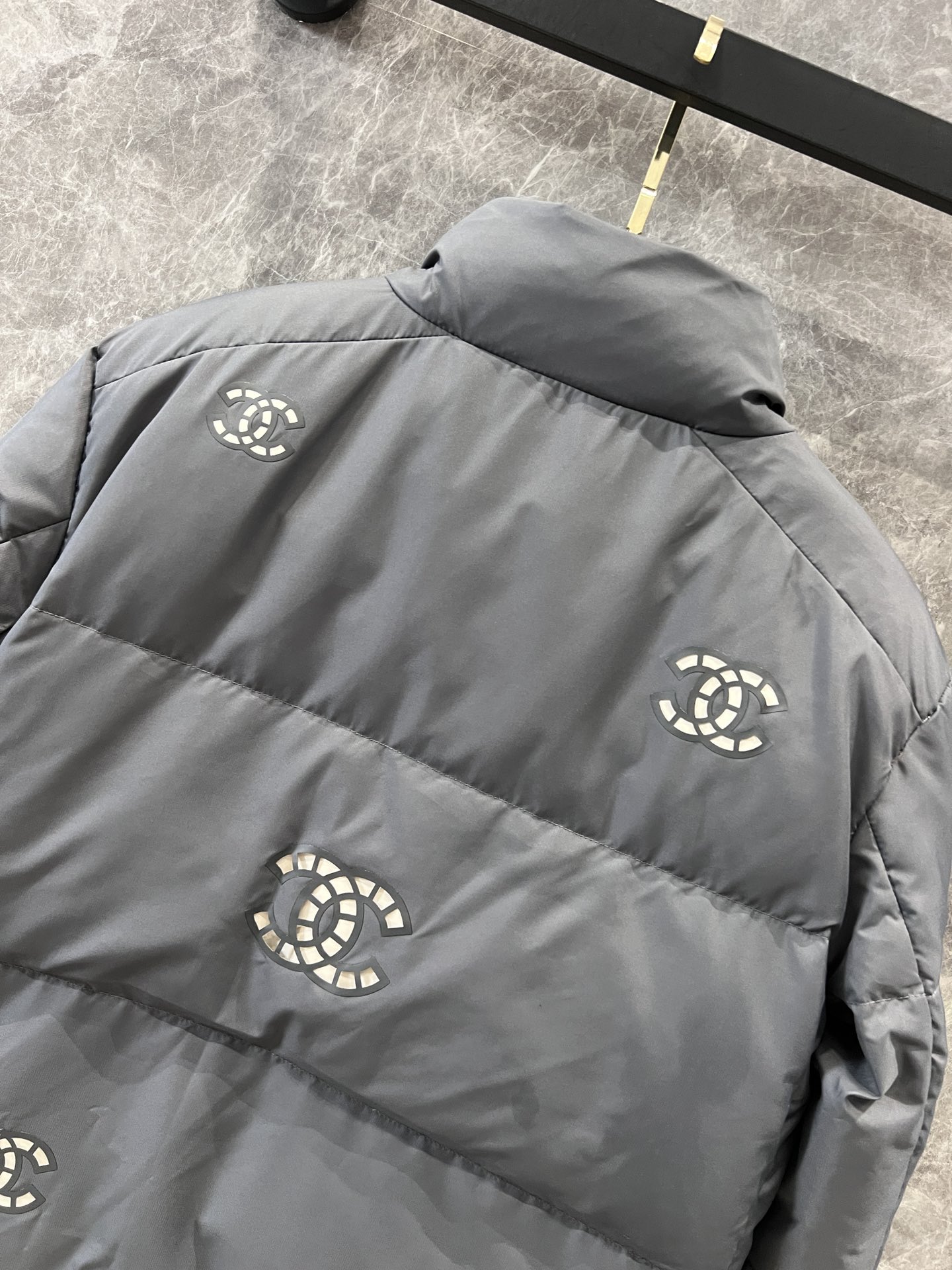 面料定织定染,五金开模定制,白鸭绒国标90充绒,这款最耗时的工艺是面料上的镂空图案制作,镂空图案材料厚度和硬度几乎接近YB❣全件共三个型号花型