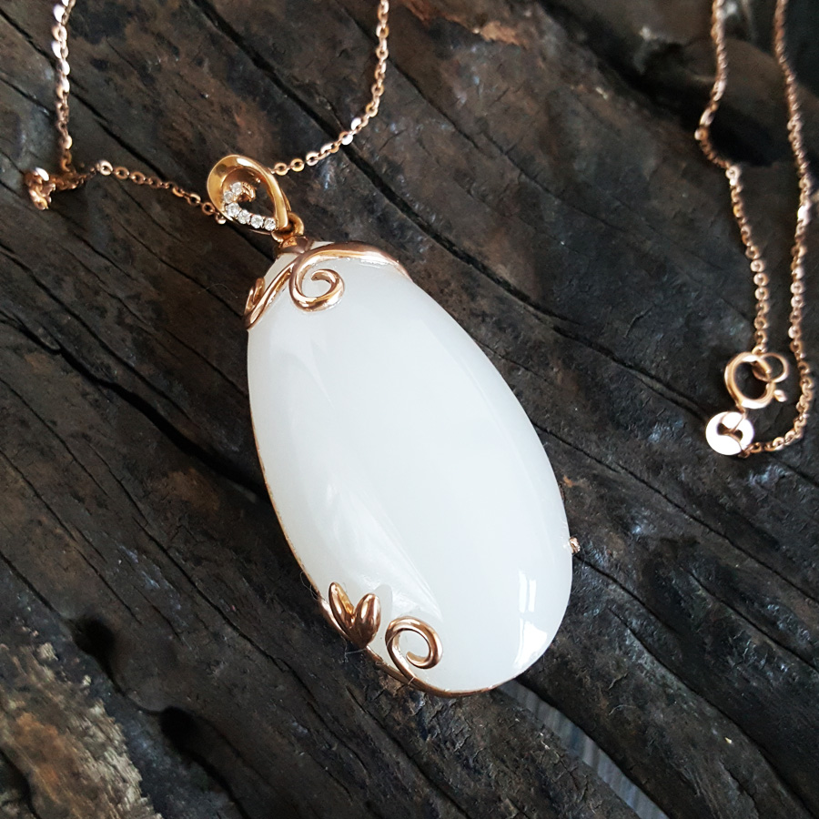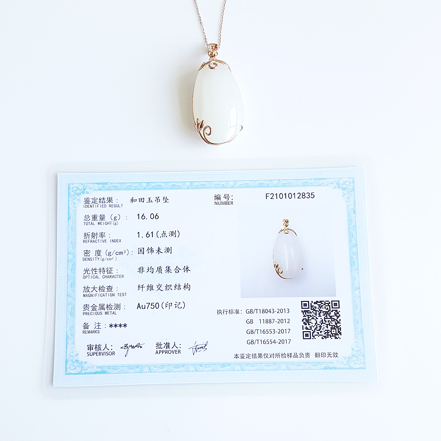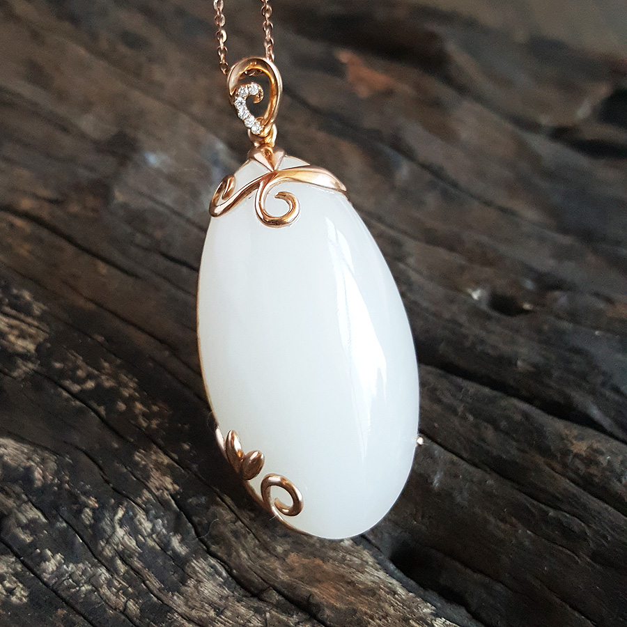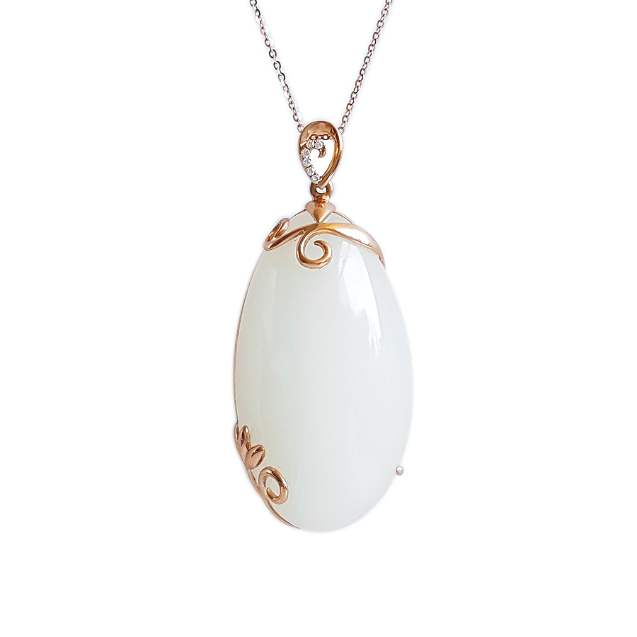 【天然正品】天然新疆料随形和田玉AU750玫瑰金吊坠项链45.0*20.9*12.8MM(皆取最大值)170523XY01+