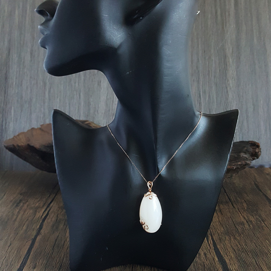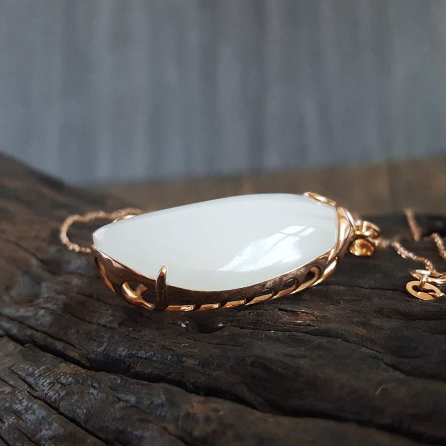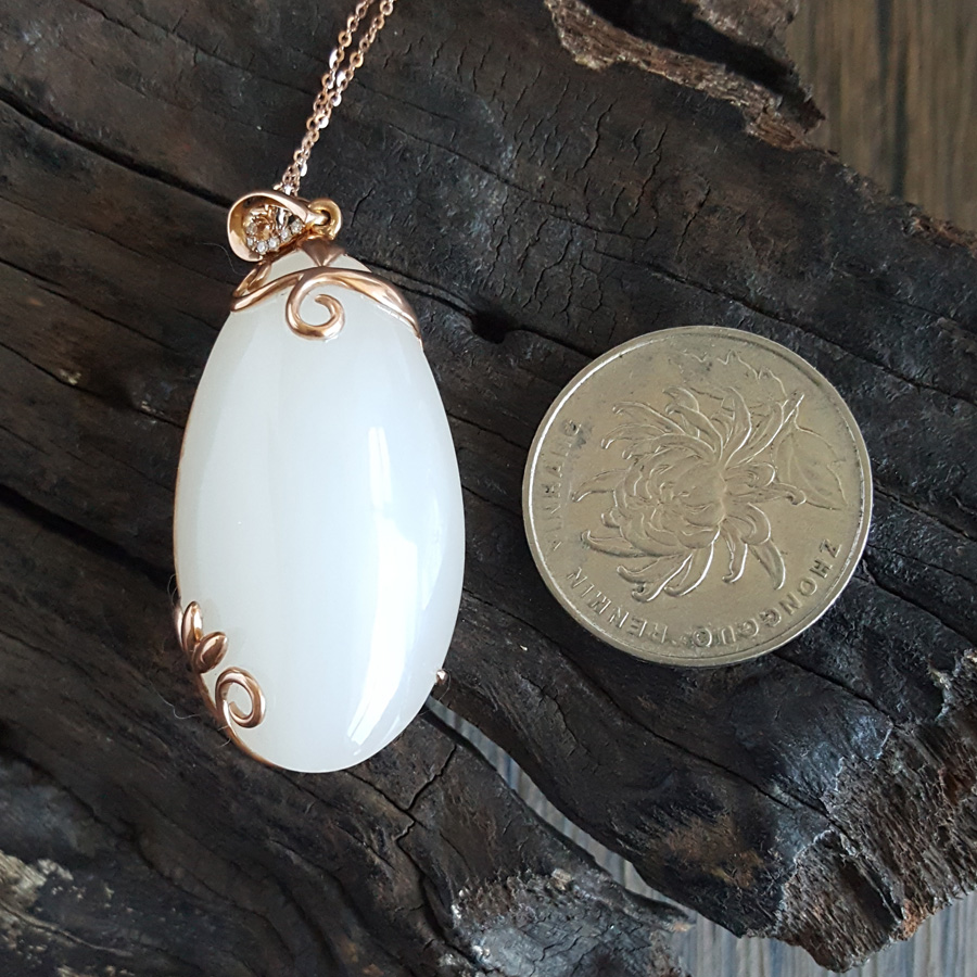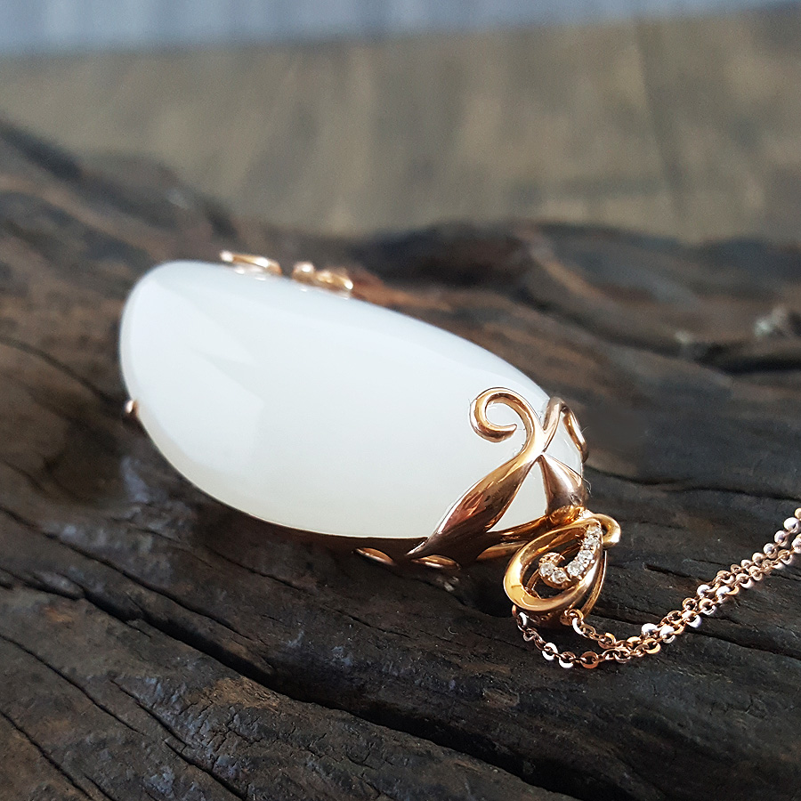 【天然正品】天然新疆料随形和田玉AU750玫瑰金吊坠项链45.0*20.9*12.8MM(皆取最大值)170523XY01+