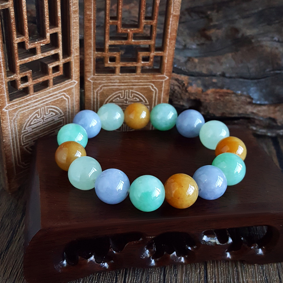名称 | 天然约13.3MM精品细腻糯种浓郁多彩翡翠圆珠手串 |