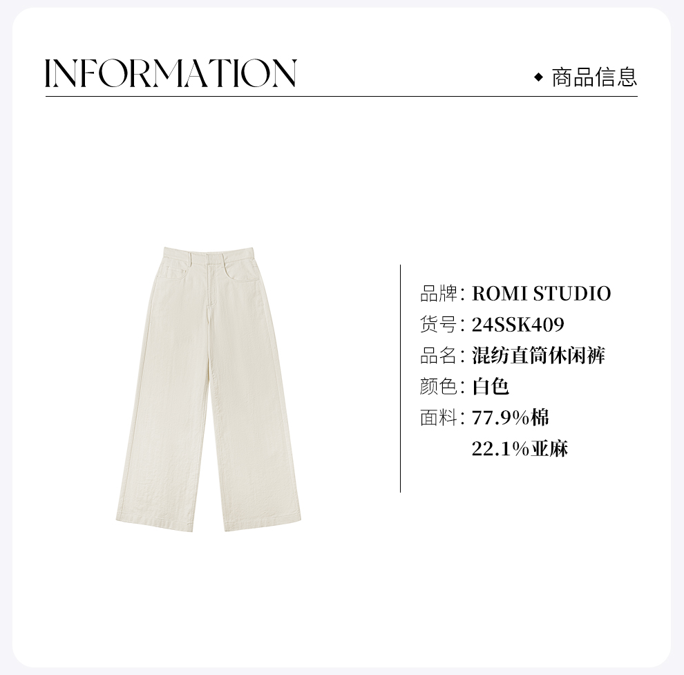 ROMI STUDIO“隐贵绅士”高密度棉麻人字纹混纺直筒休闲裤 24SSK409