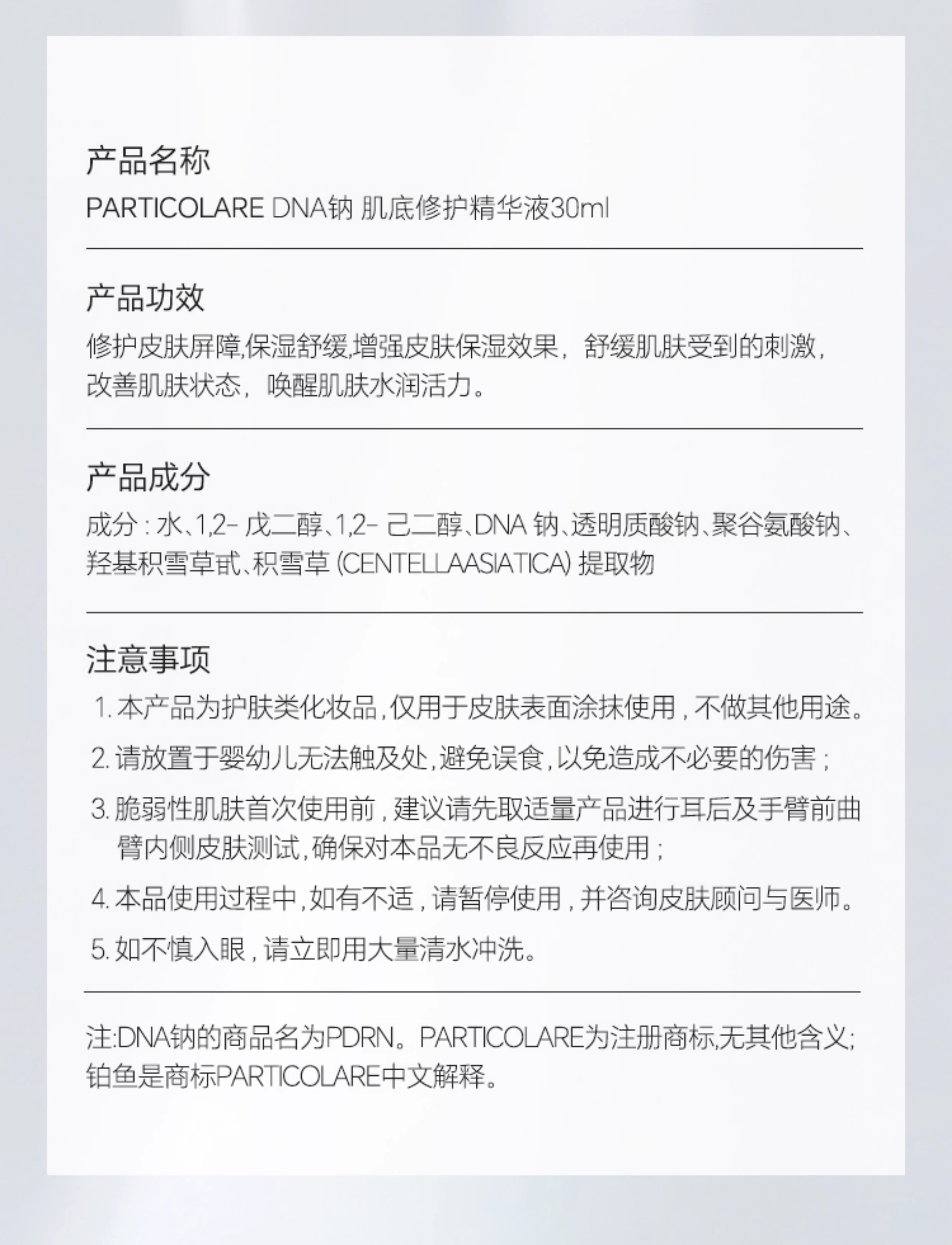 【妆】铂鱼三文鱼DNA钠修护精华液医美舒缓泛红敏感屏障护肤品