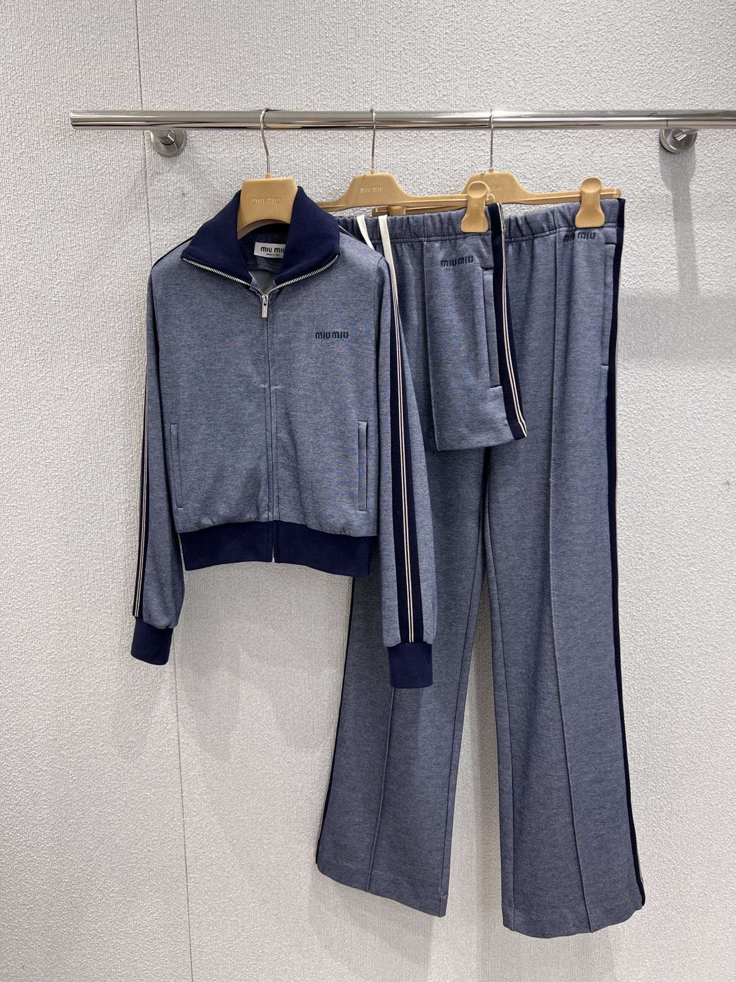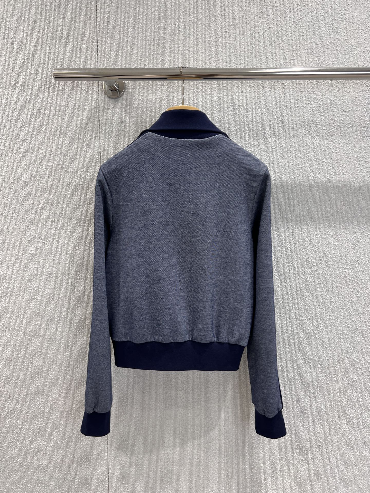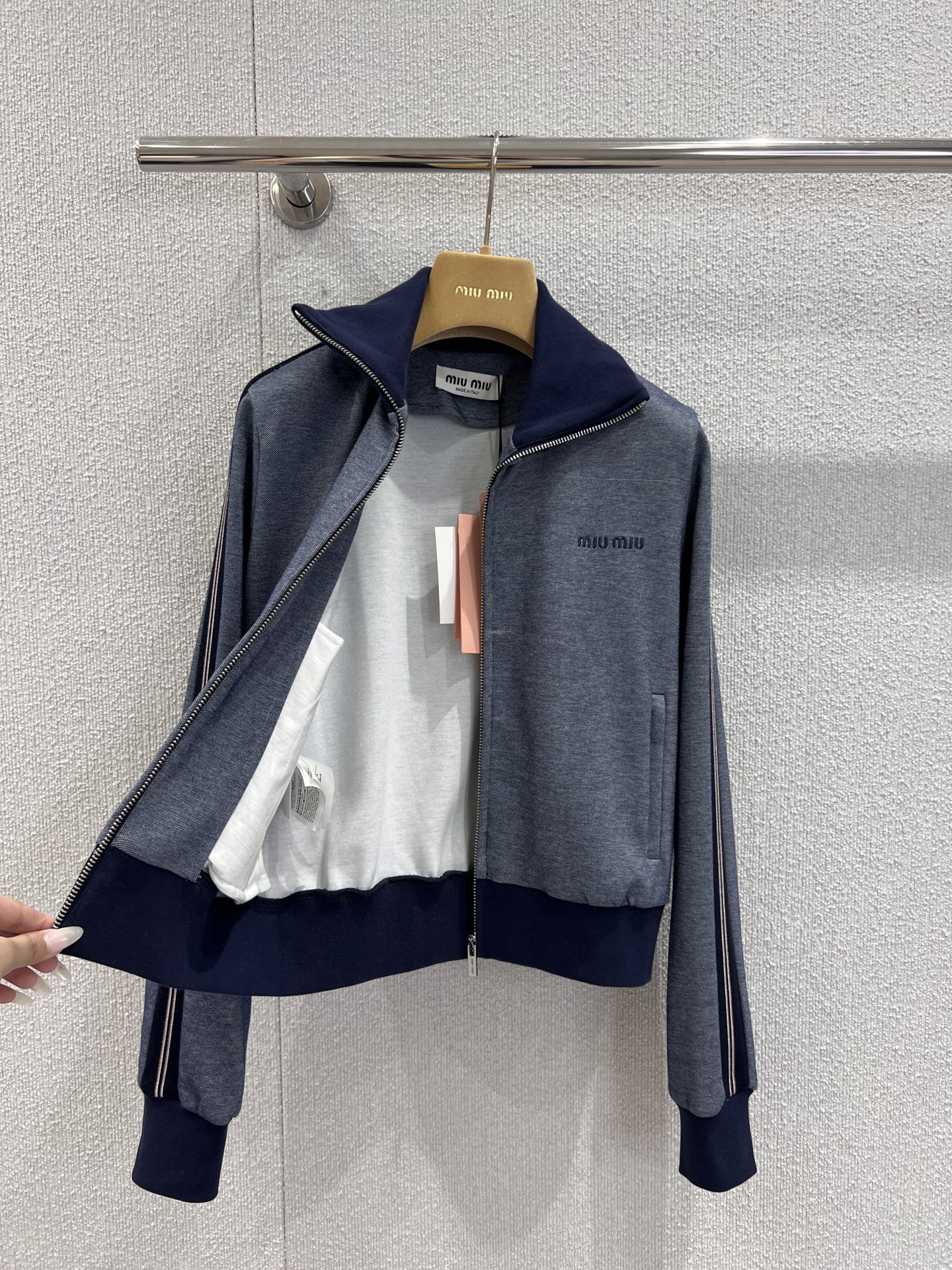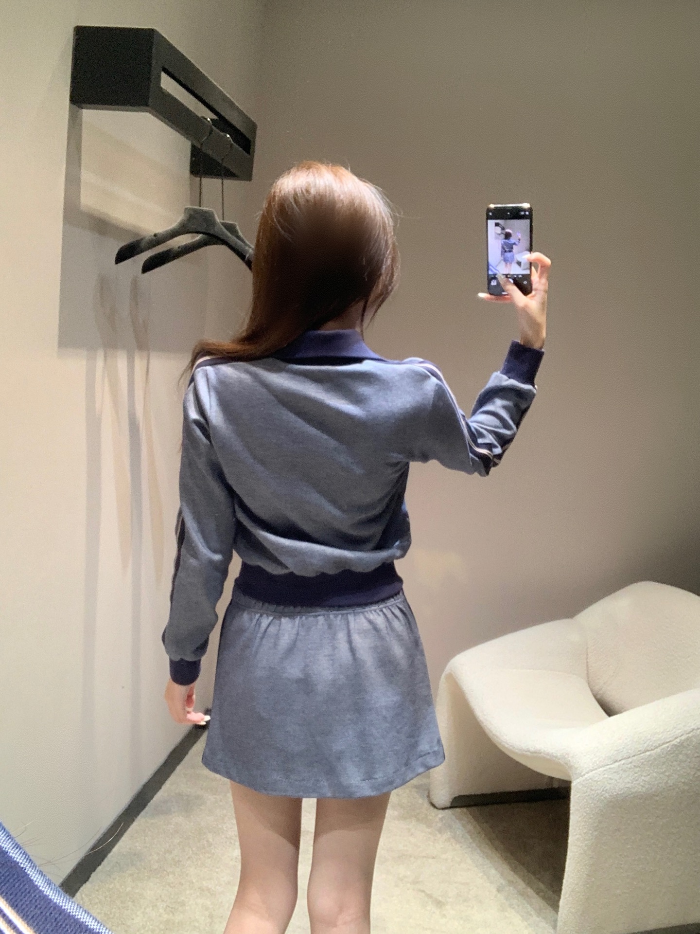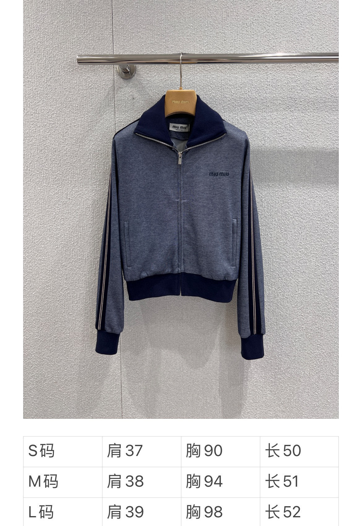 Miumi* 25Fw秋冬新款 撞色织带翻领拉链外套+短裙套装丨⚠独家yb开发!高版出品!翻领设计利落又带点复古腔调,拉链元素增添随性感。撞色织带沿着袖侧延伸,既是设计亮点,又悄悄拉长身形比例。同系列短裙完美延续风格,版型利落显腿长,与外套的撞色细节呼应,整体感拉满。日常出街时,它是显高显瘦的小心机!成套穿复古运动风直接拉满!现货发售S/M/L