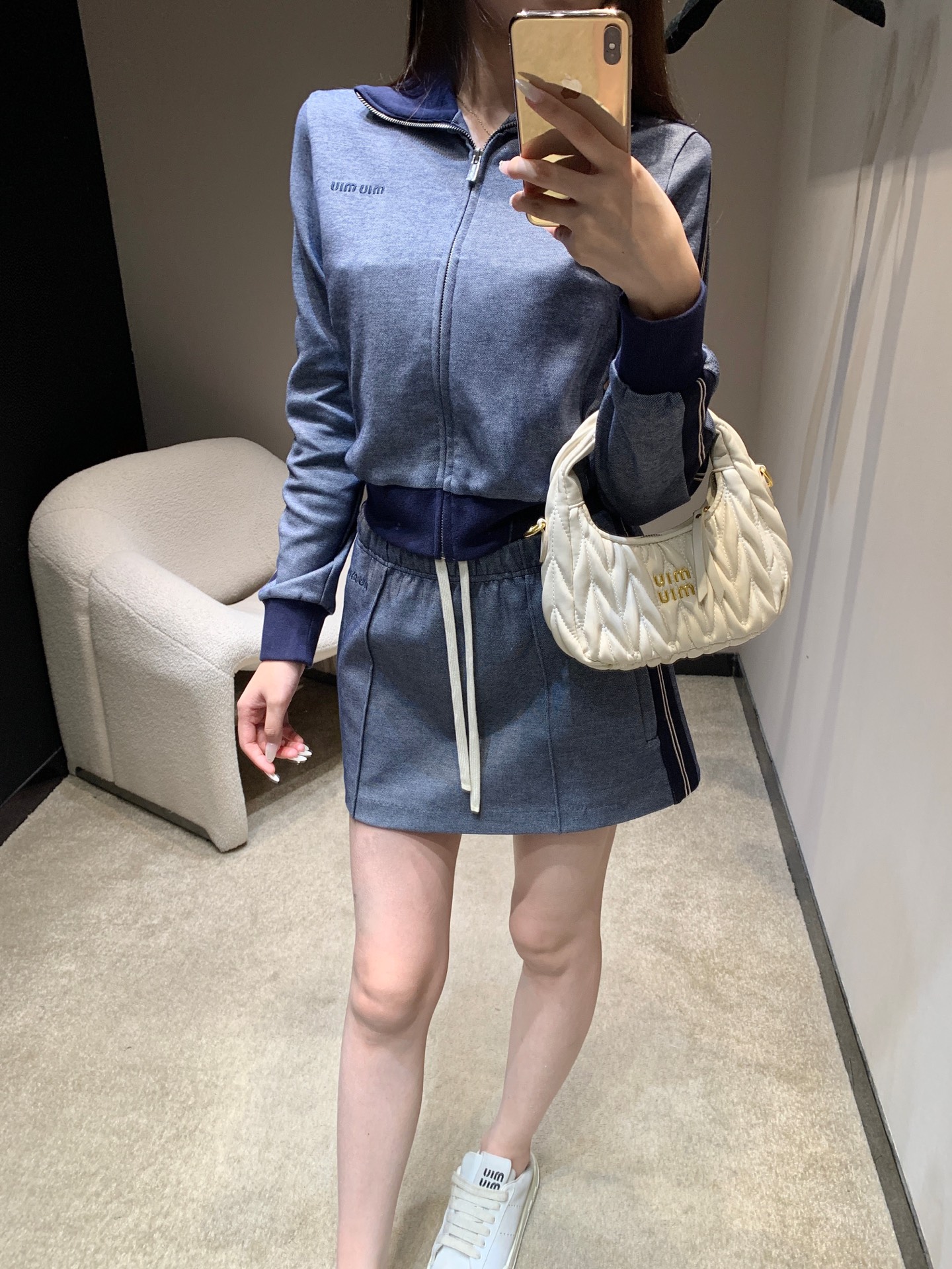 缪缪 25Fw秋冬新款 撞色织带翻领拉链外套+短裙套装(DQJ*MM)
