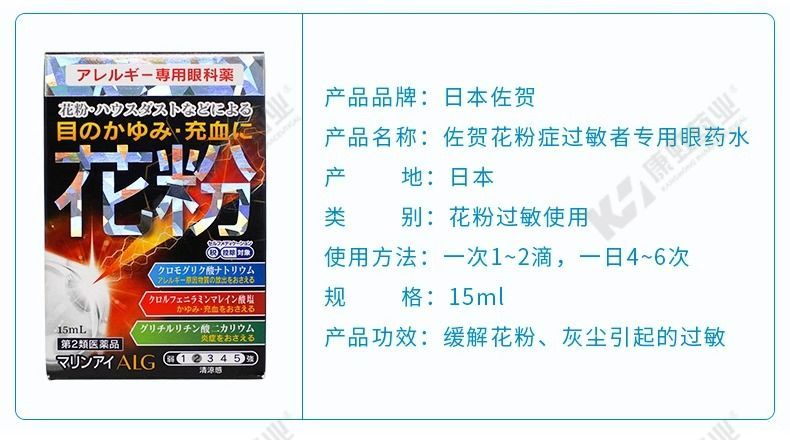 日本佐贺花粉症抗过敏眼药水眼干眼涩眼疲劳干痒流眼泪滋润滴眼液