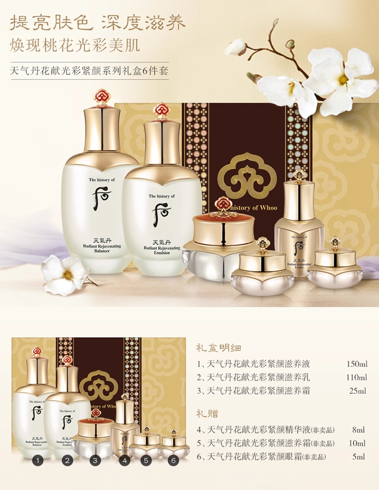 后whoo 天气丹花献光彩紧颜系列礼盒(308ml)6件套