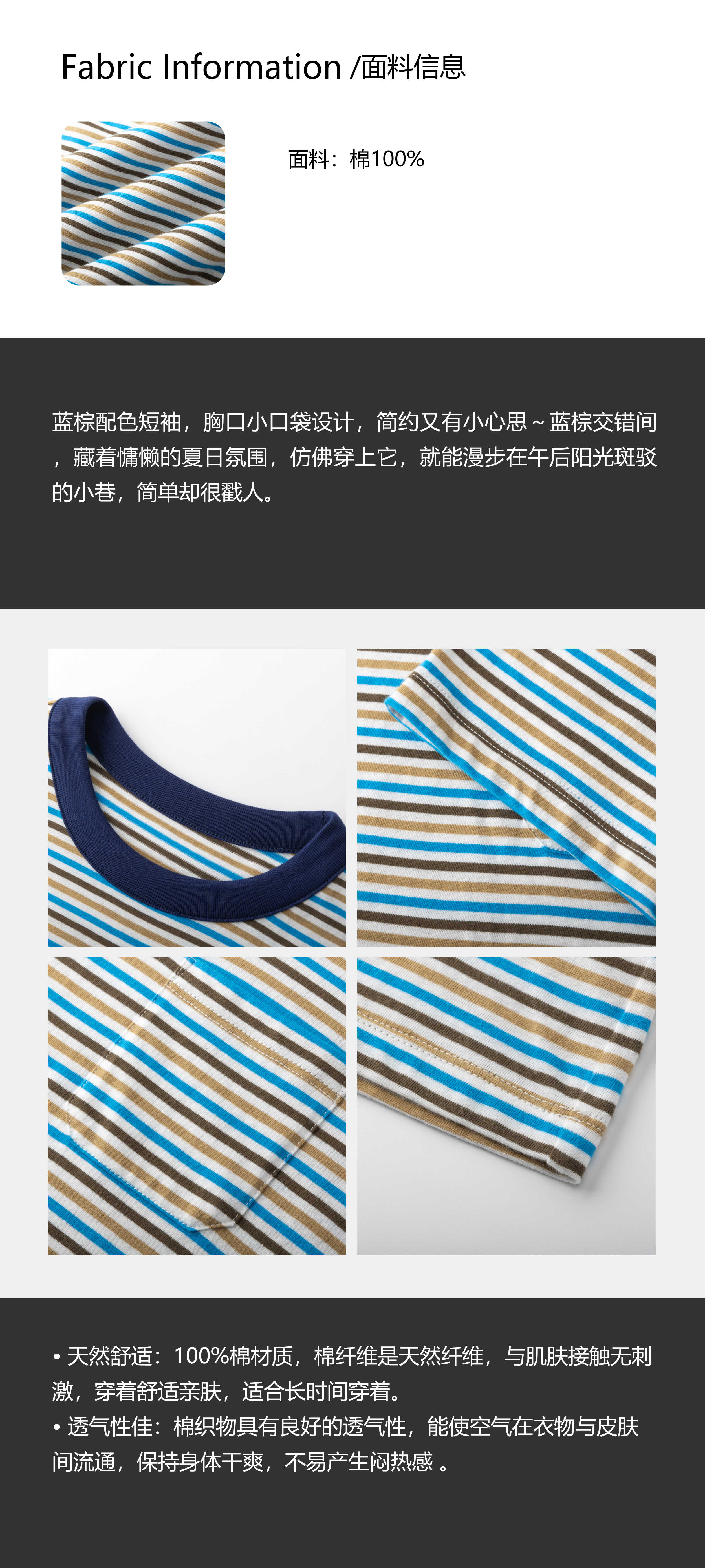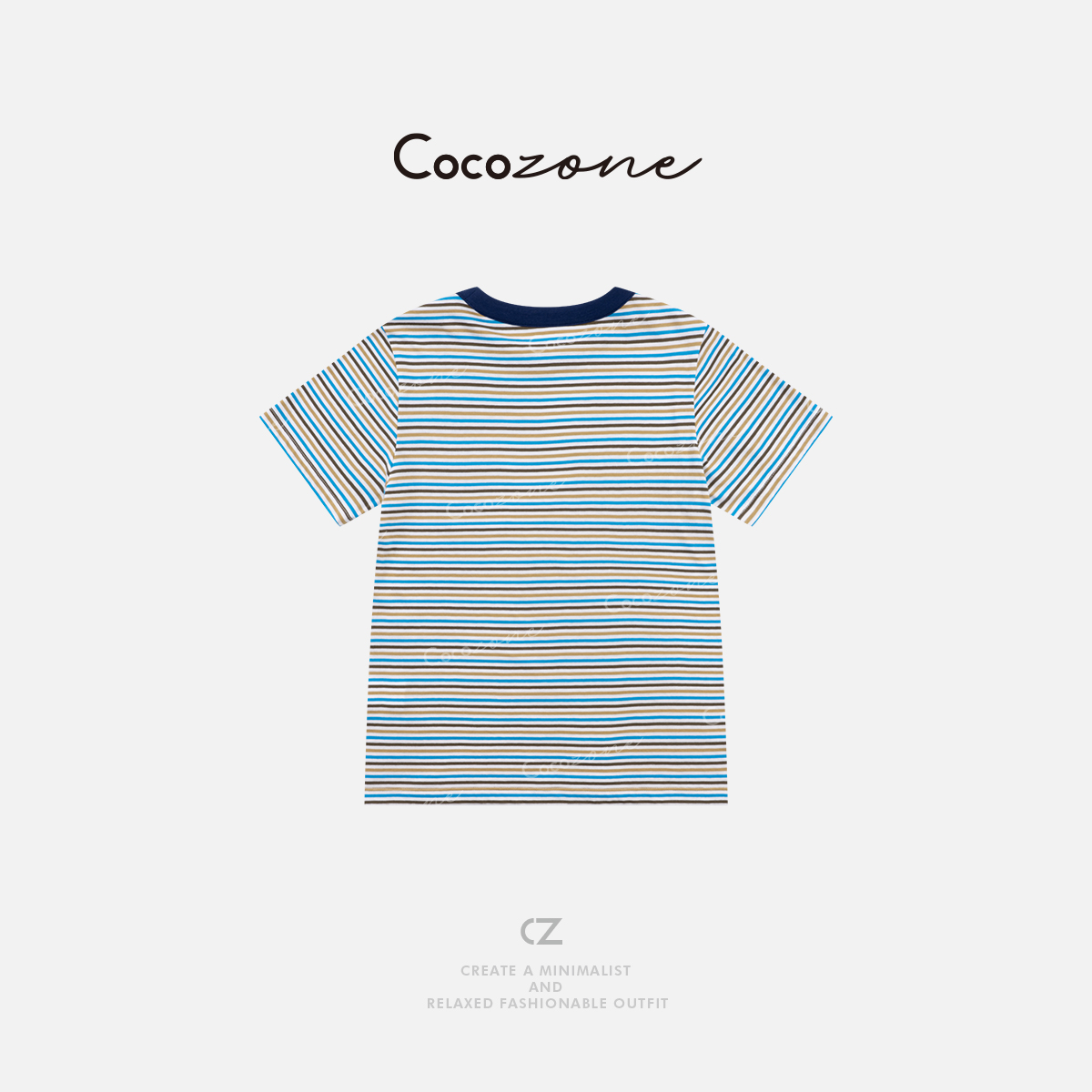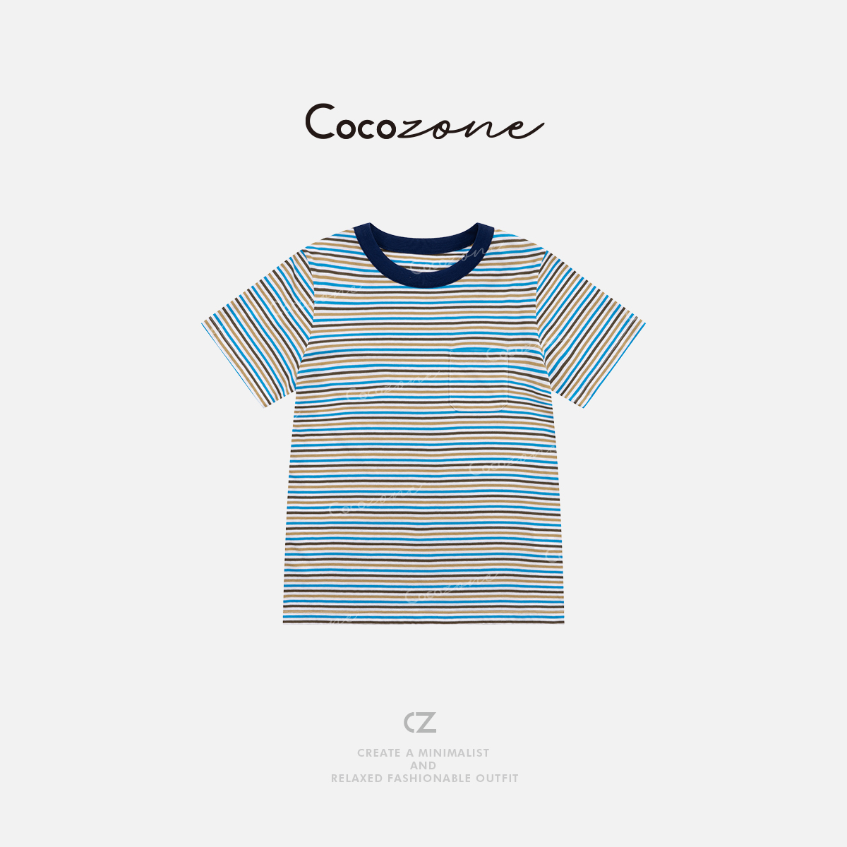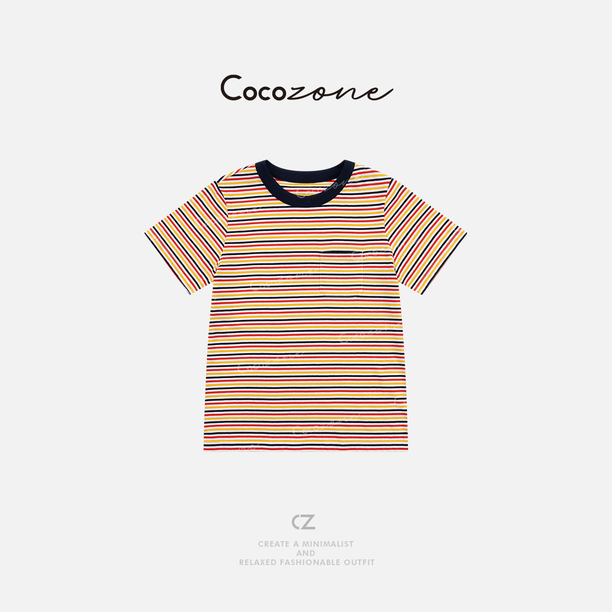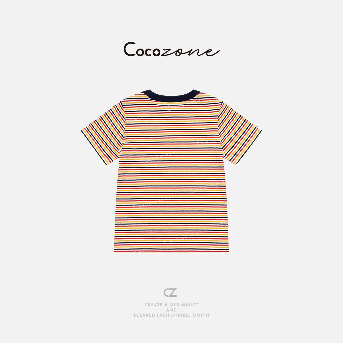 COCO ZONE 刘一一 【100棉】撞色圆领条纹短袖T恤CD1A1000
