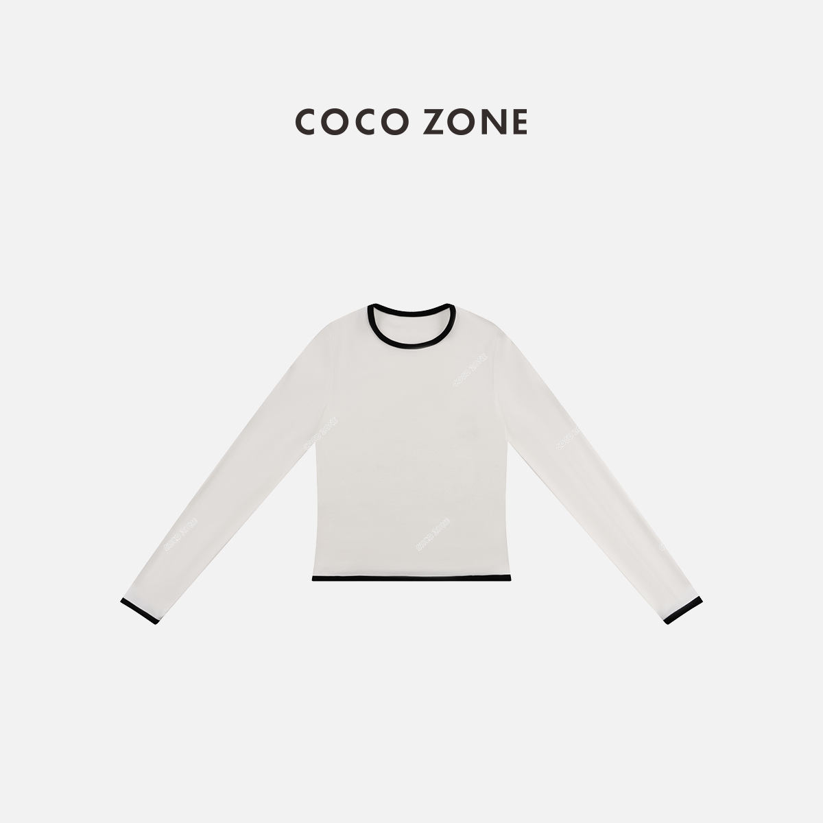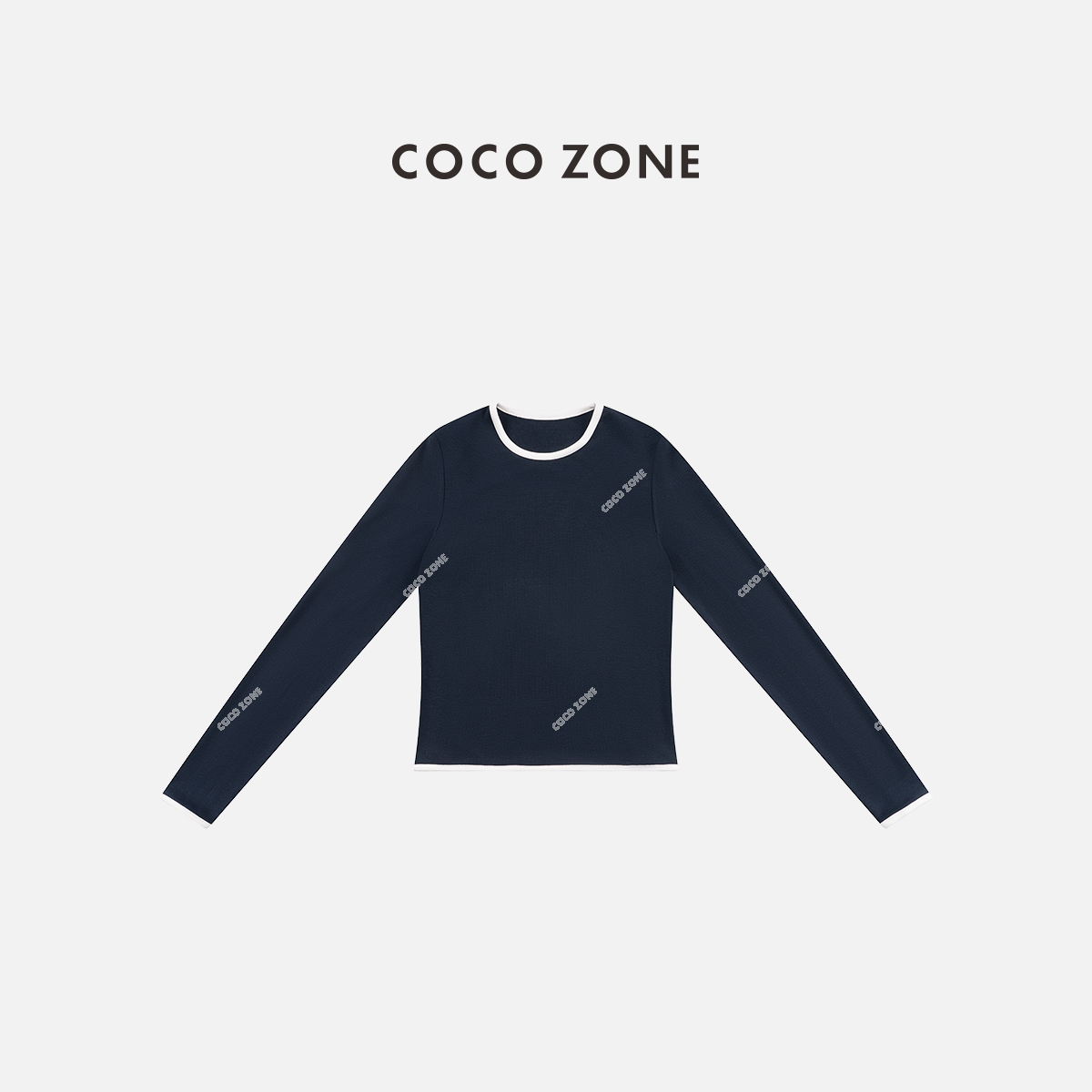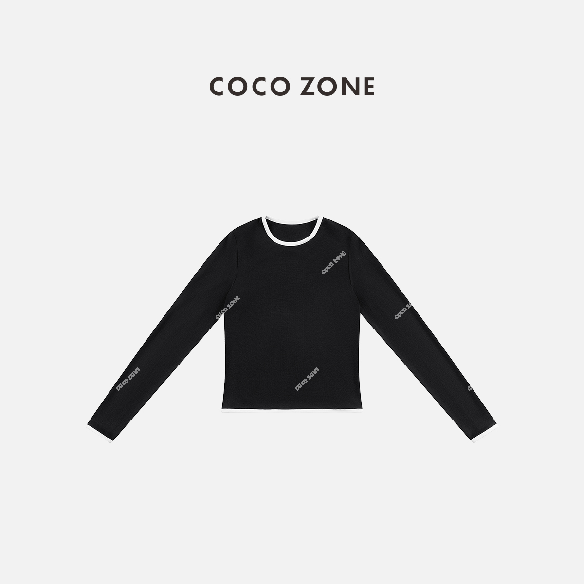 COCO ZONE 时尚假两件打底衫拼色小众长袖T恤CC1D2456