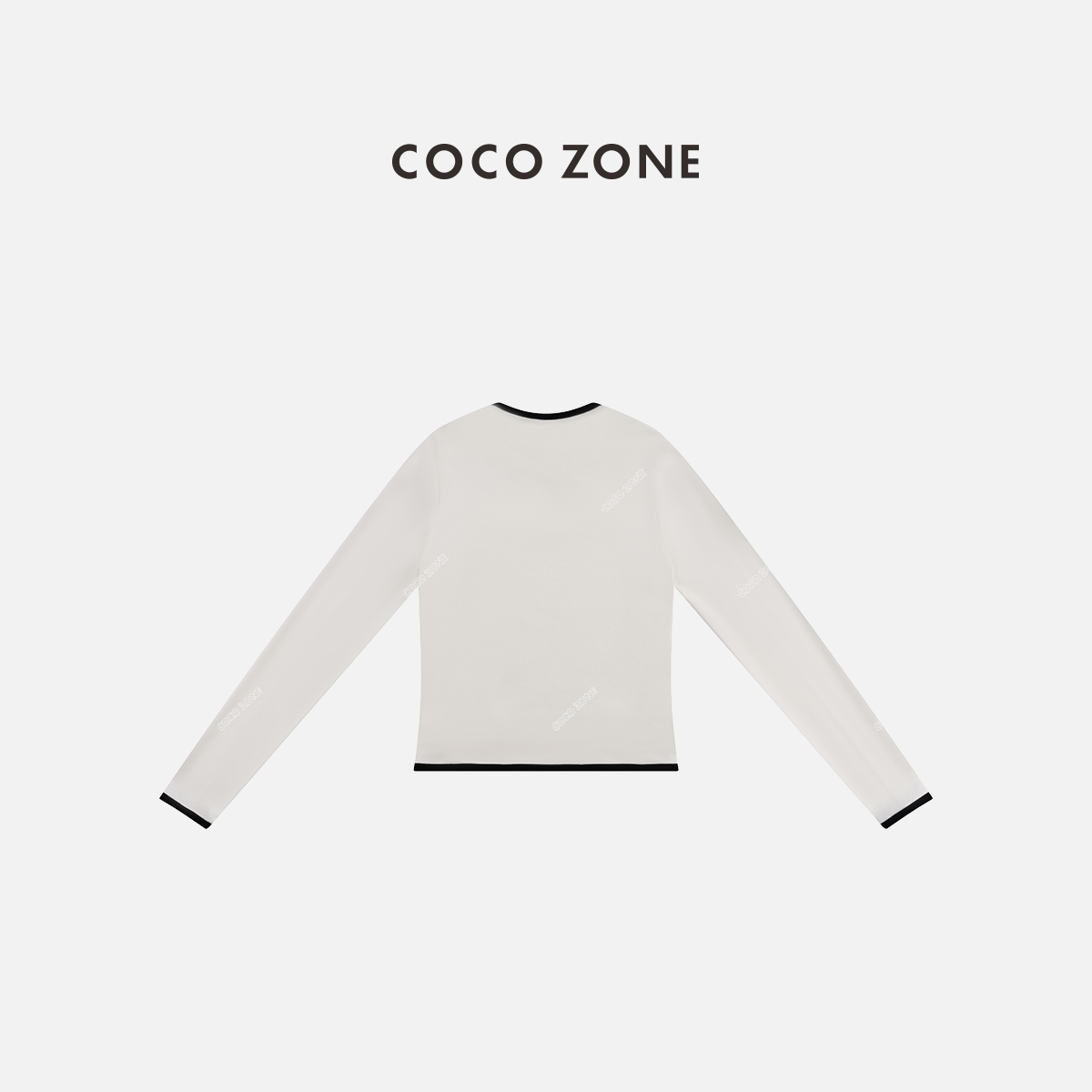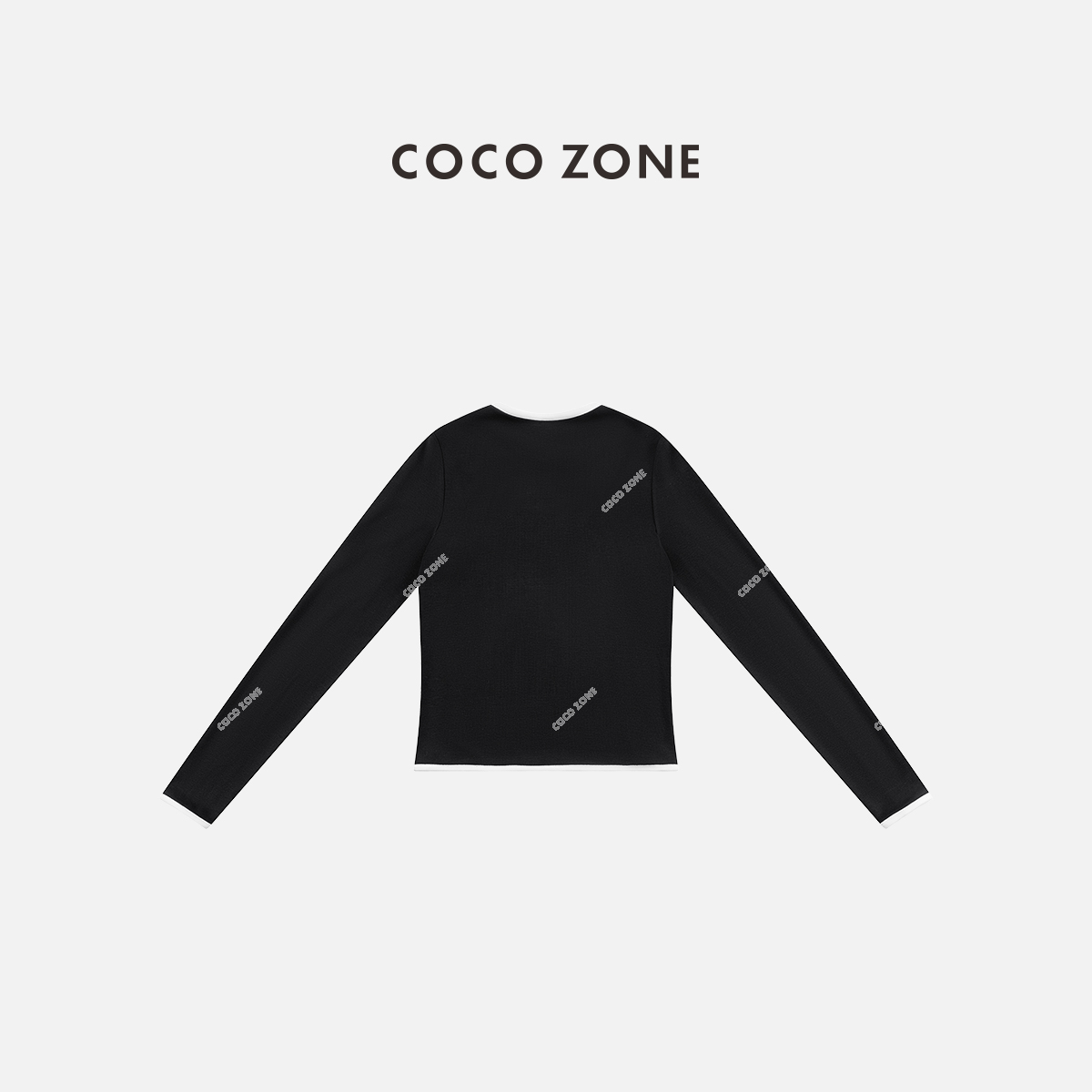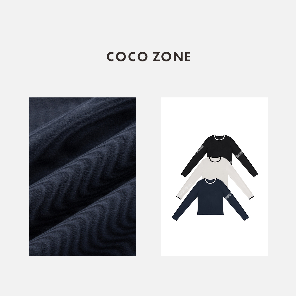 COCO ZONE 时尚假两件打底衫拼色小众长袖T恤CC1D2456