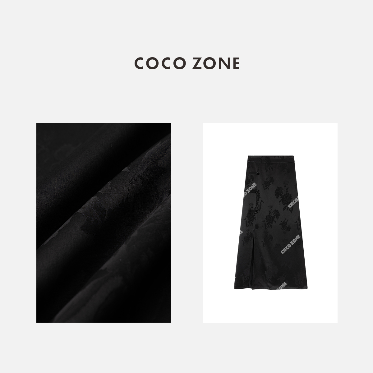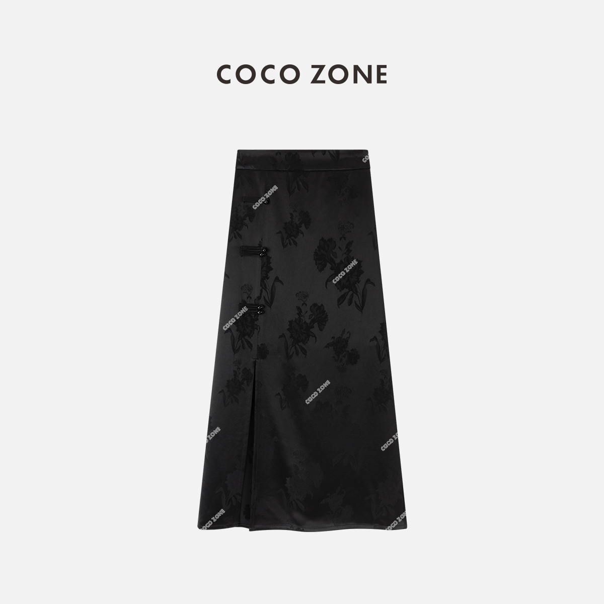 COCO ZONE2024开春穿搭国风提花半身裙侧边排扣包臀裙CC1A0398