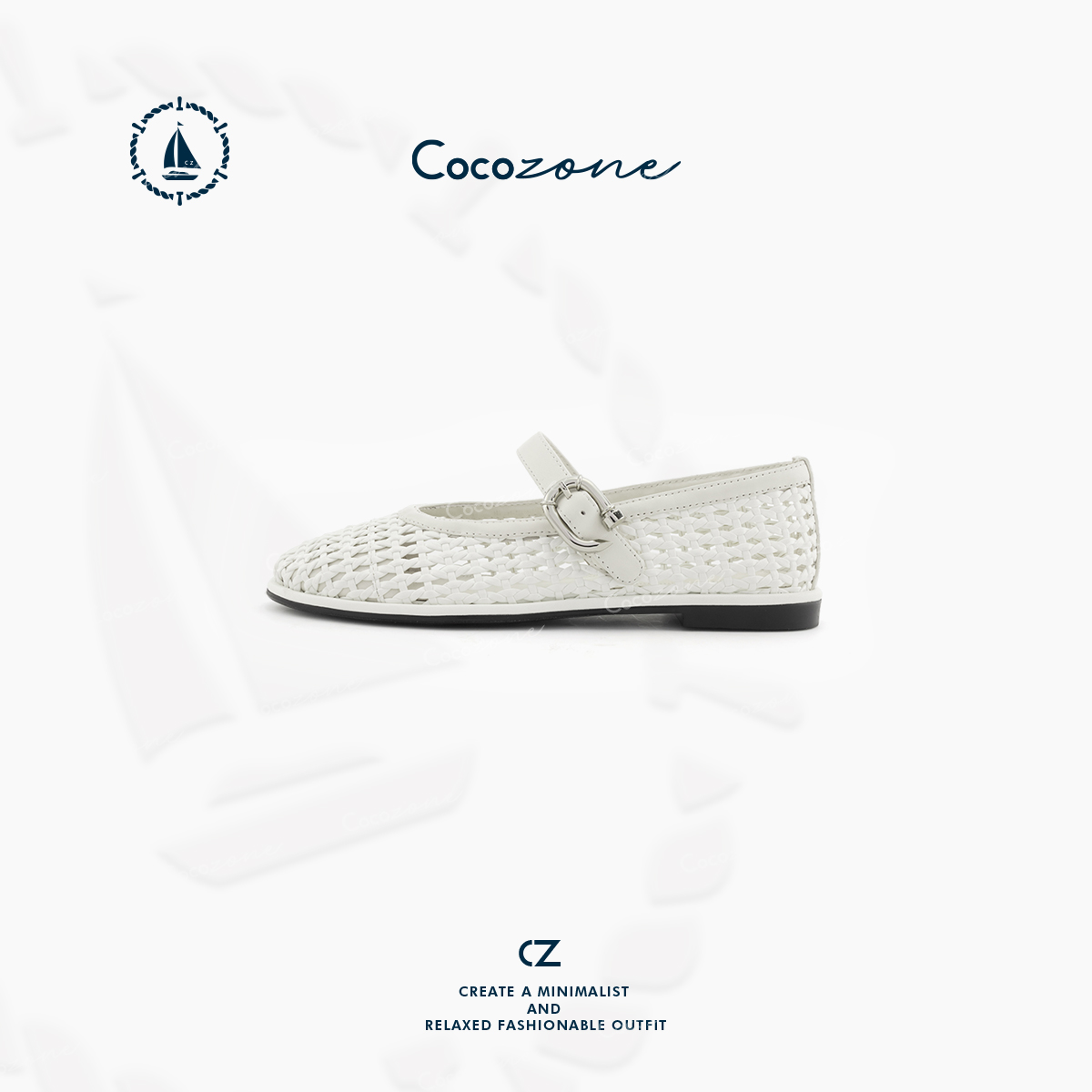 COCO ZONE 2025时尚镂空编织一字带平底单鞋CD2A0466