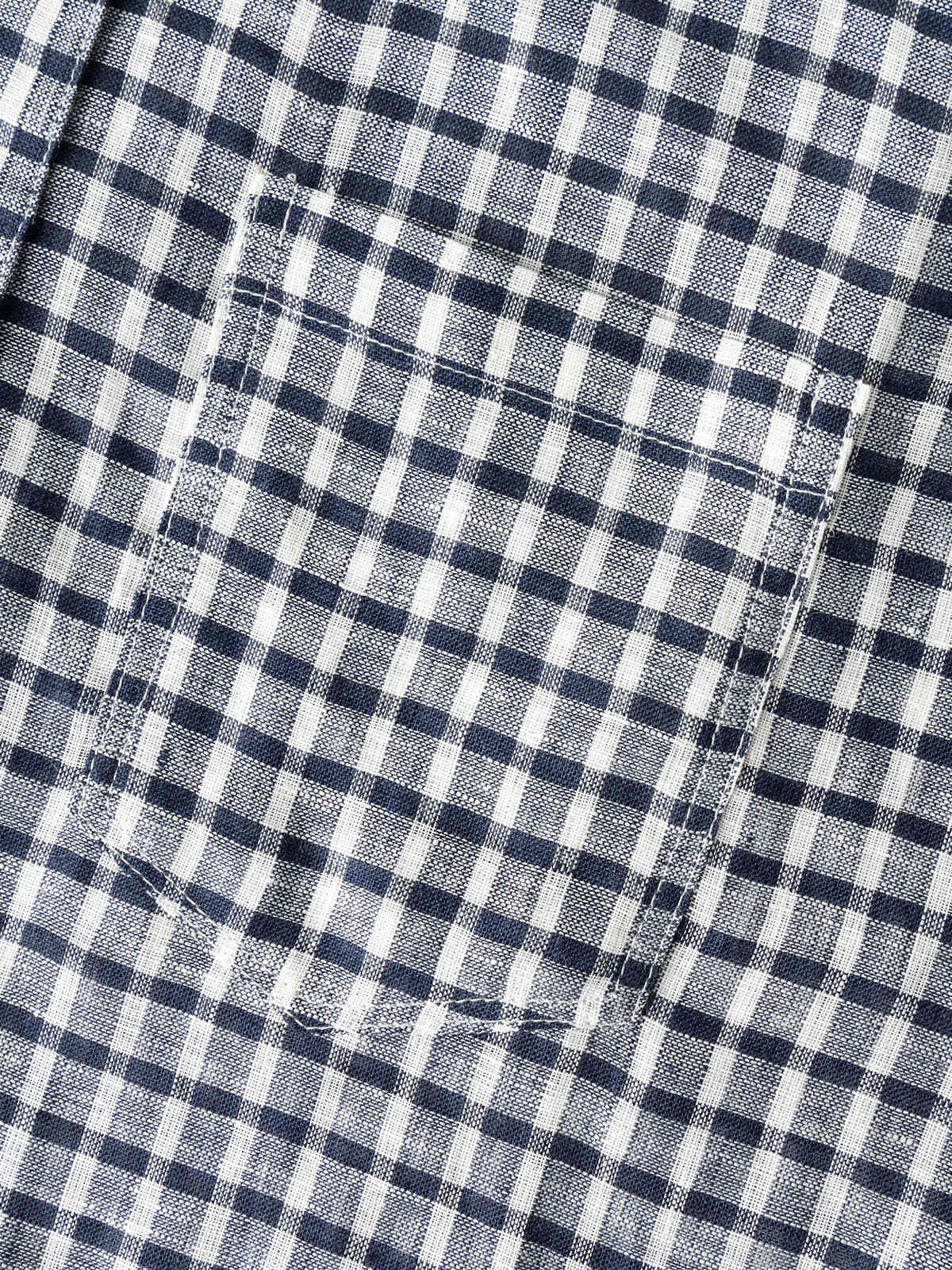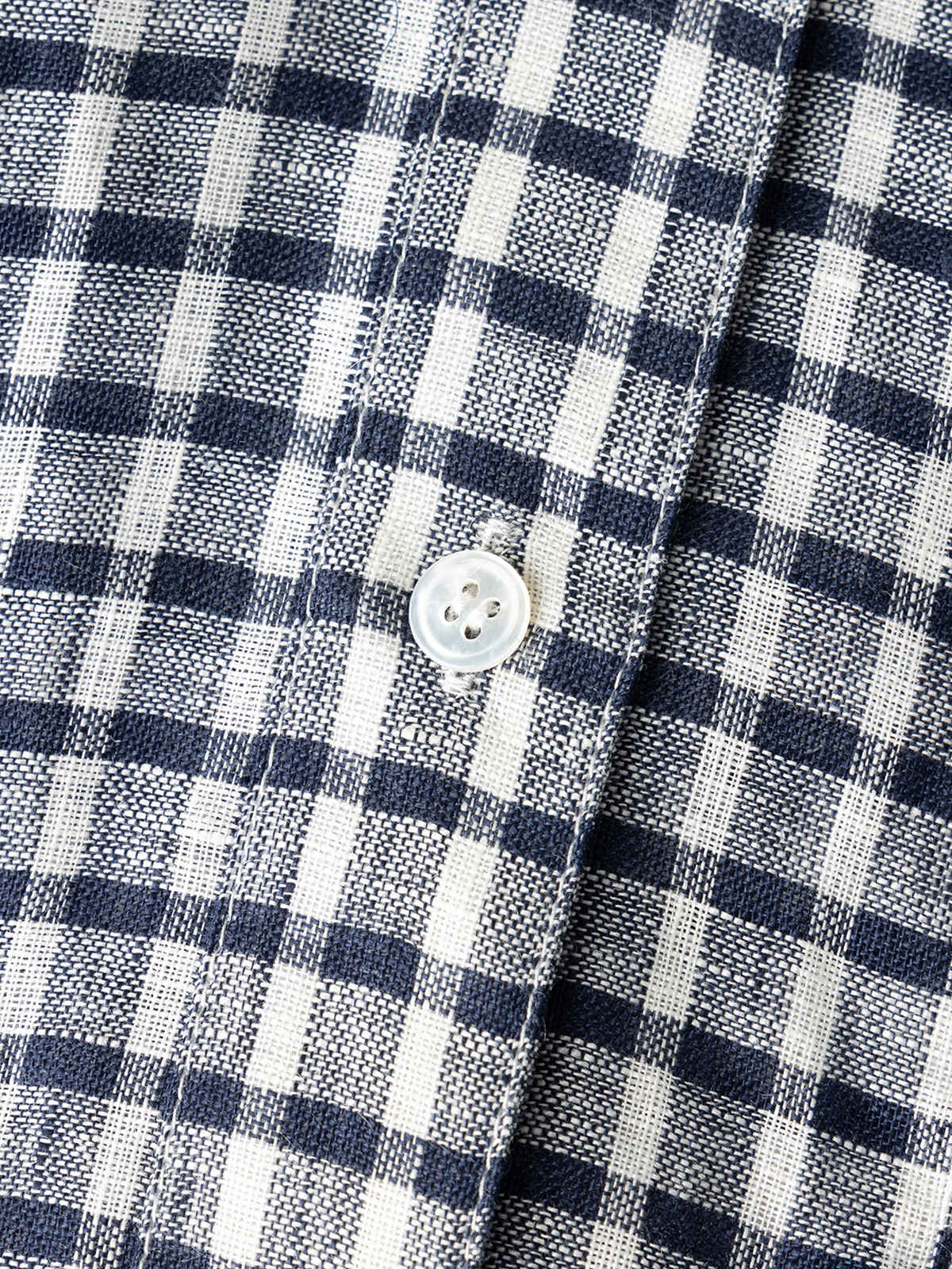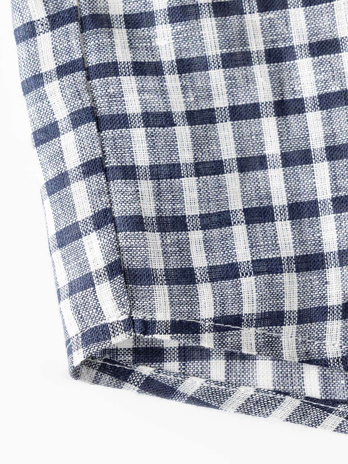 COCO ZONE 100亚麻格子短袖衬衫撞色翻领上衣CC1B1497