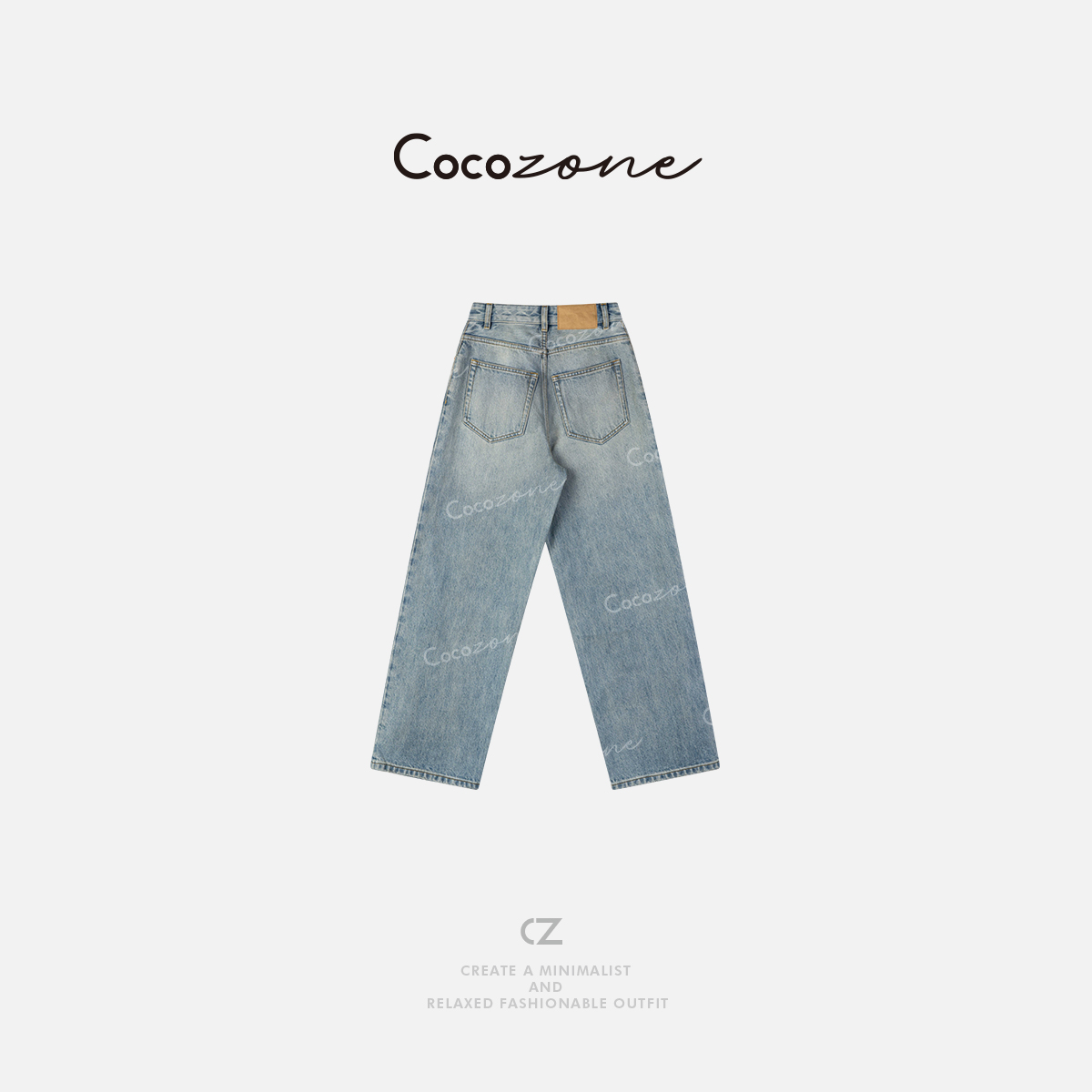 COCO ZONE 100棉春季水洗牛仔裤显瘦直筒裤ACD1A0037