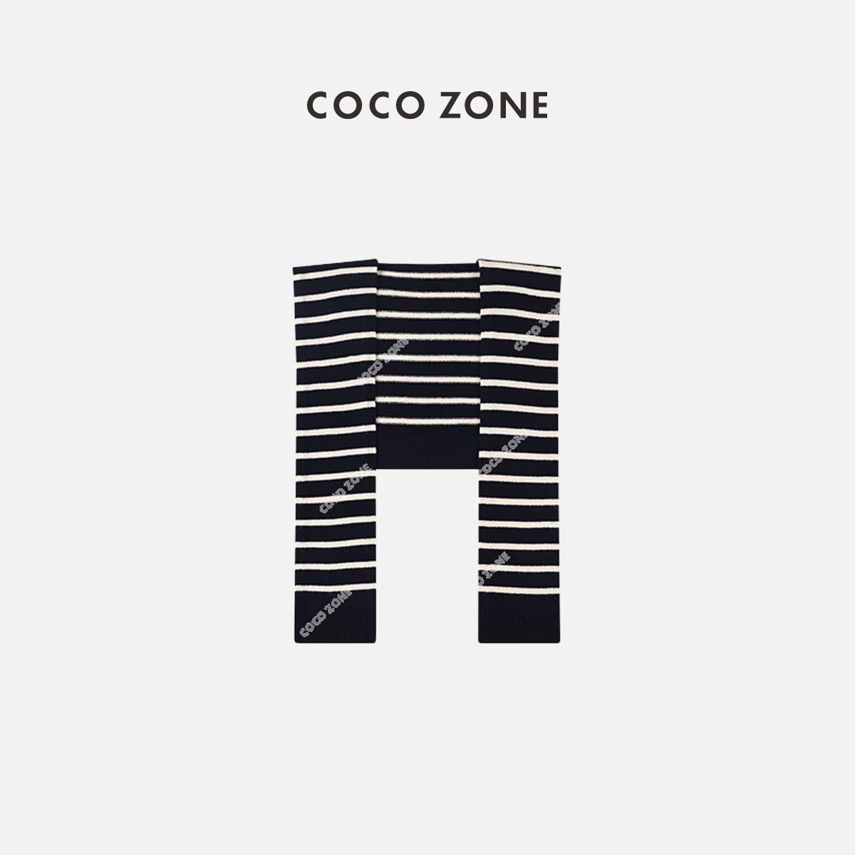 刘一一&COCO ZONE100%羊毛百搭女士小披肩条纹蓝白针织23C19290