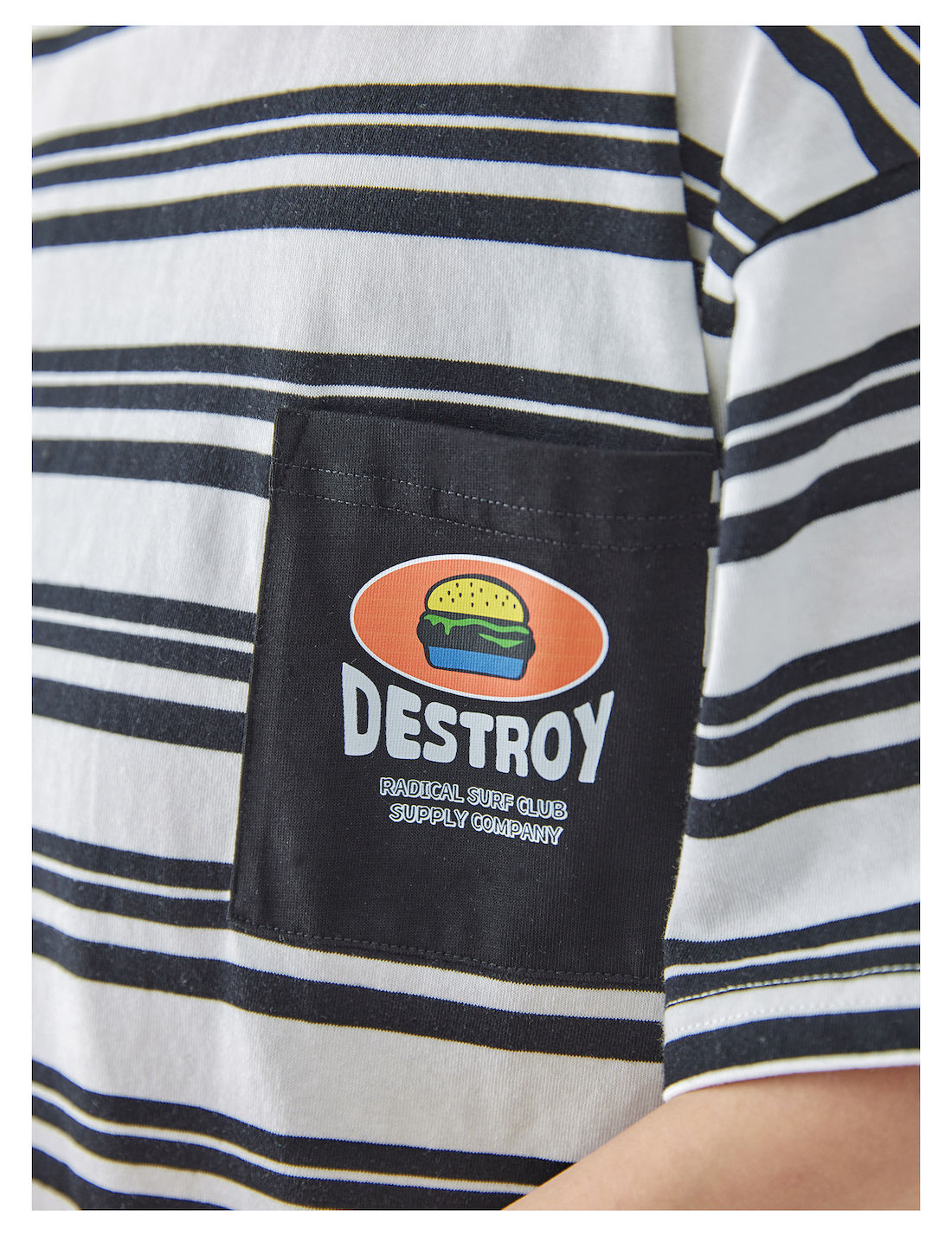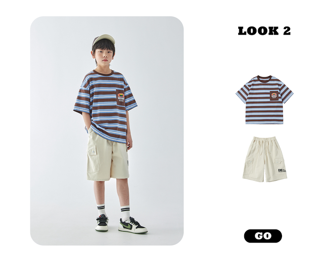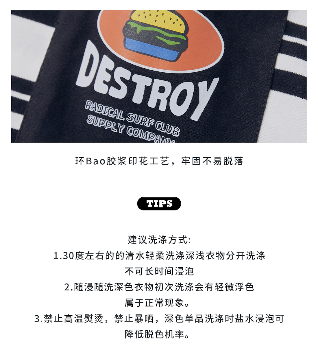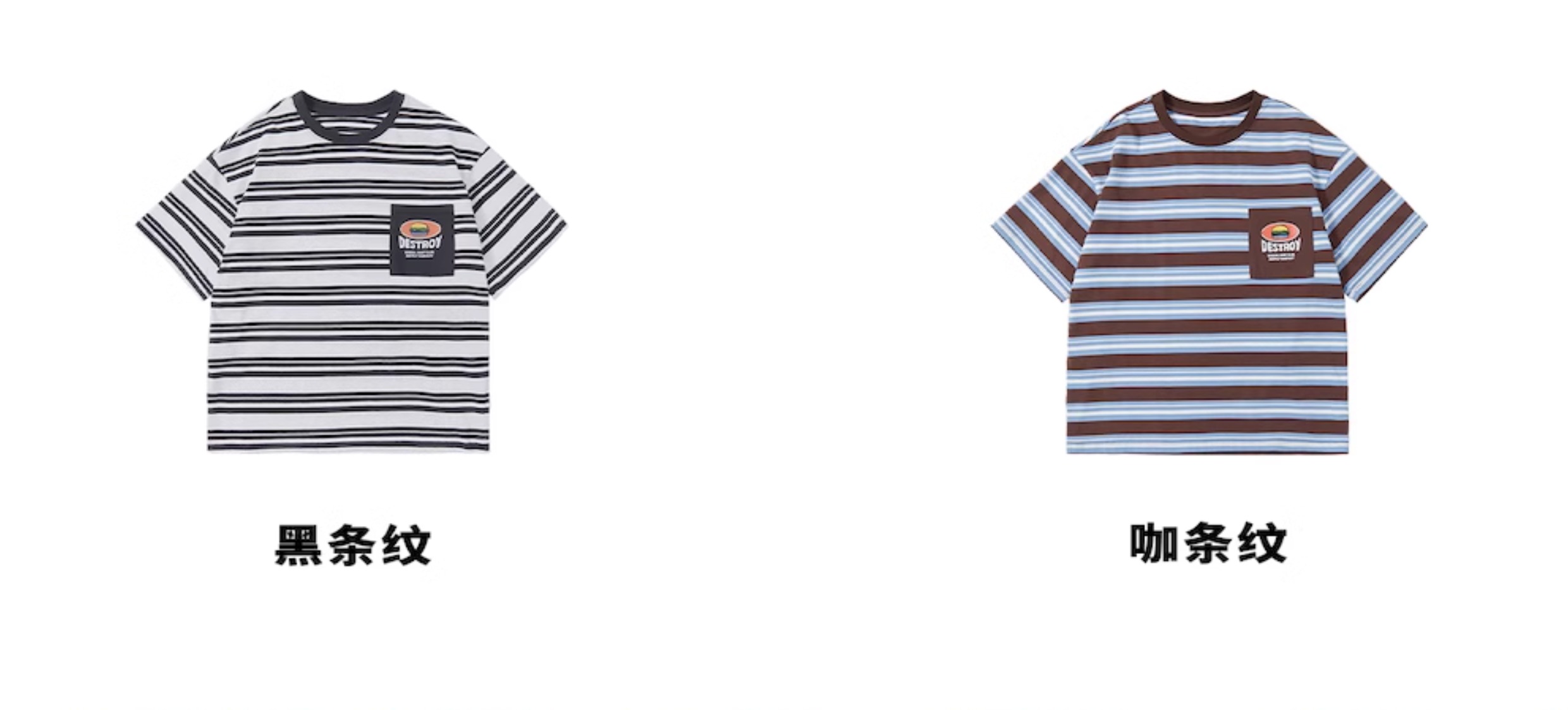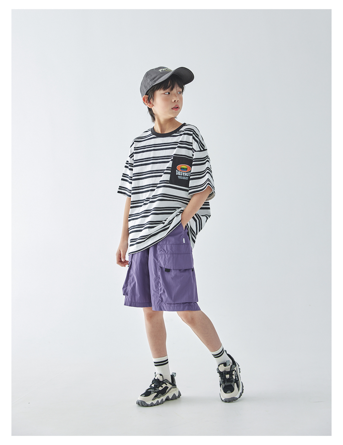 蓝汽水2025新款双纱条纹短袖T恤春夏口袋彩色趣味印花亲子款上衣