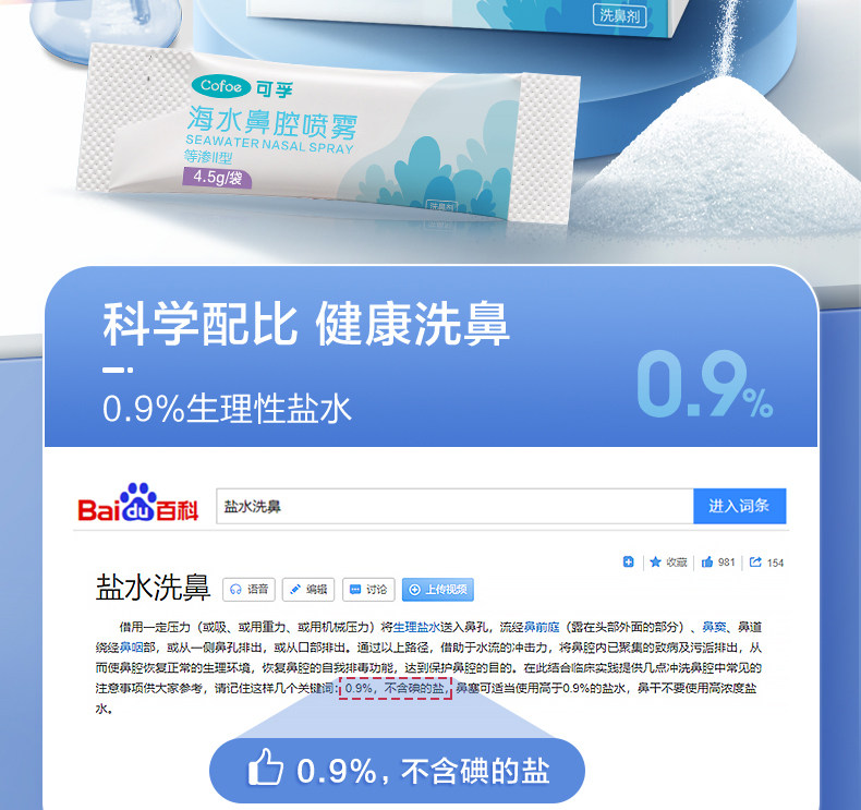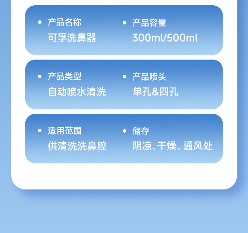 可孚洗鼻器家用鼻腔冲洗成人儿童鼻炎生理性海盐水喷雾医用冲鼻器
