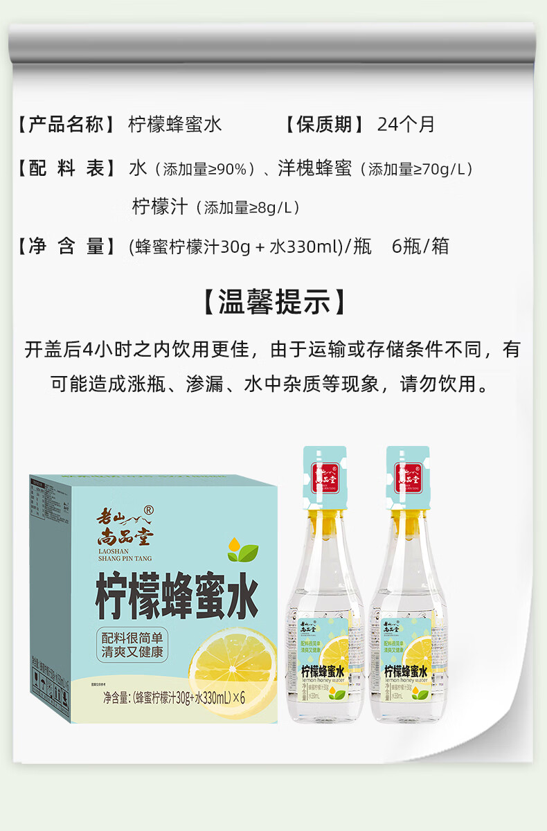 老山柠檬蜂蜜水360g*6瓶/箱