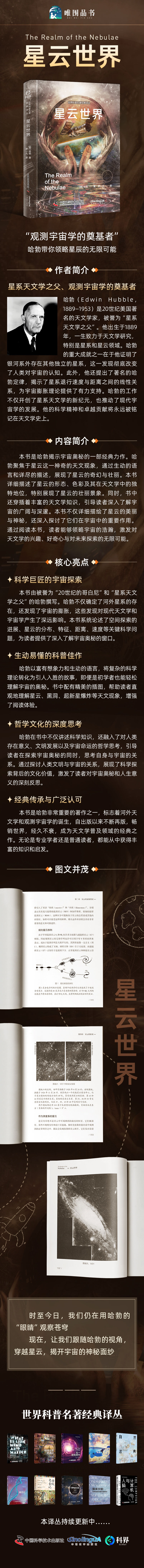 本书是哈勃非常重要的一部杰作,它引领读者穿越浩瀚的宇宙,探索星云的奥秘与壮丽。在本书中,哈勃以其深厚的天文学底蕴和独特的视角,为读者展现了一个充满奇幻与神秘的星空世界。他不仅对星云进行了详尽的描述,还通过精美的插图和生动的语言,让读者仿佛置身于璀璨的星河之中。无论是对于天文学爱好者还是渴望了解宇宙奥秘的普通人来说,本书都是一部不可多得的佳作,值得一读再读。
