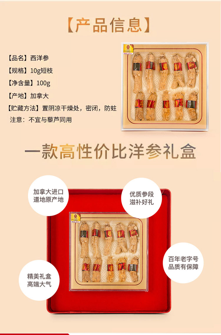 雷允上西洋参10g短枝100g
