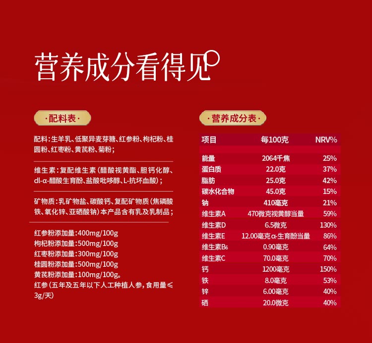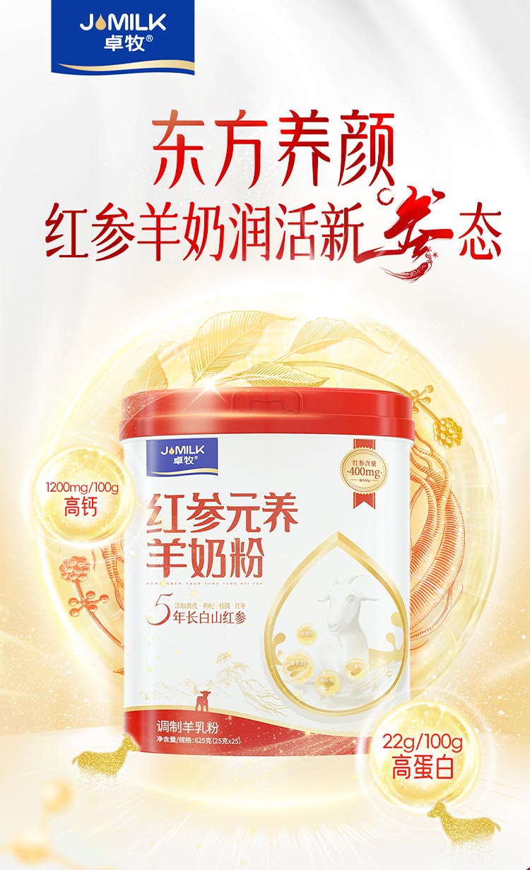 卓牧红参元养羊奶粉(625g*2礼盒装)