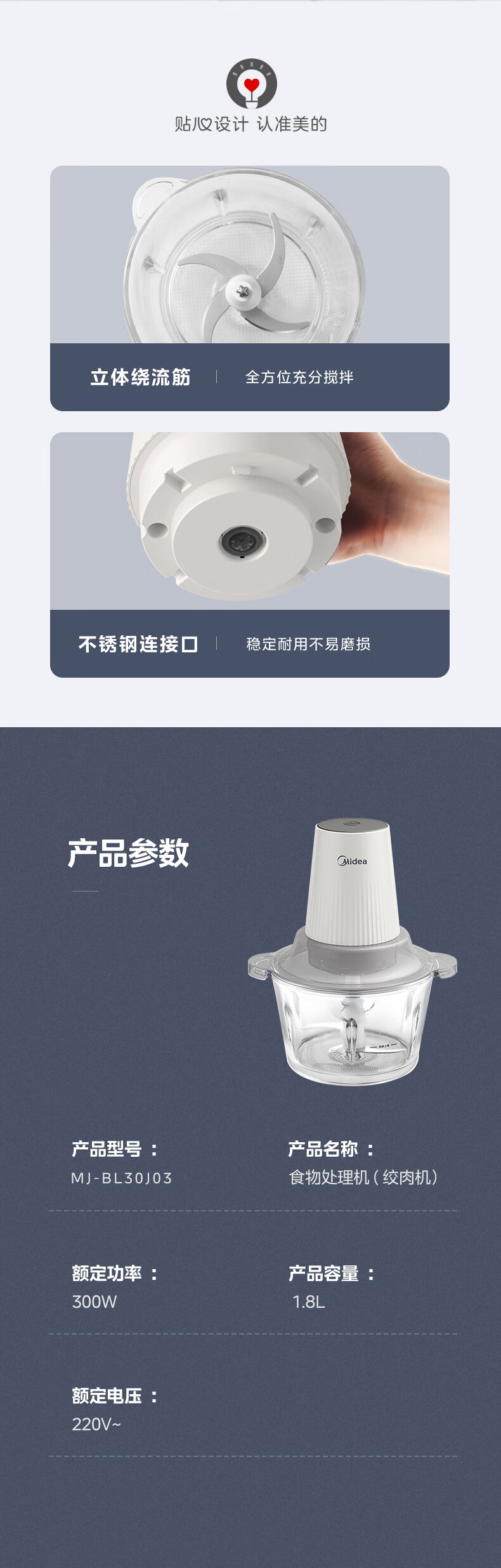 美的 绞肉机家用多功能料理机 MJ-BL30J03