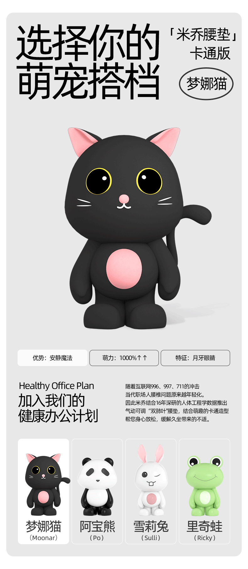 【卡通版】米乔人体工学腰垫办公室腰靠久坐护腰靠垫座椅靠背垫办公椅腰枕