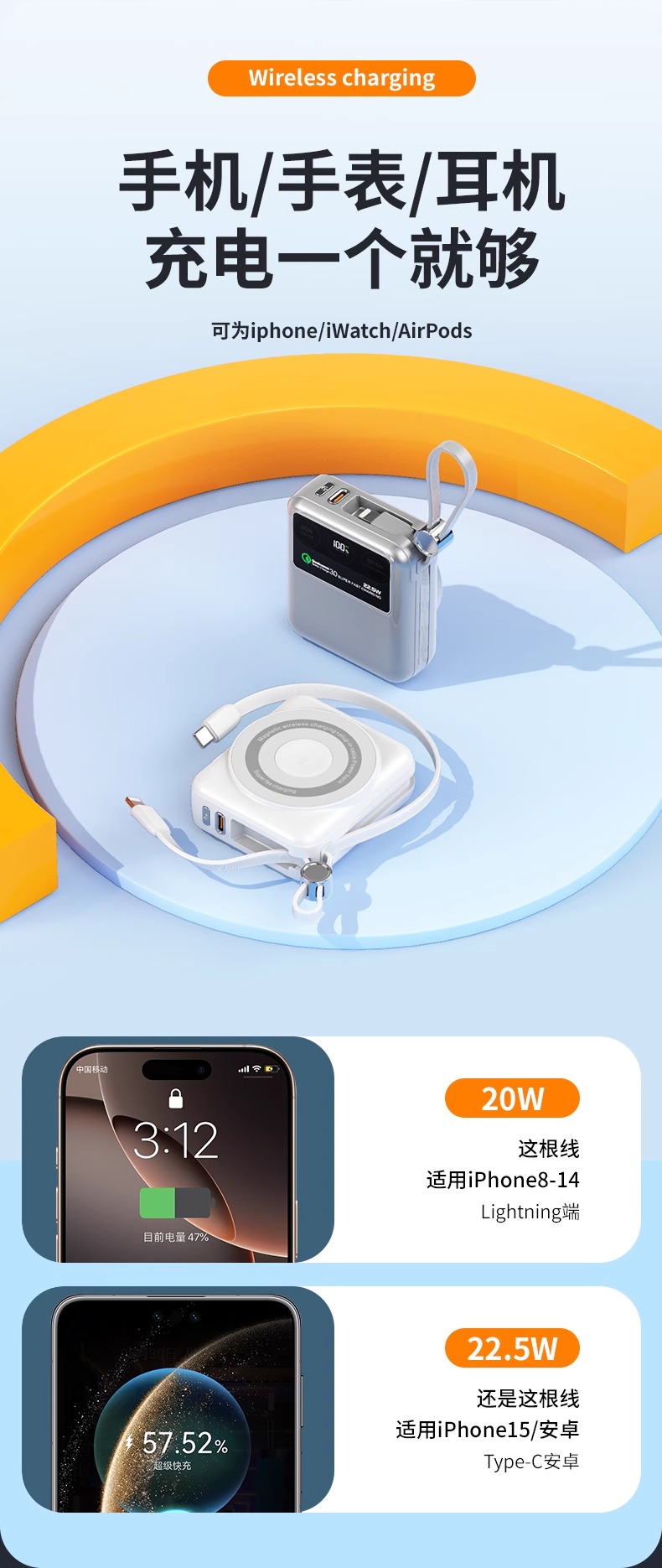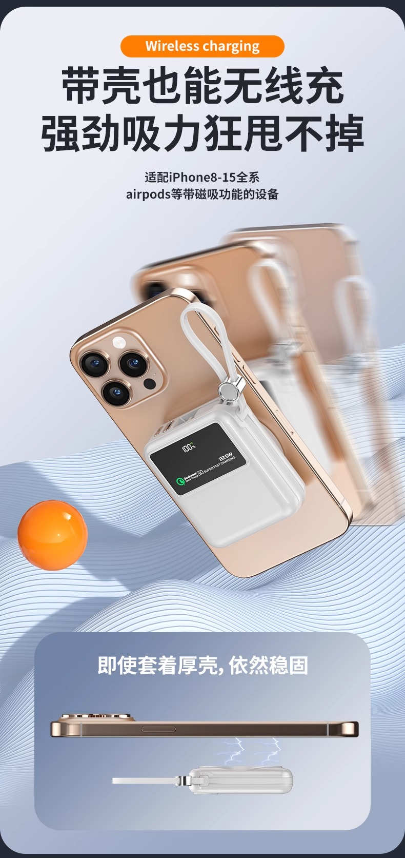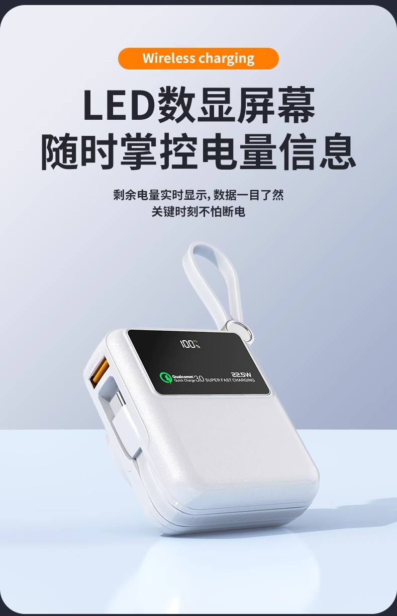 LIUFEIYP新国标3C方块显示屏10000mAh快充充电宝 可登机高铁,小巧可放口袋,苹果全系+安卓可用